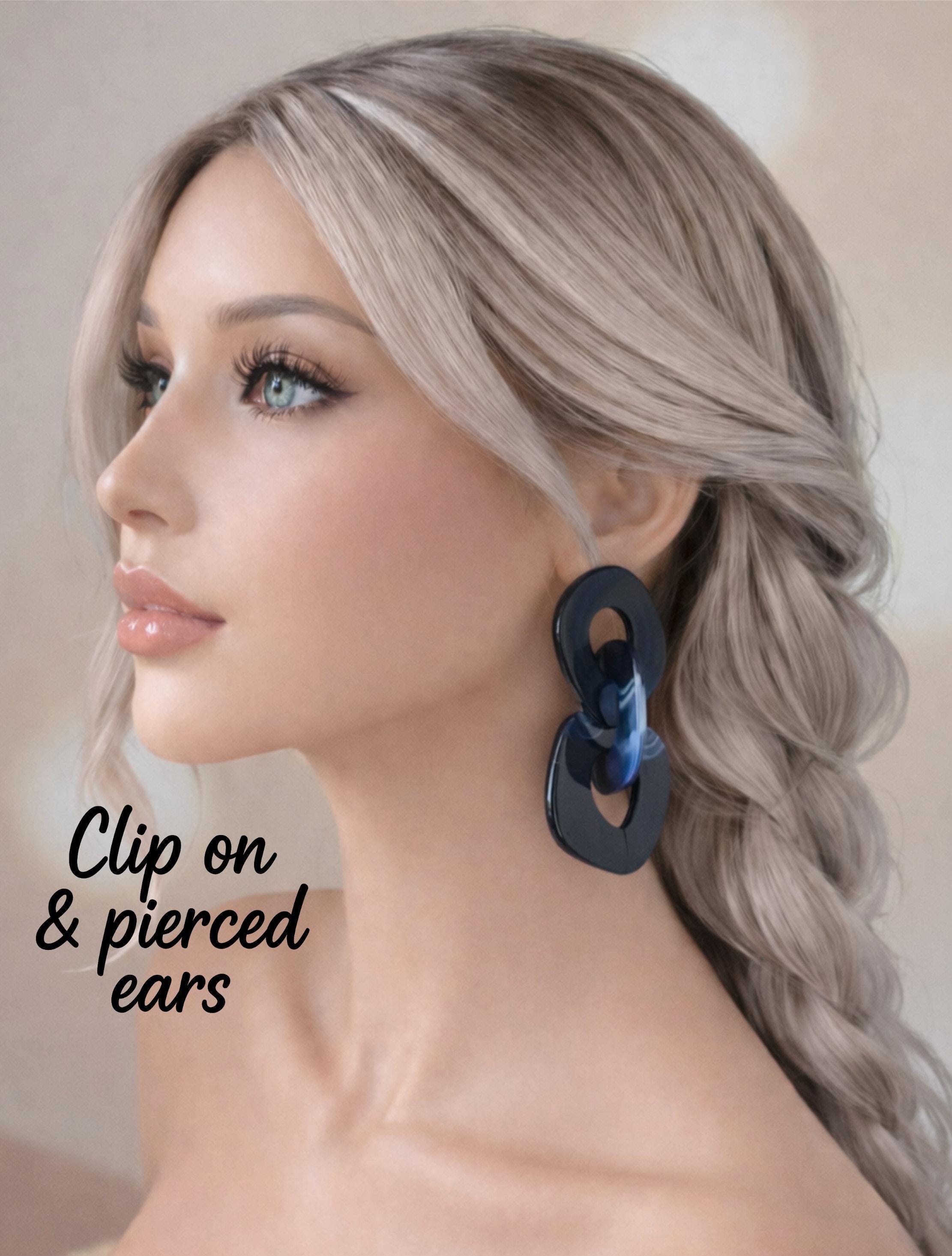 Make a bold statement with these striking navy blue acrylic chain link earrings đź’™