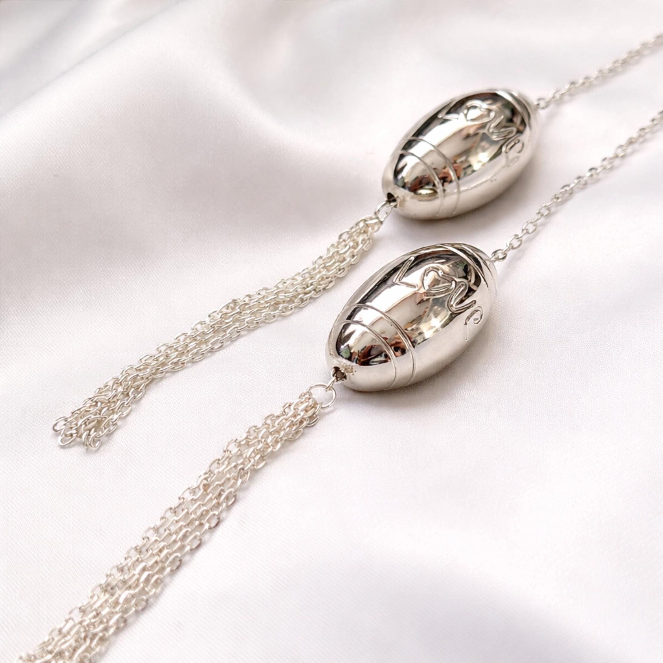 Featuring a delicate silver-tone chain with a knotted lariat detail, the necklace falls into a long double drop finished with decorative bead accents and fine tassel chains. The adjustable knot style allows it to sit beautifully at different lengths, making it perfect for layering or wearing as a standalone statement.