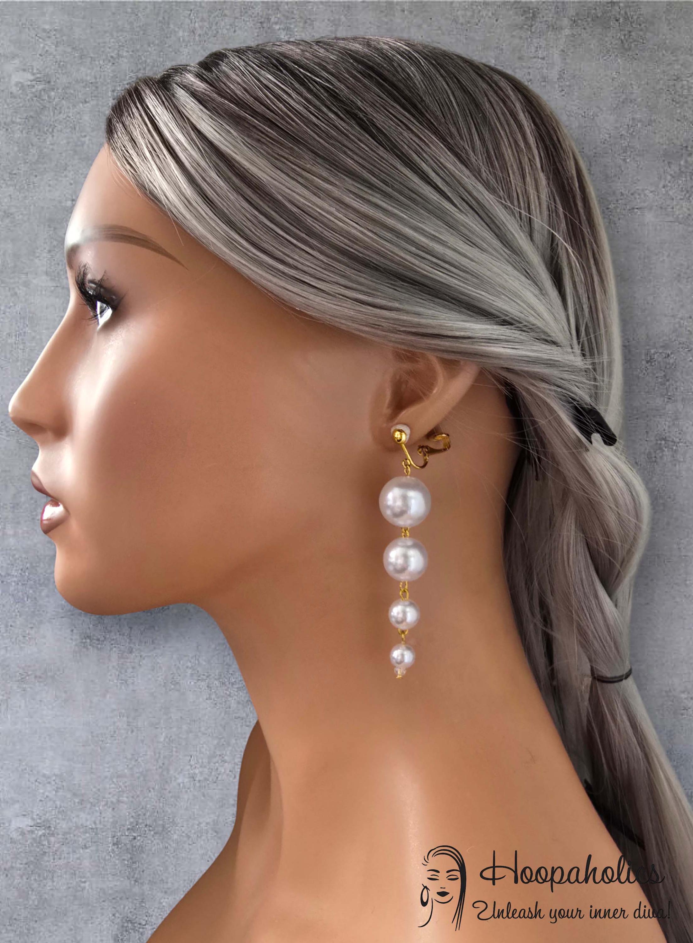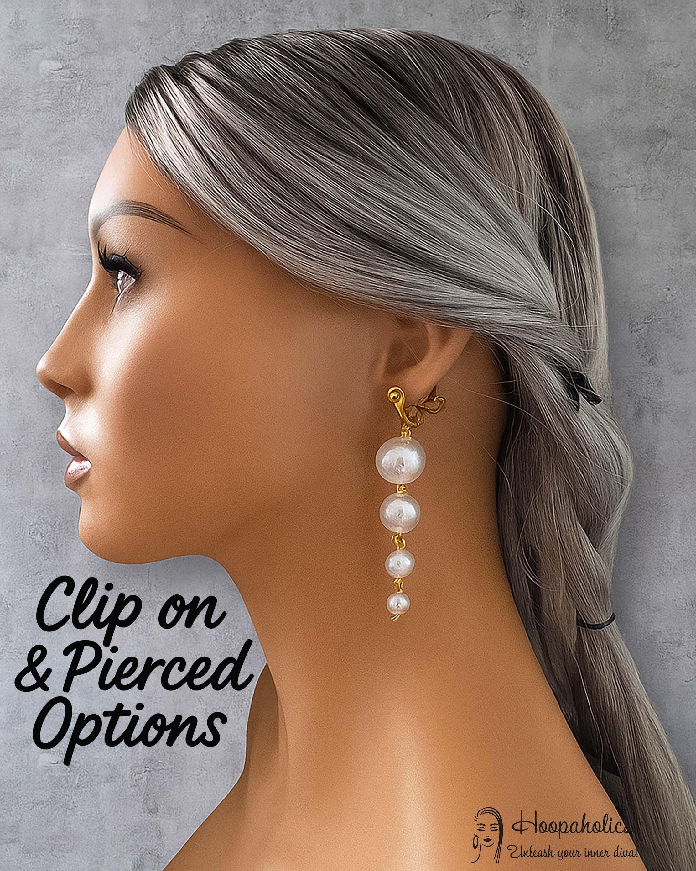 Make an elegant statement with these long white faux pearl bead drop earrings. Featuring four cascading faux pearls, these earrings blend timeless charm with modern sophistication. Perfect for weddings, evenings out, or adding a graceful touch to any outfit.