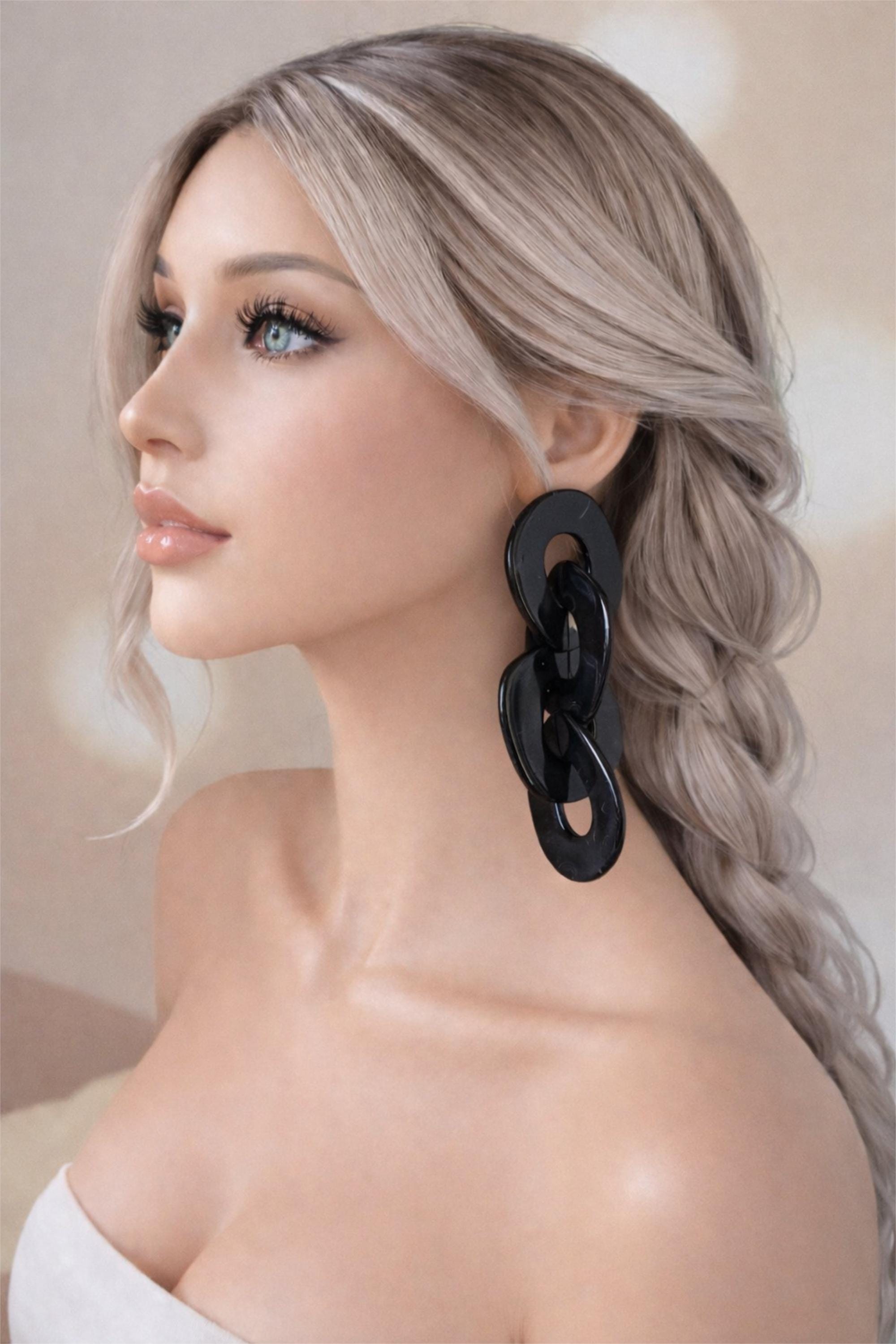 Make a bold statement with these striking black & grey marbled acrylic chain link earrings đź’™