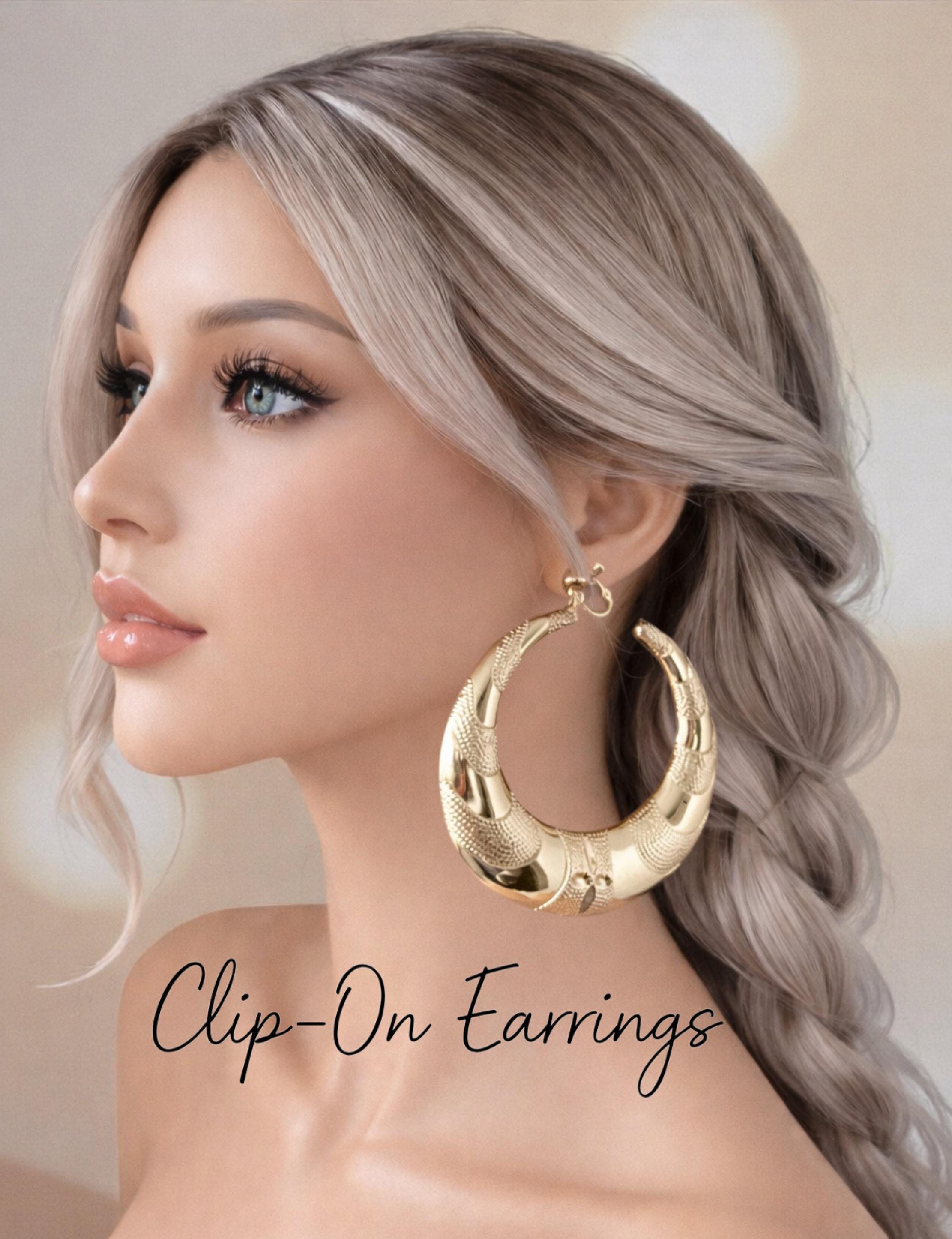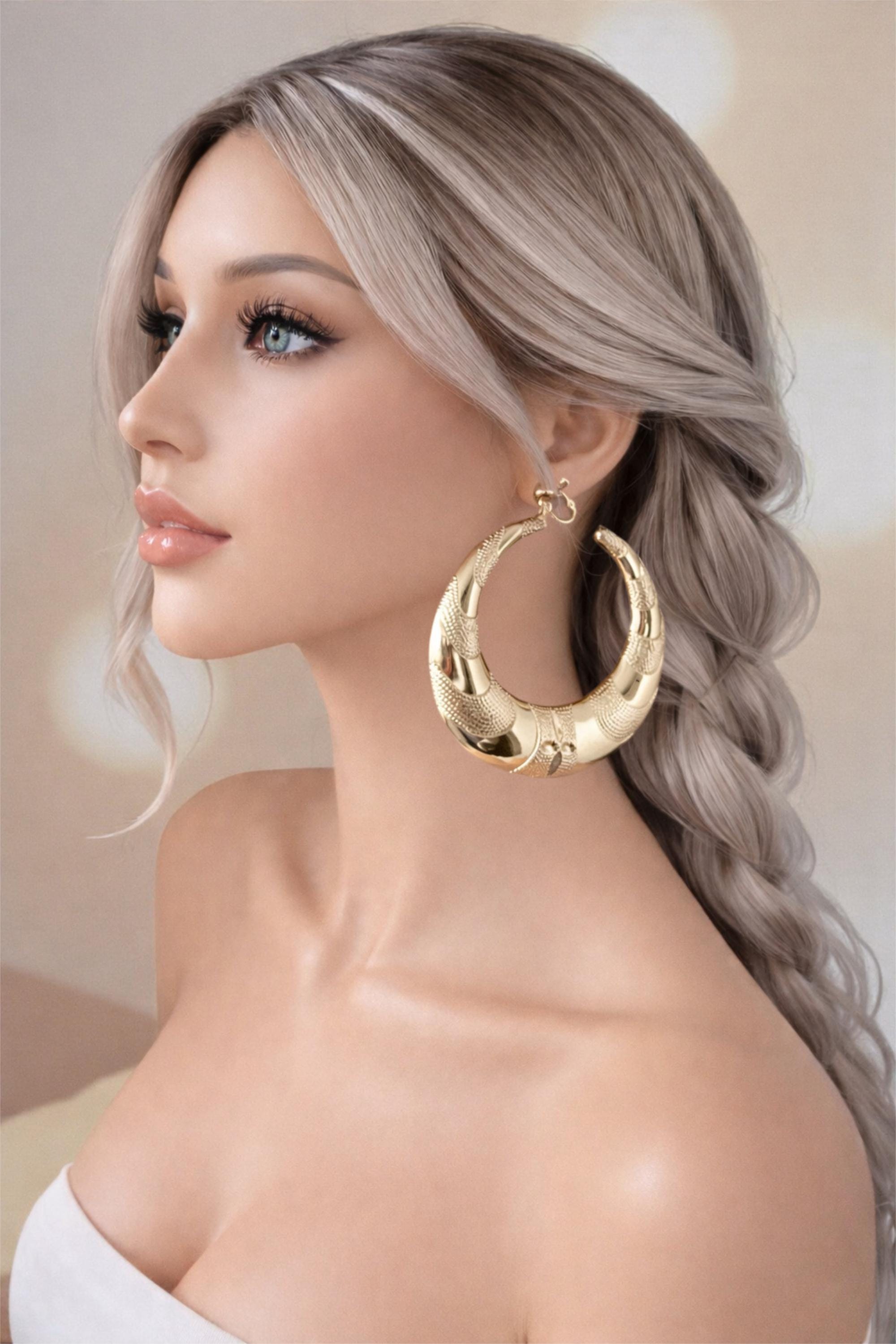 Make a bold statement with these chunky oversized gold tone C design clip-on hoop earrings. Large hollow puffed up design,