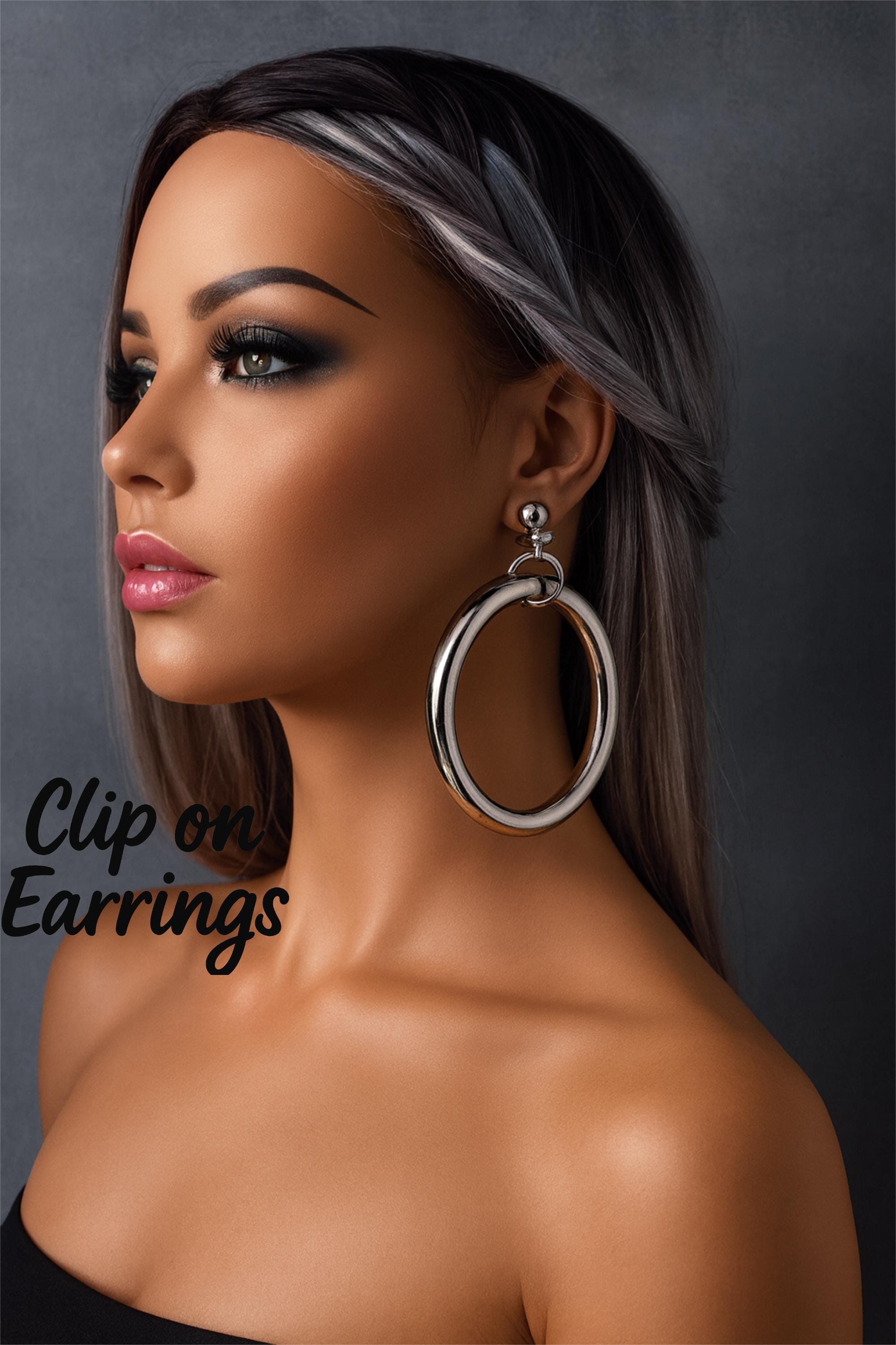 Elevate your style effortlessly with these bold clip-on hoop drop earrings. Crafted from high-quality stainless steel, these earrings are designed for durability and shine. Featuring a plain, chunky, thick tube design, they add a modern, statement-making touch to any outfit.