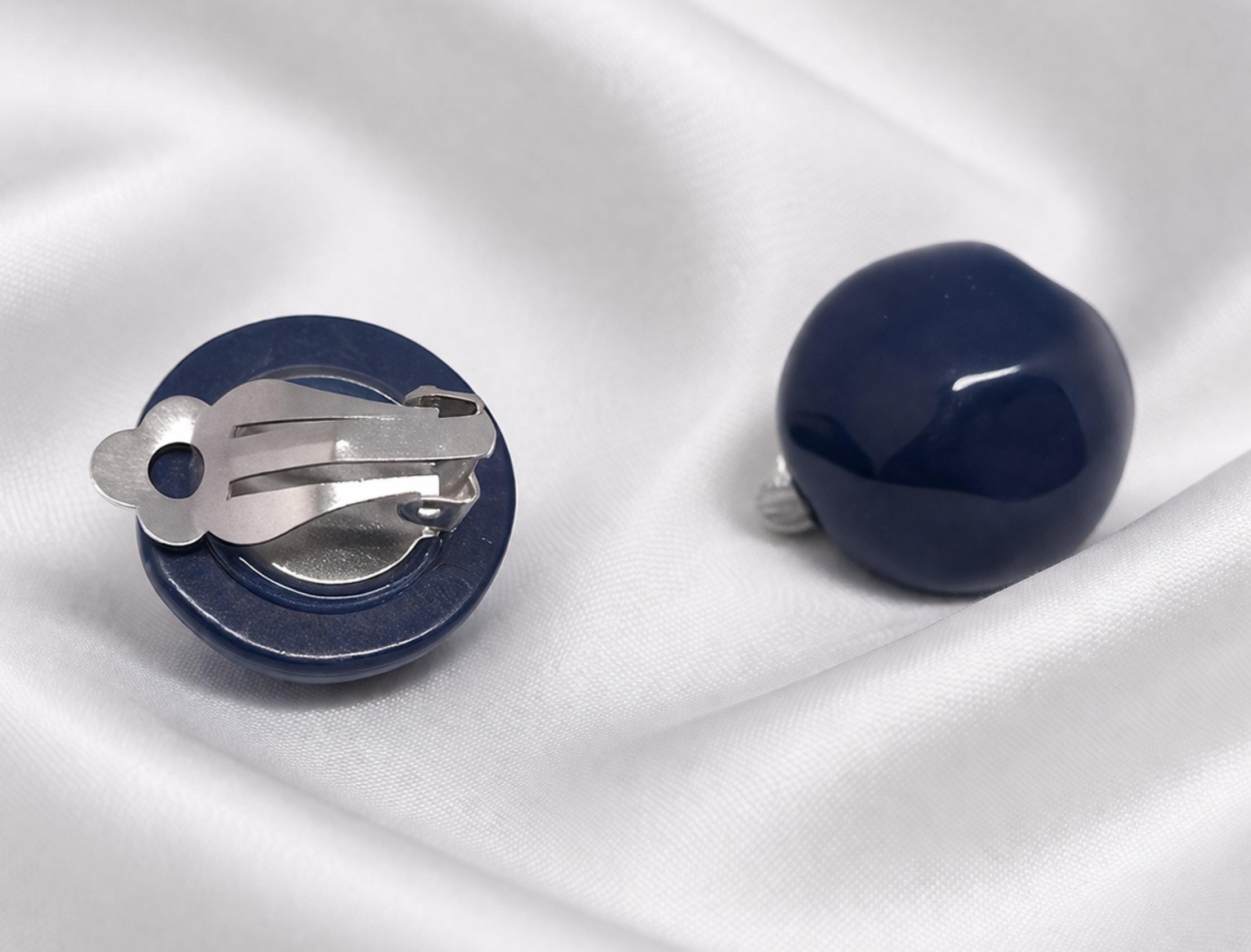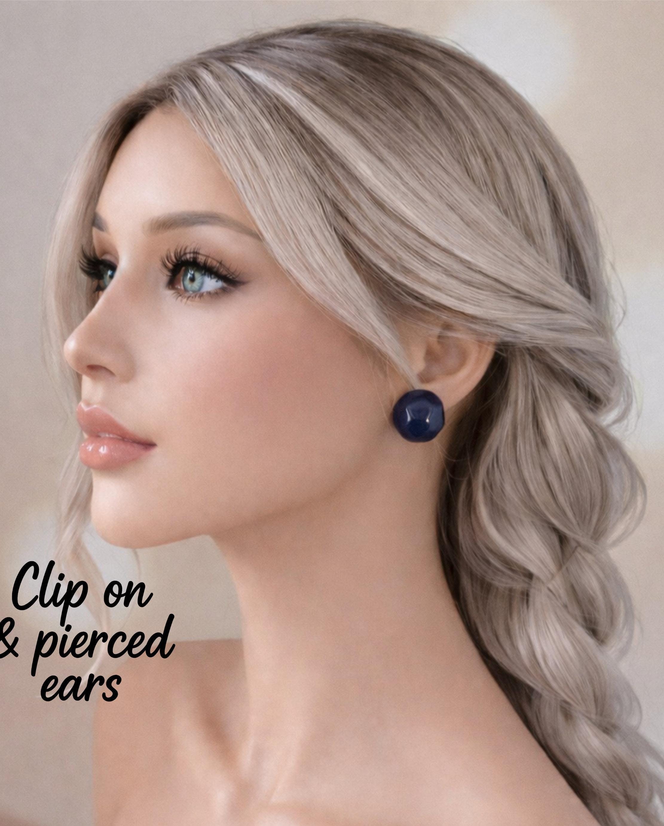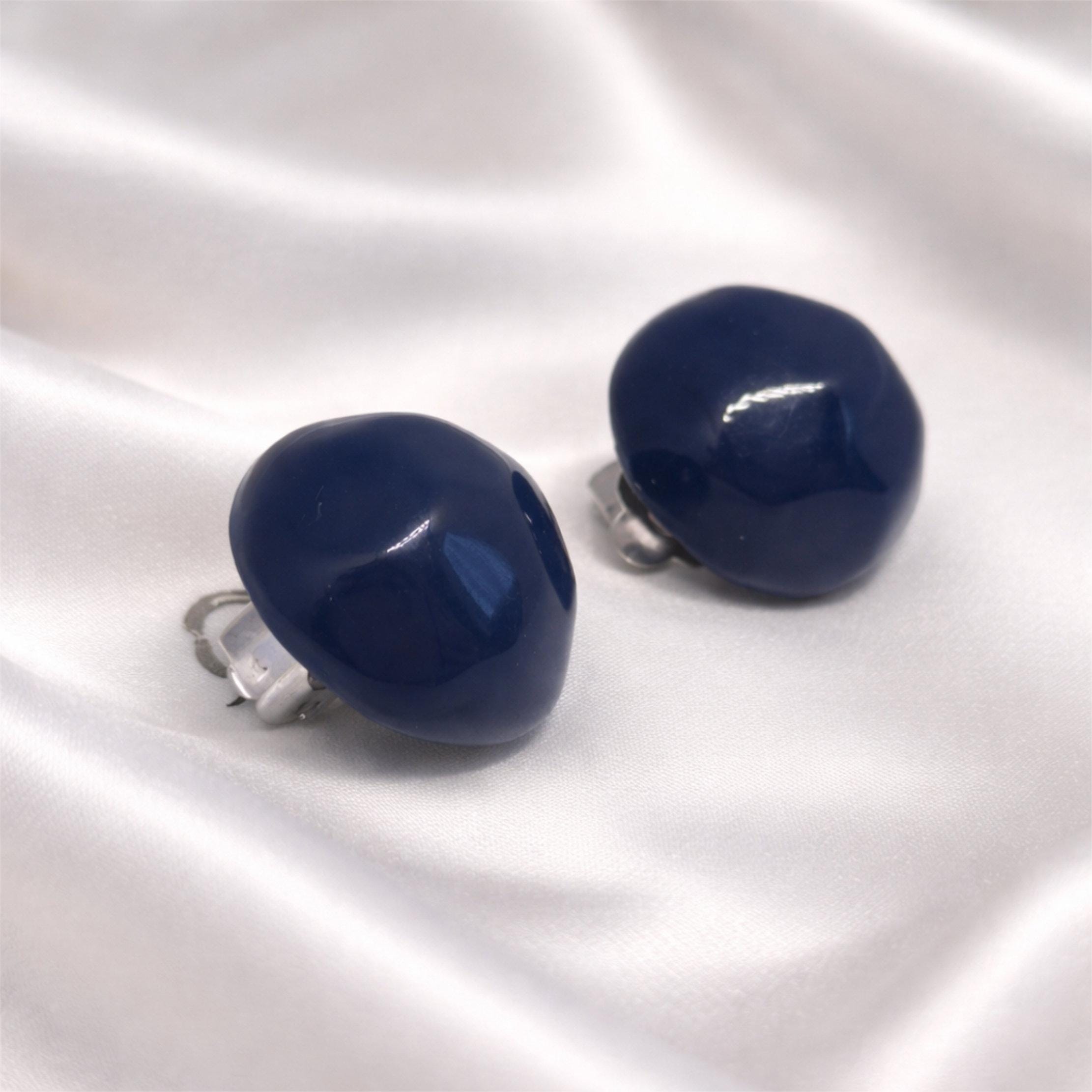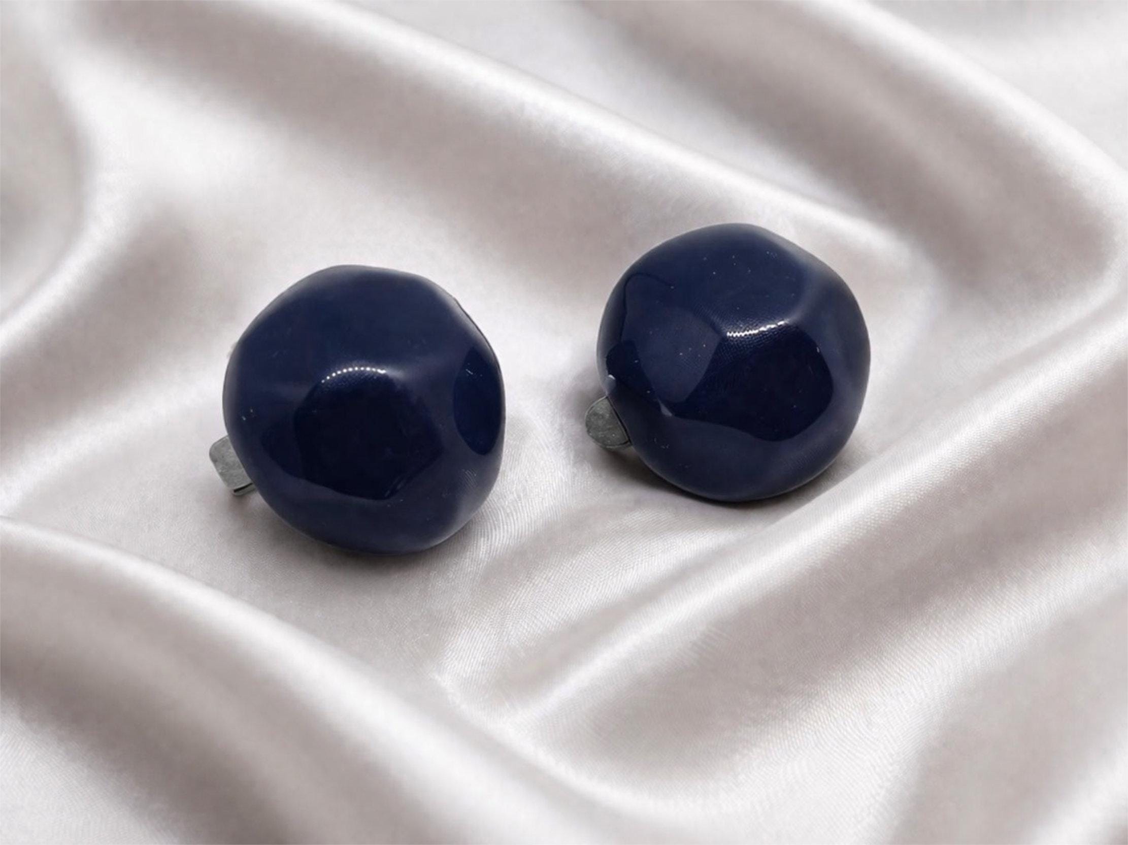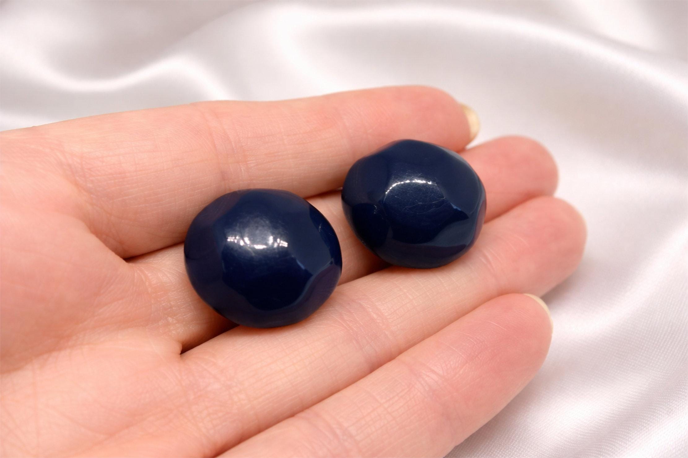 Add a bold pop of colour with these glossy navy blue clip-on earrings. Featuring a faceted, domed design with a high-shine finish,