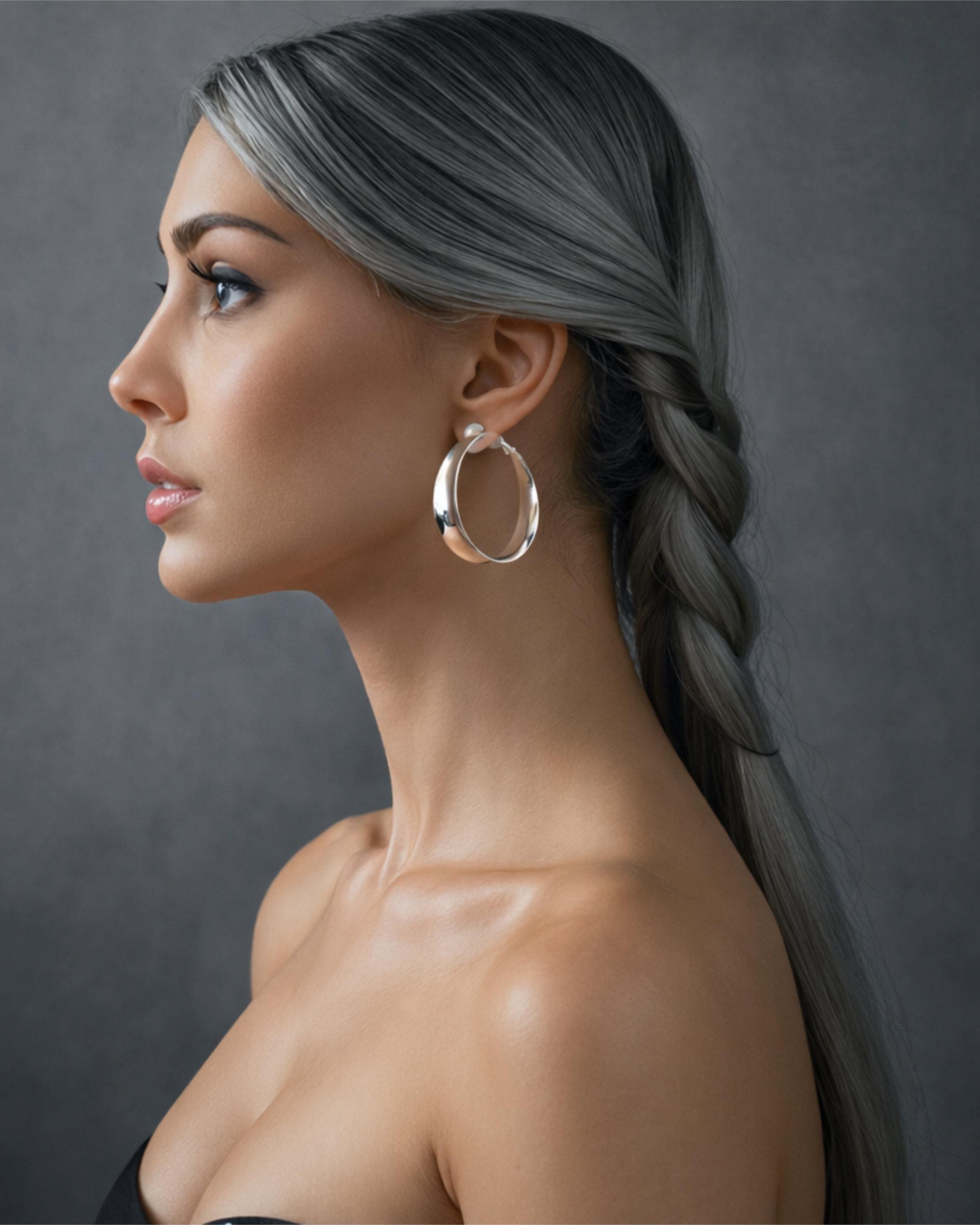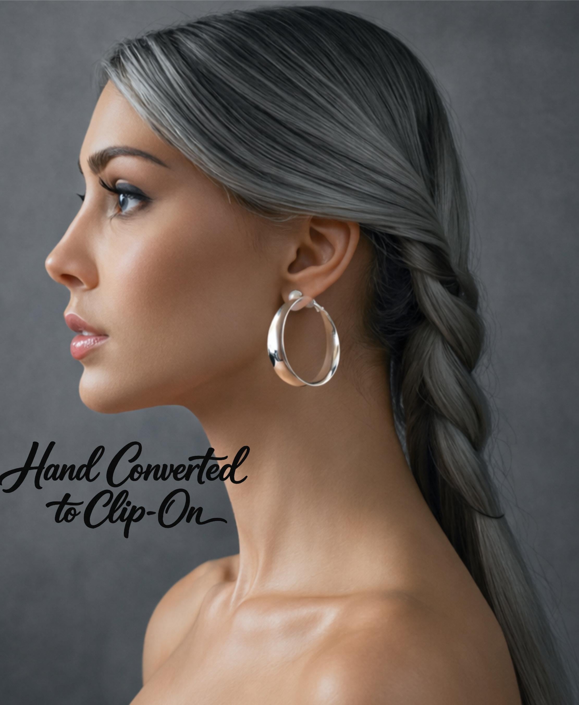 Add effortless style without the need for piercings! These elegant clip-on hoop earrings feature a wide concave tube design, finished with a beautiful sterling silver plating for a polished, timeless look. They’re the perfect size for making a statement while staying lightweight and comfortable for all-day wear