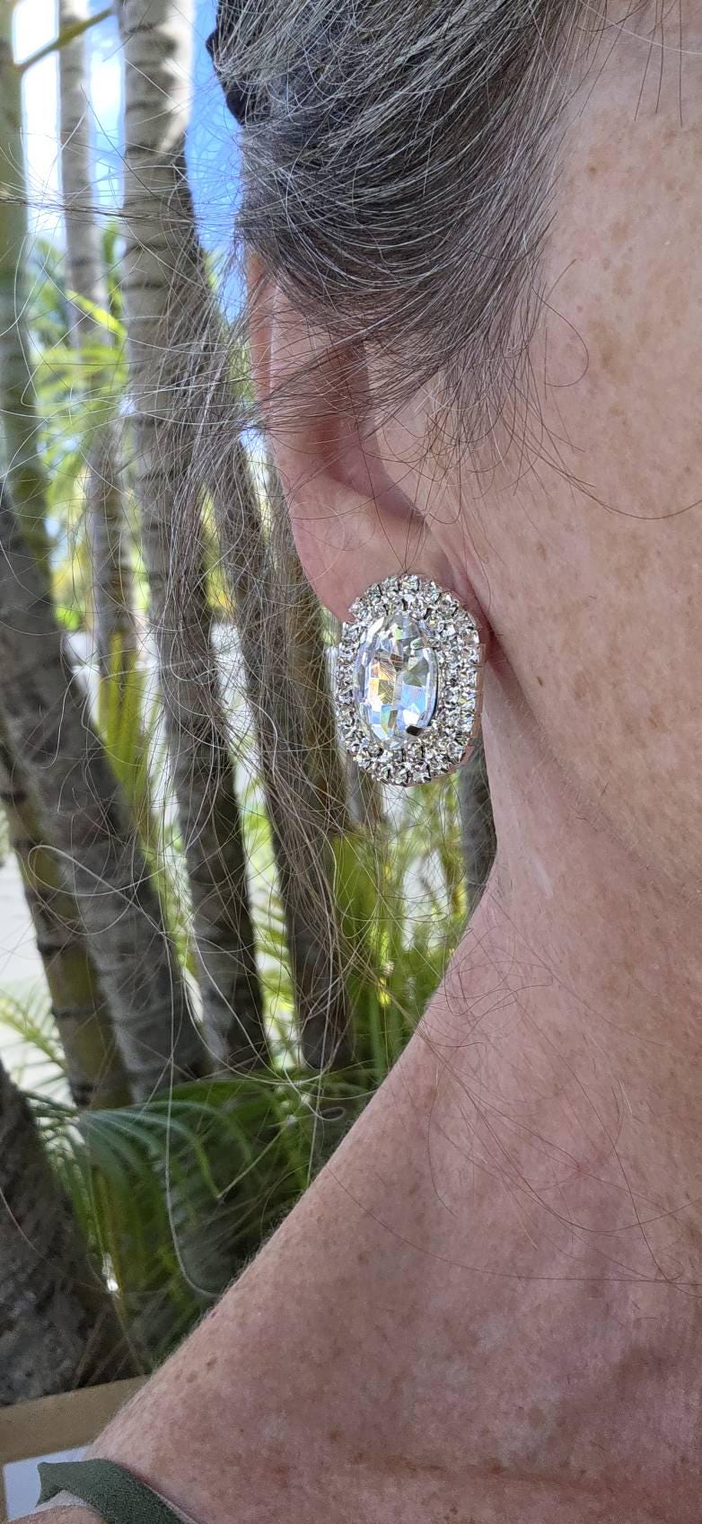 1 pair of big chunky stud earrings - beautiful sparkly rhinestone earrings, Clear or AB diamante stones in a silver tone setting