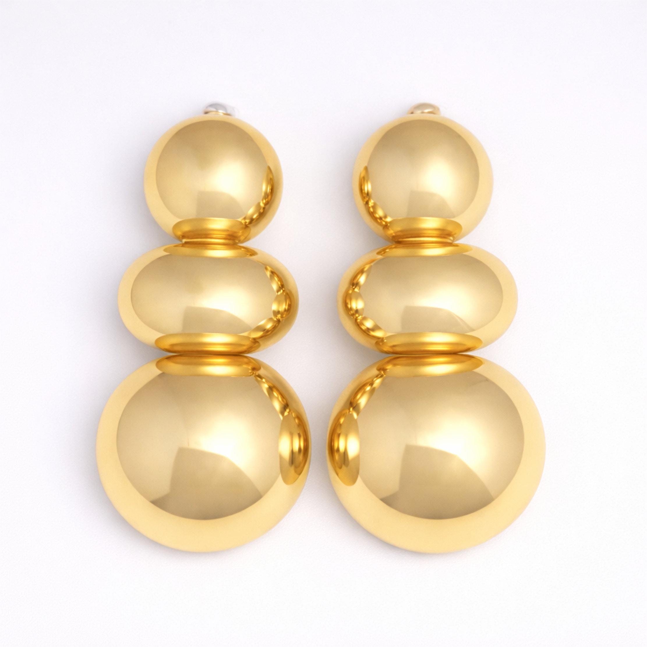 Make a statement with these striking drop earrings, designed for lovers of bold, modern jewellery. Featuring a chunky hollow triple half ball design, these earrings create a strong geometric silhouette that instantly elevates any outfit — perfect for evenings out, special occasions, or when you simply want your accessories to do the talking.