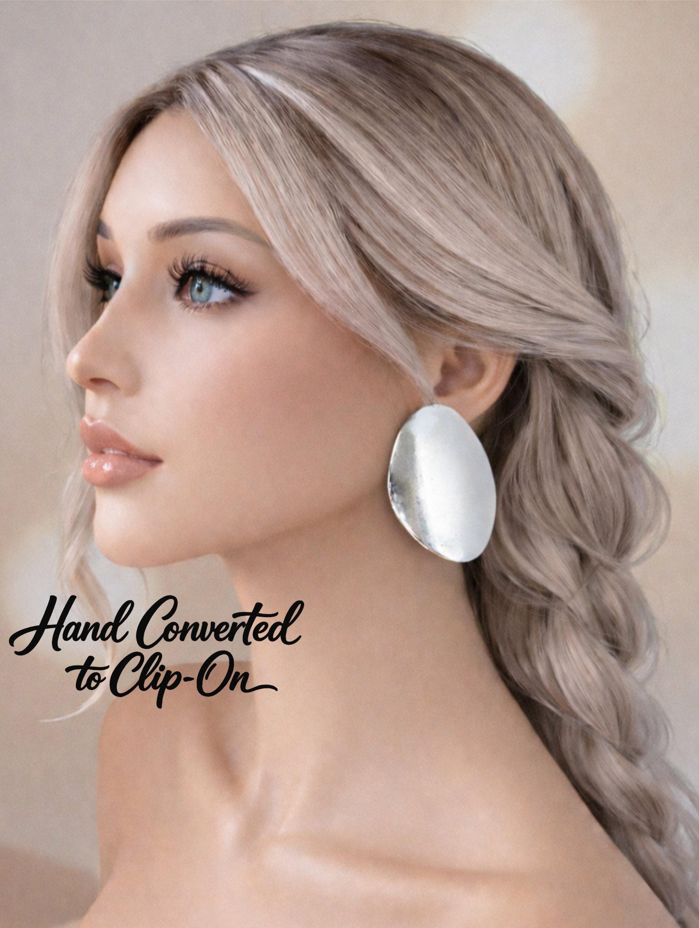 Each pair is individually hand-converted to clip-on from a pierced design by me.
