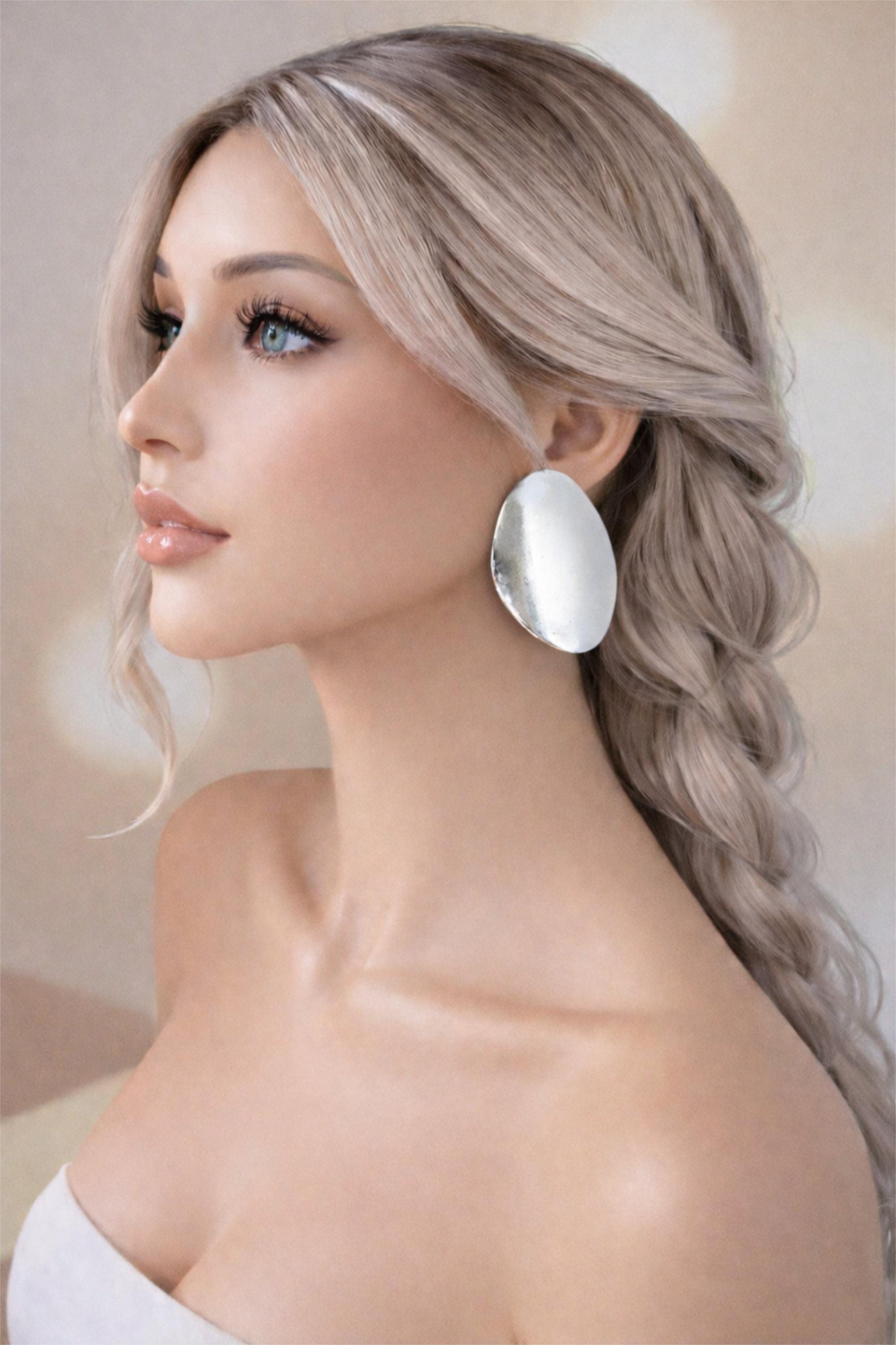 Make a bold statement with these oversized silver earrings, designed for maximum impact with a clean, modern finish.