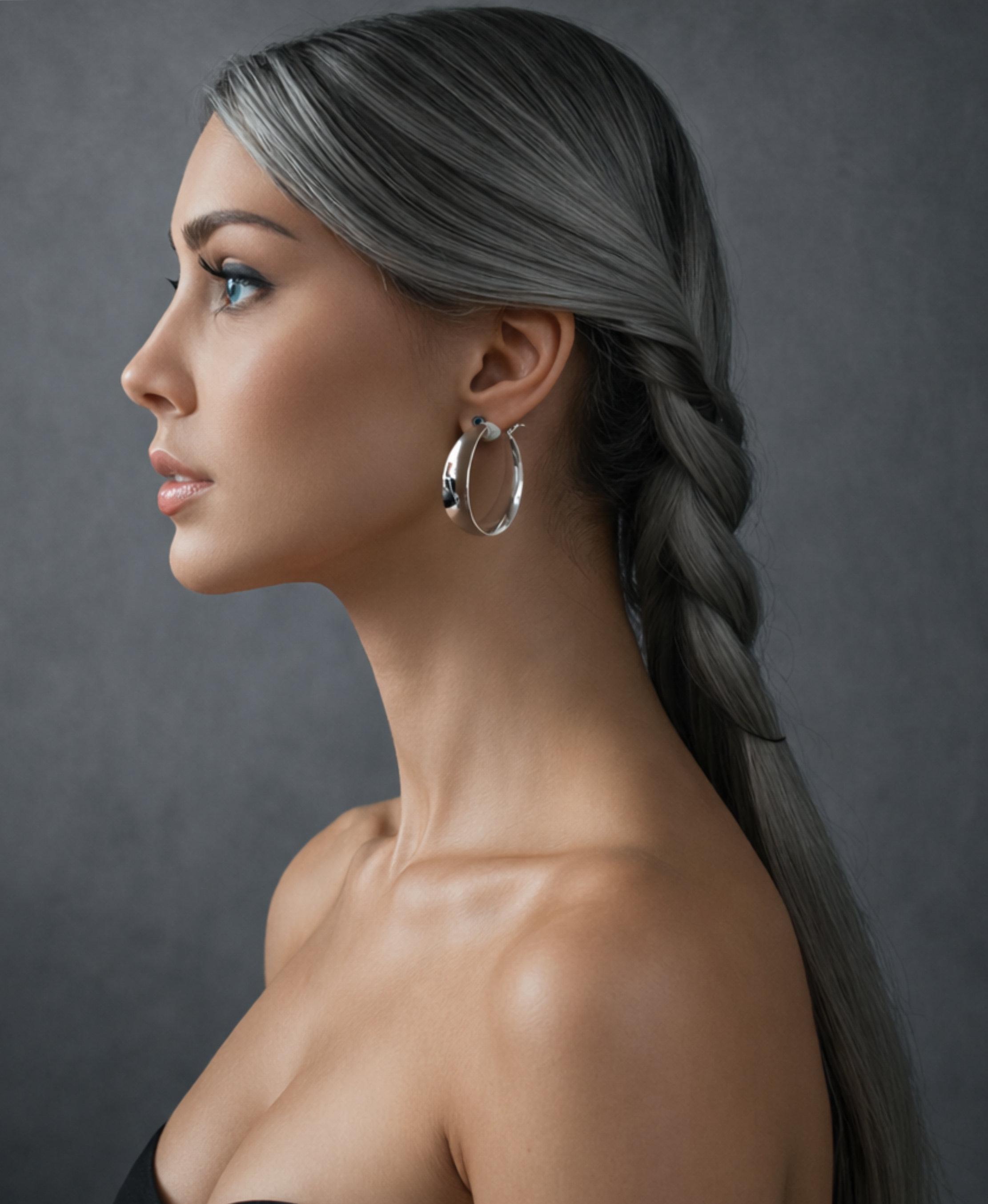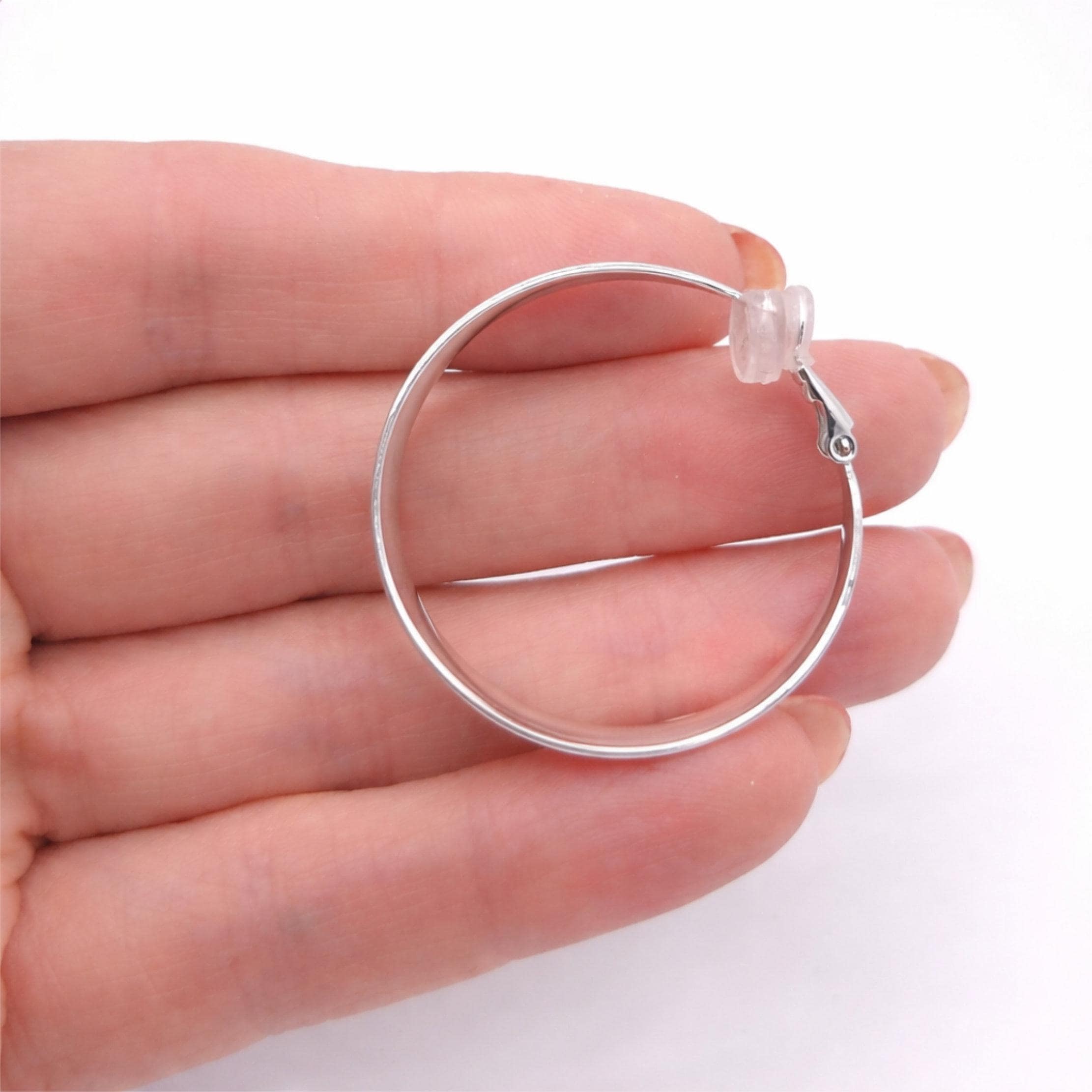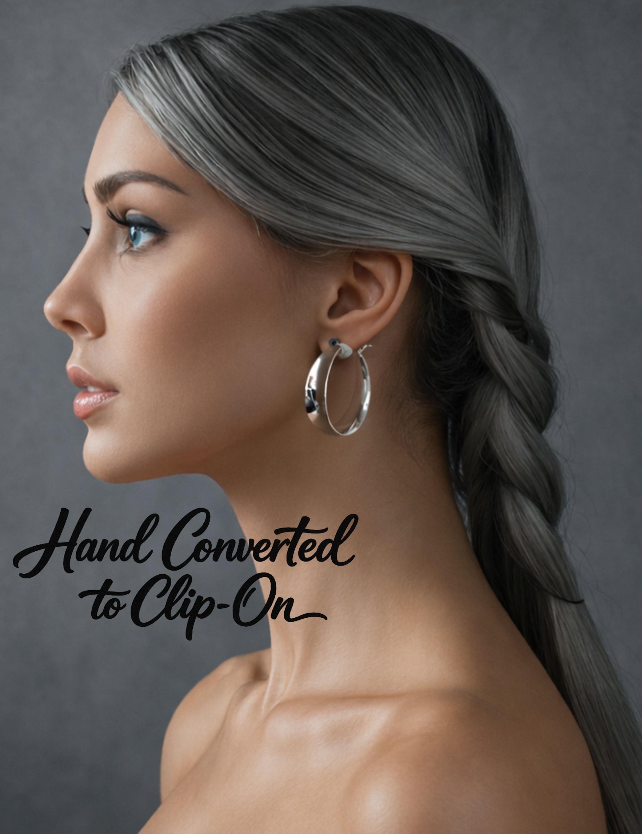 Add effortless style without the need for piercings! These elegant clip-on hoop earrings feature a wide concave tube design, finished with a beautiful sterling silver plating for a polished, timeless look. They’re the perfect size for making a statement while staying lightweight and comfortable for all-day wear