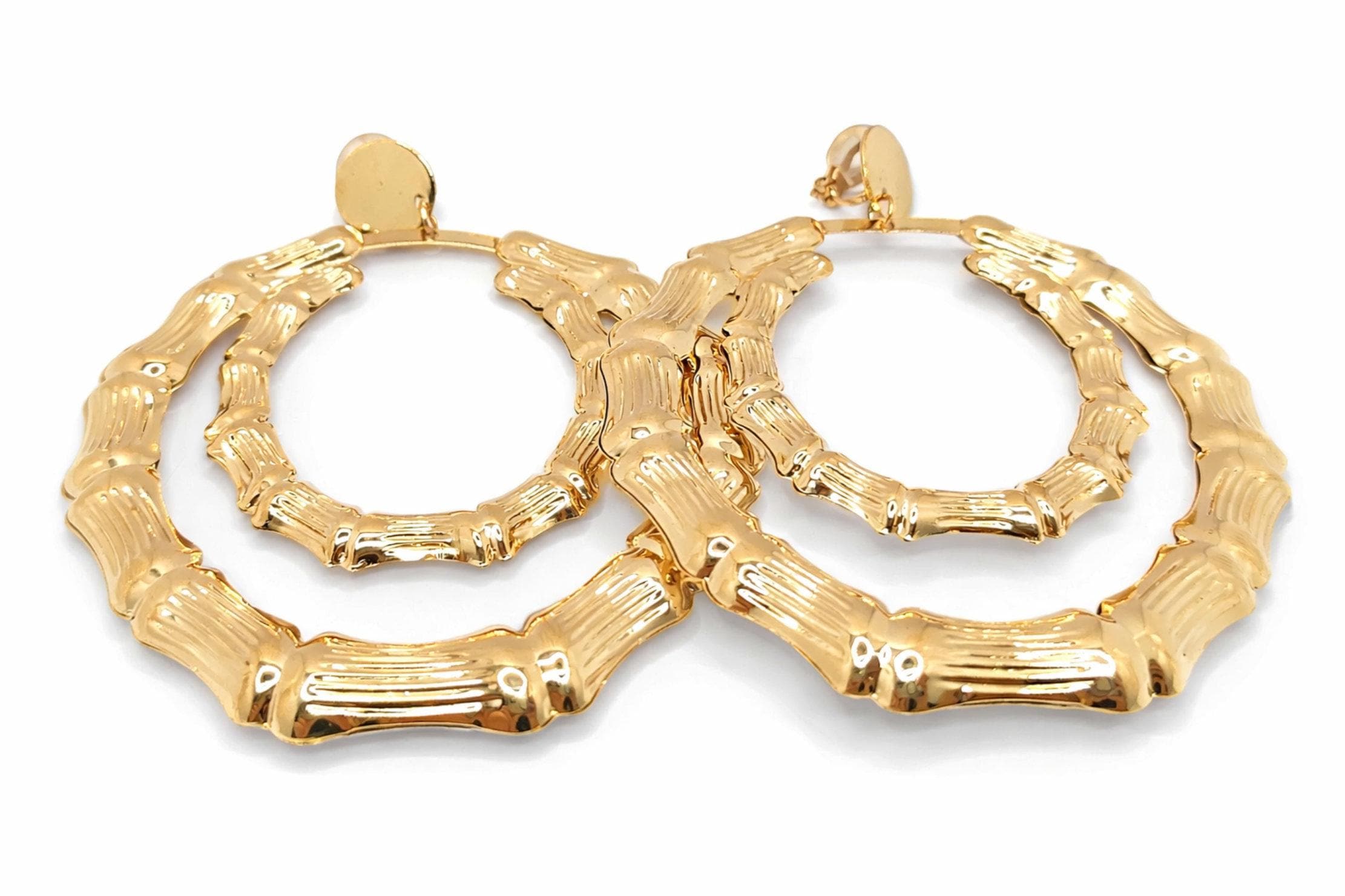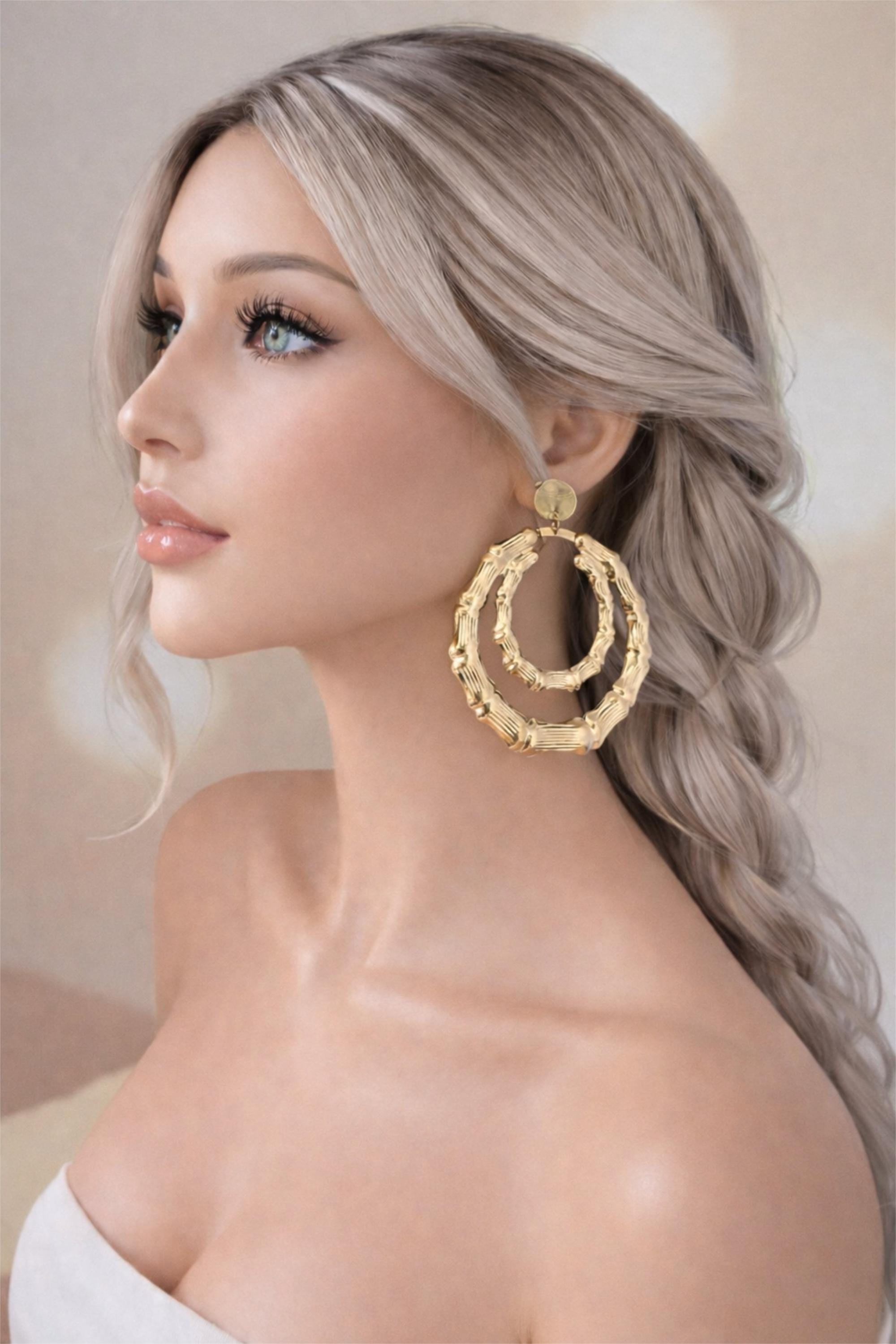 Make a statement with these bold bamboo-inspired round earrings, designed for those who love standout jewellery without needing pierced ears.