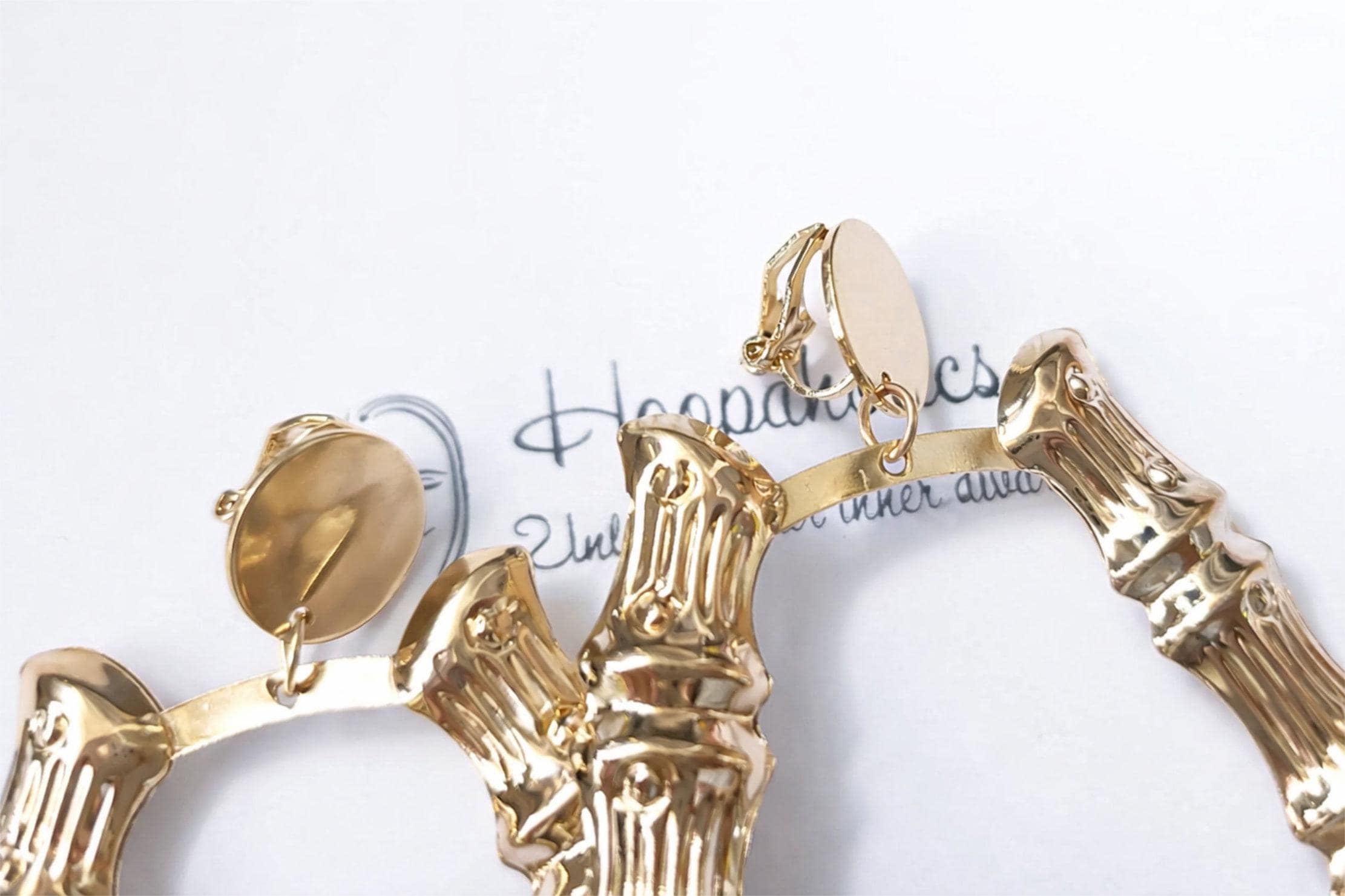 Make a statement with these bold bamboo-inspired triangle earrings, designed for those who love standout jewellery without needing pierced ears.