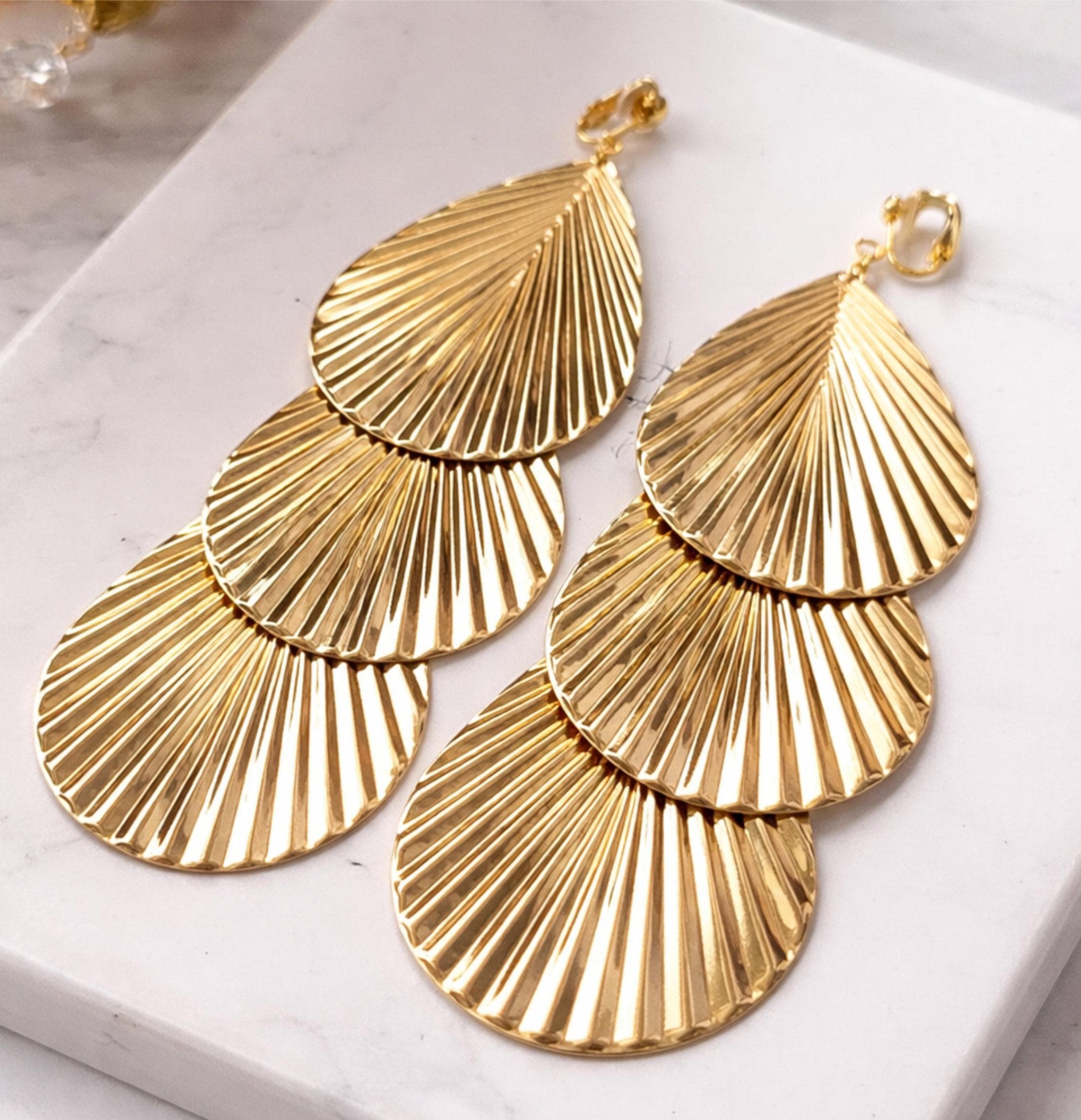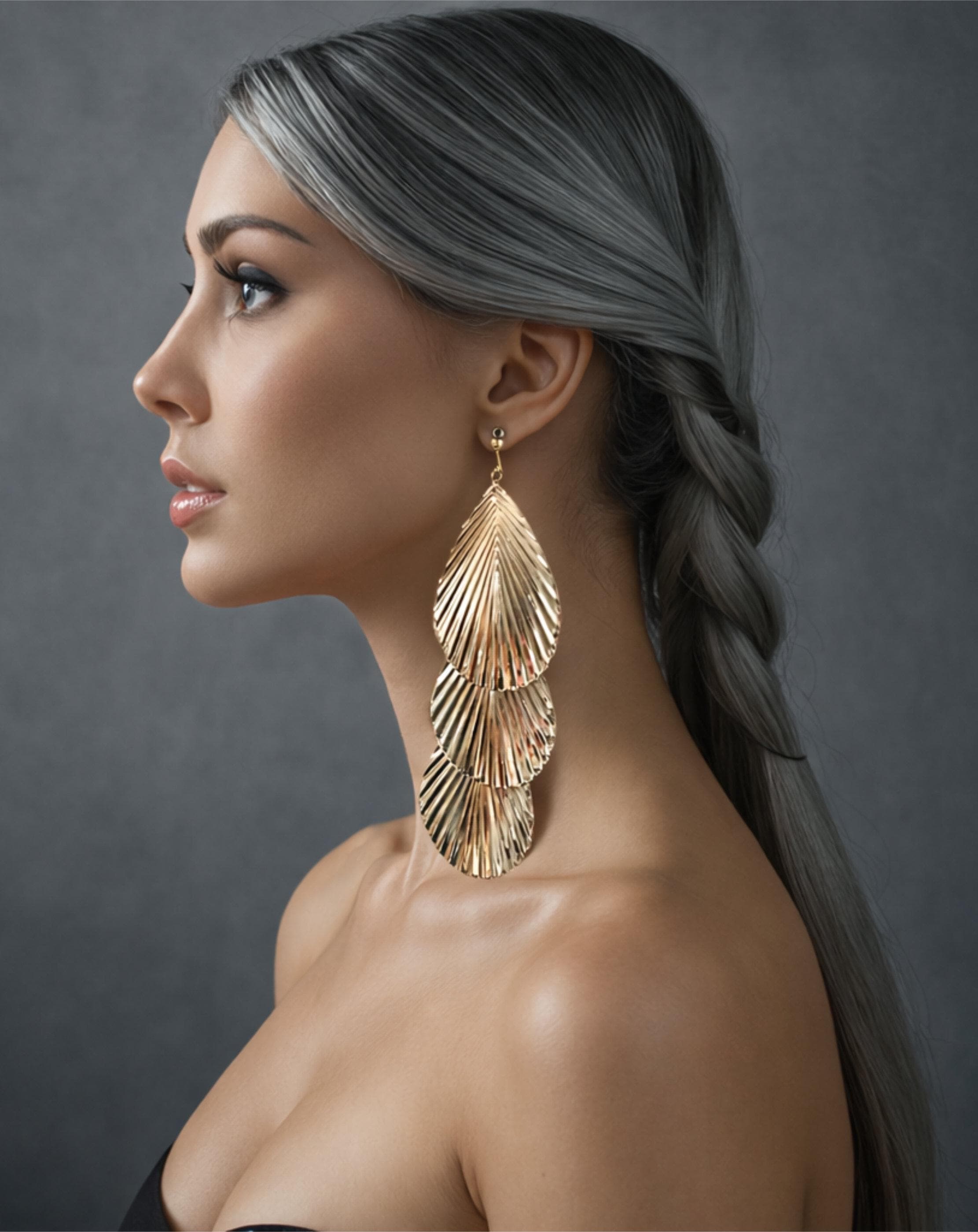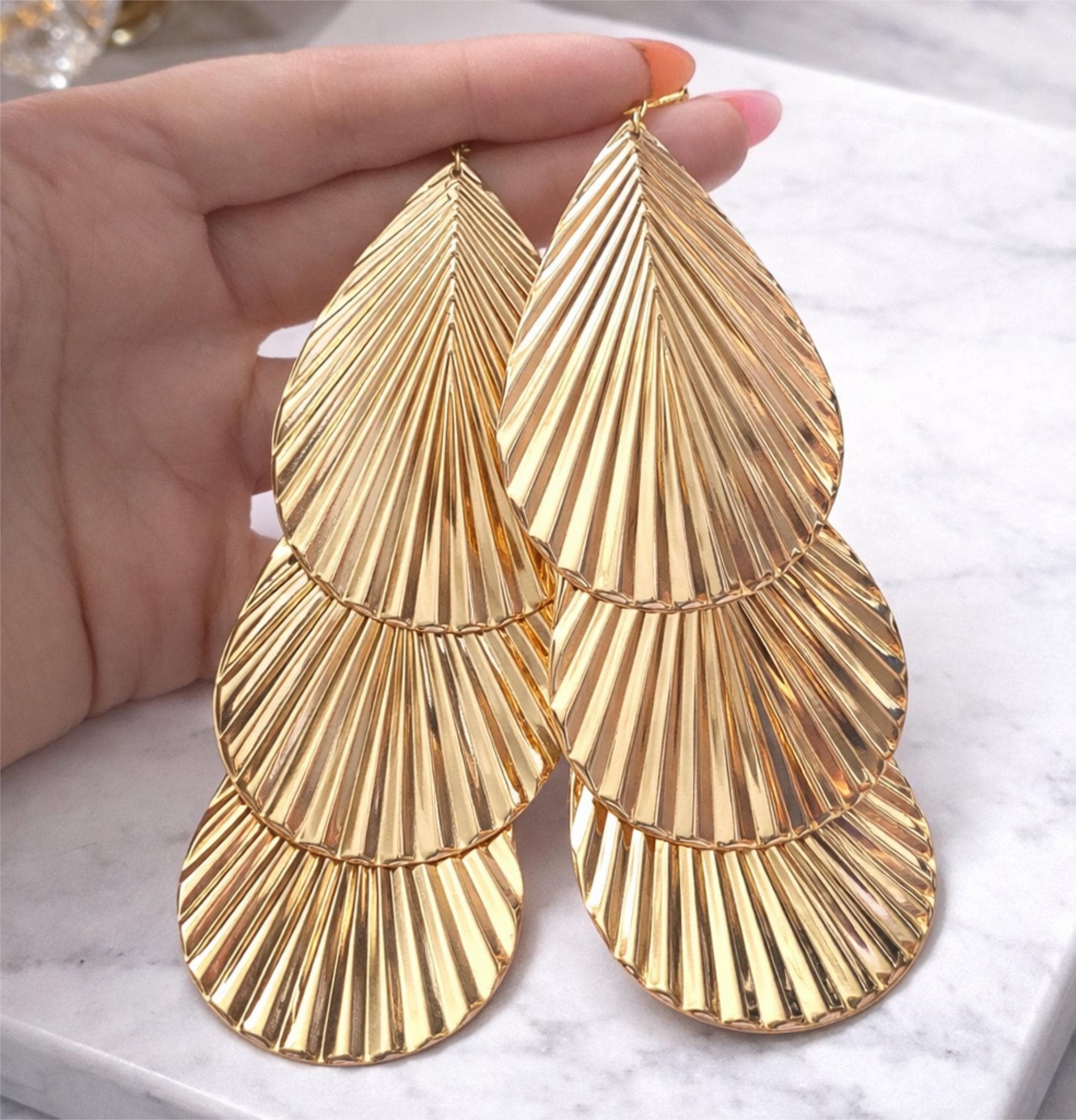 Bold and elegant Gold tone triple-layered drop earrings