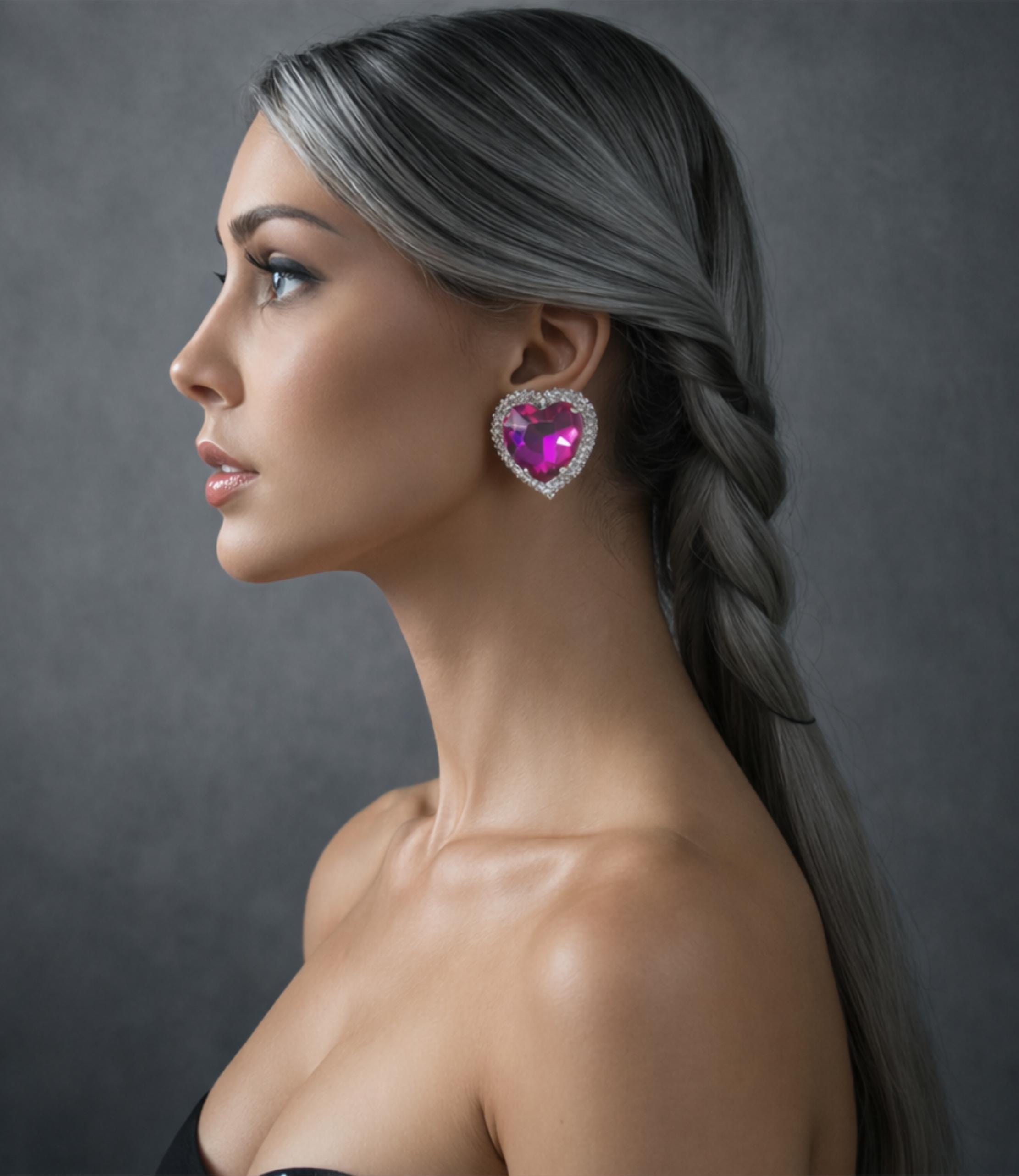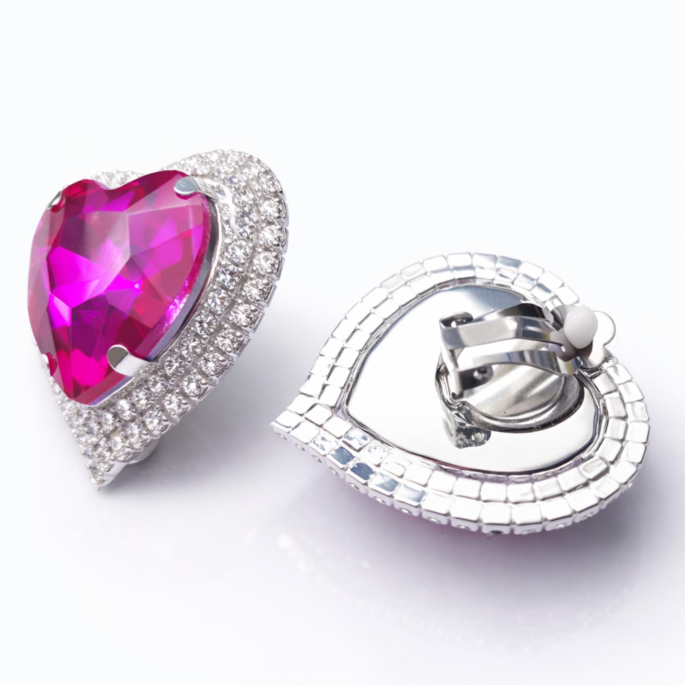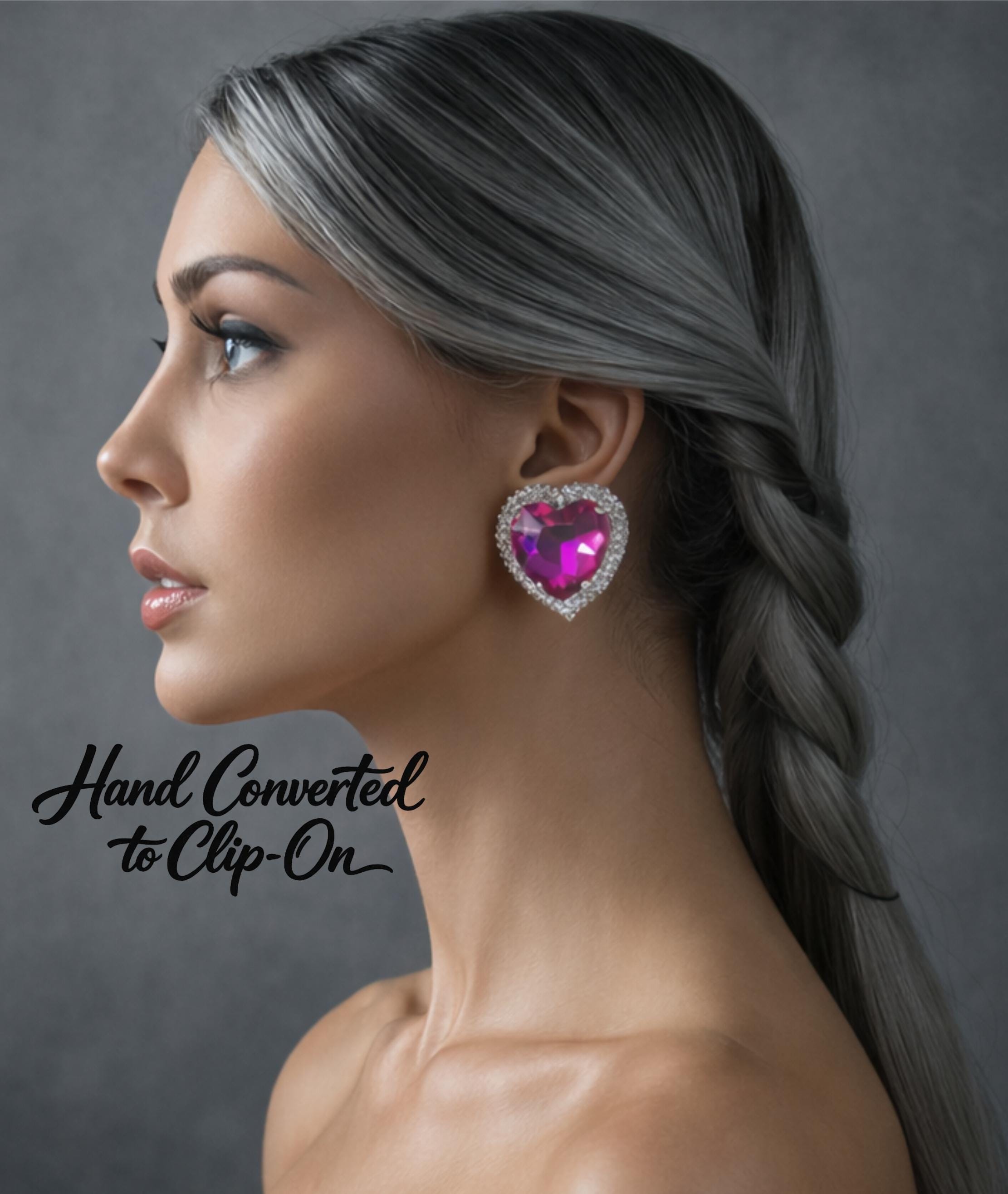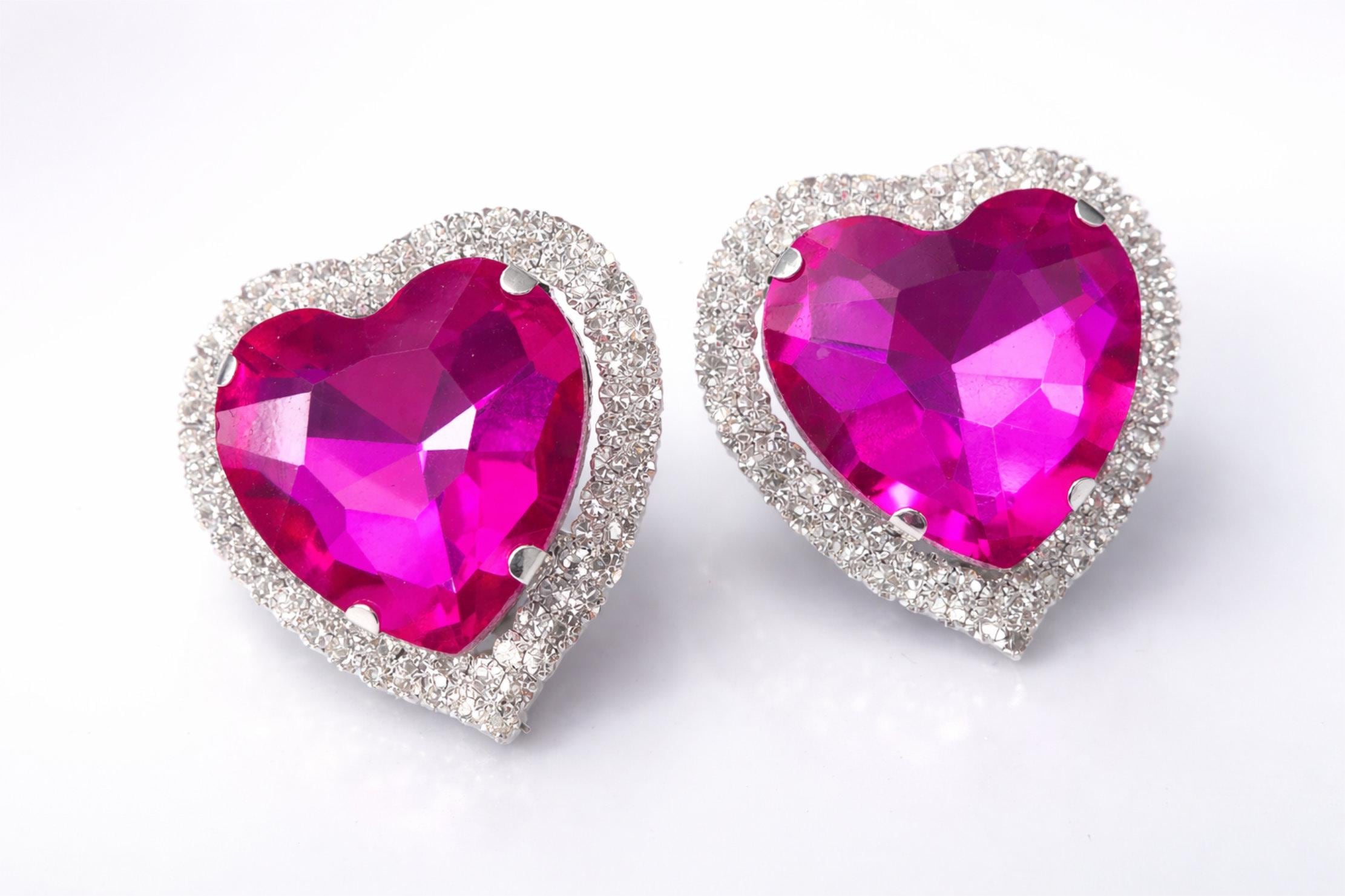 These big chunky pink diamante heart clip-on earrings are bold, sparkly, and full of personality. Perfect for anyone who loves a bit of glam, retro Y2K style, or statement jewelry that shines from every angle.