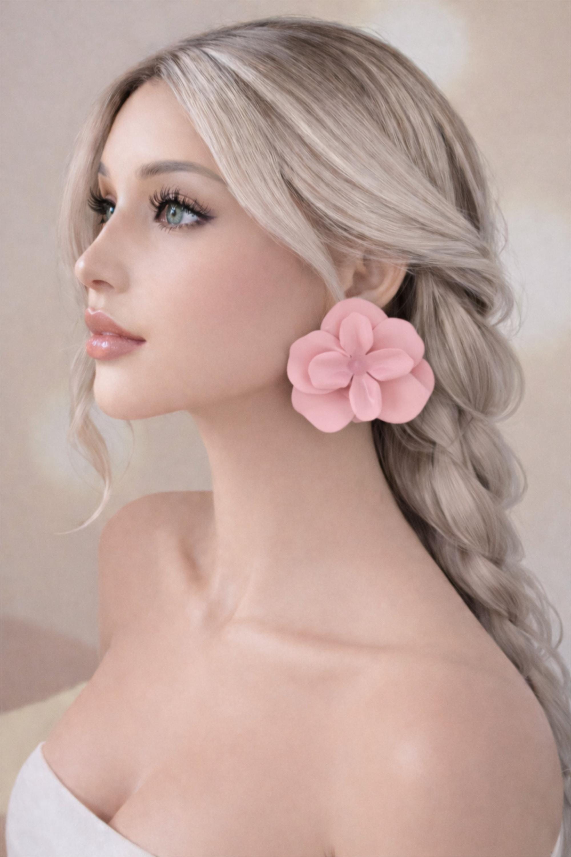 Designed to stand out, these 3D floral earrings feature layered sculpted petals for a striking, dimensional look. The soft blush pink tone makes them perfect for spring outfits, weddings, holidays, or adding a pop of colour to a neutral look.