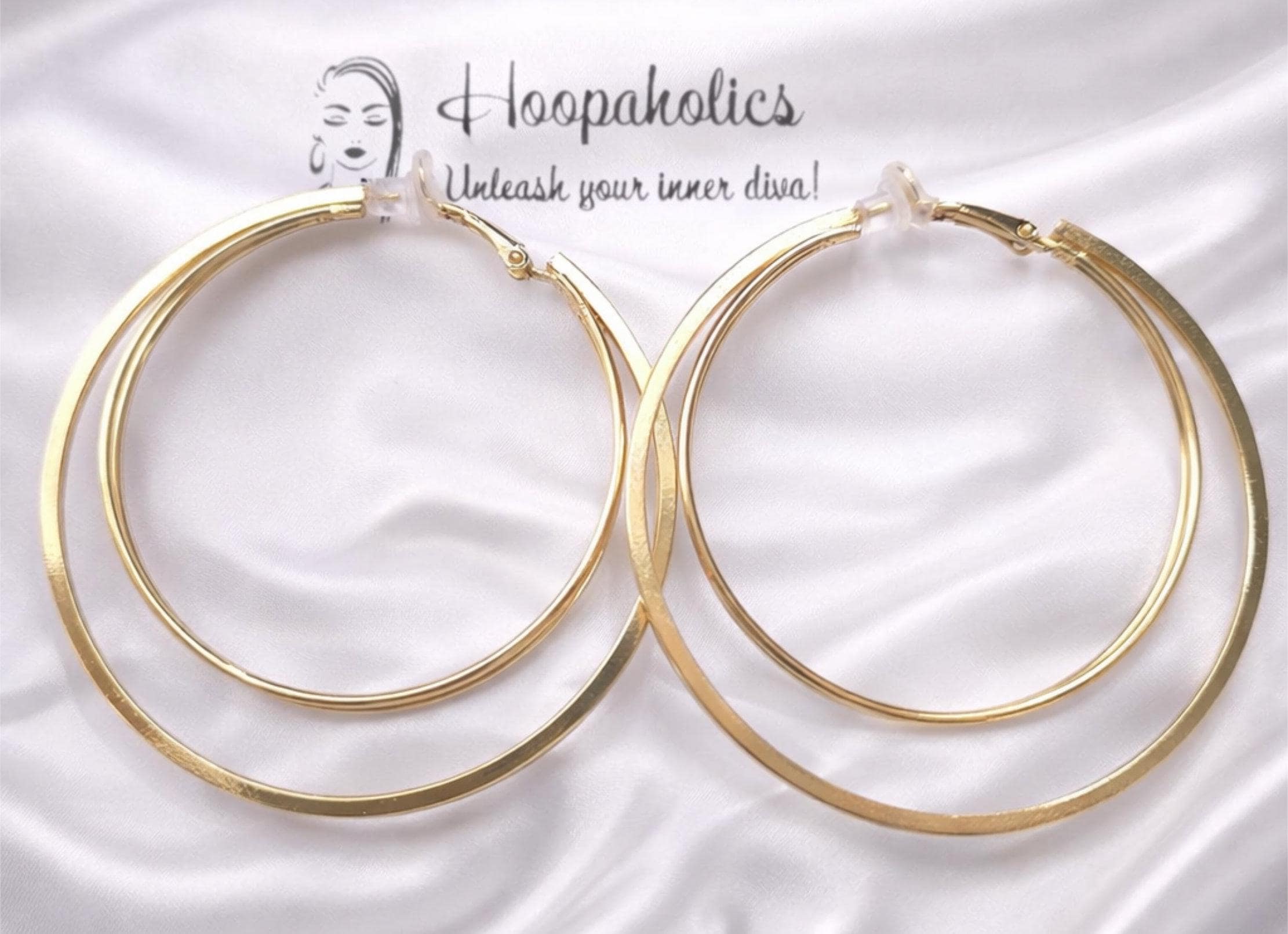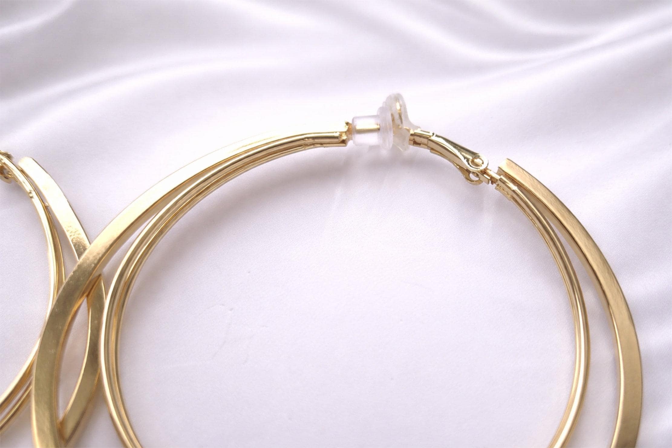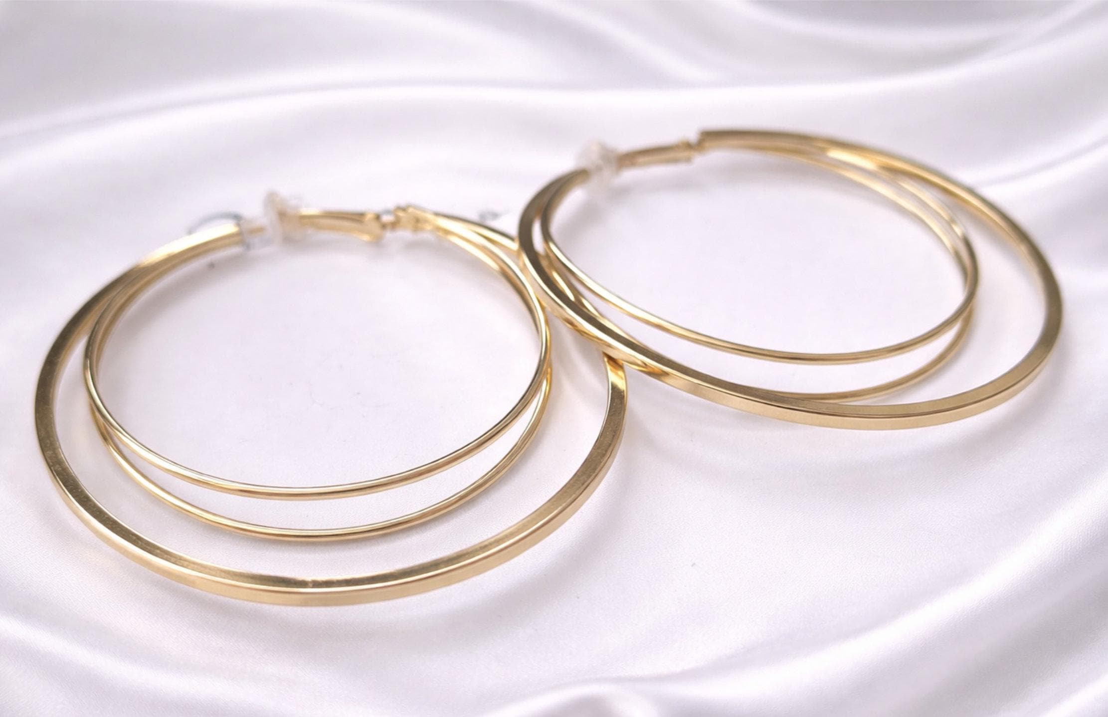 A bold yet effortless statement, these double hoop clip-on earrings feature a layered design that gives the look of multiple hoops in one.