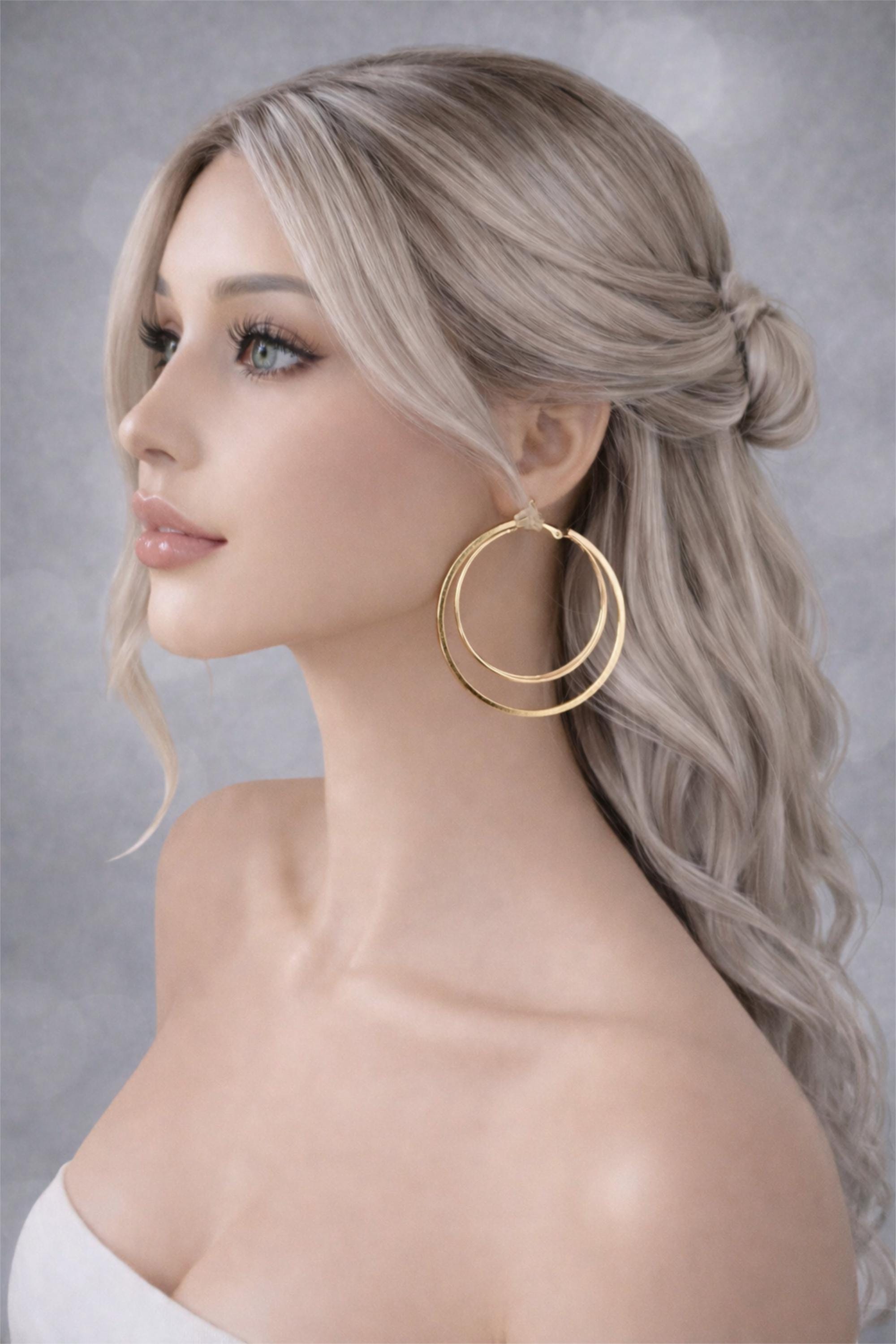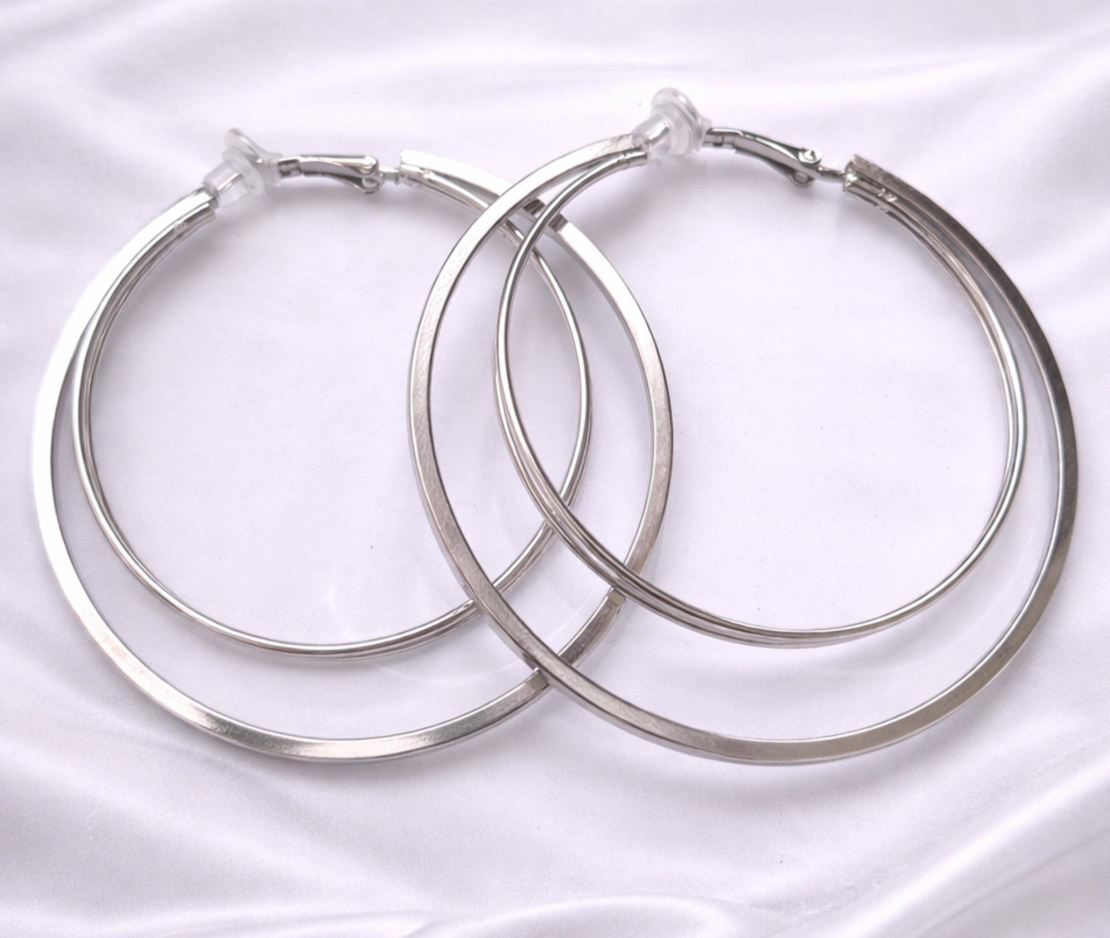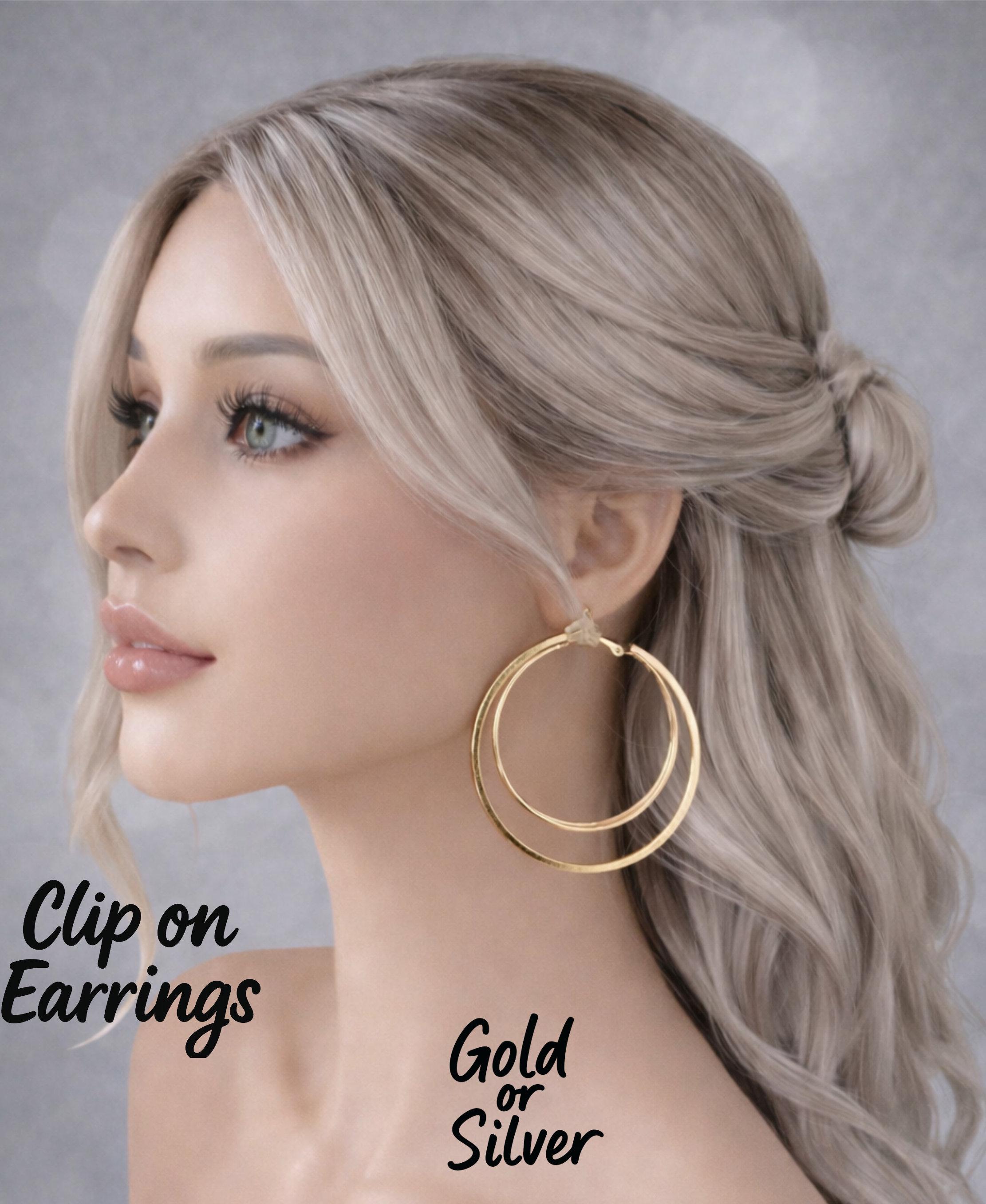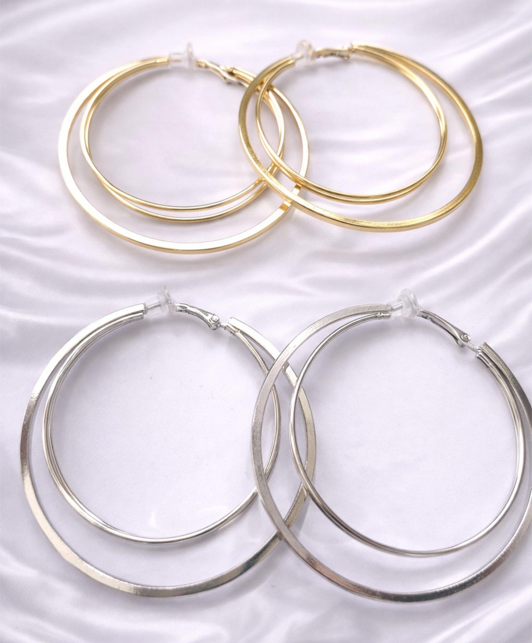 A bold yet effortless statement, these double hoop clip-on earrings feature a layered design that gives the look of multiple hoops in one.