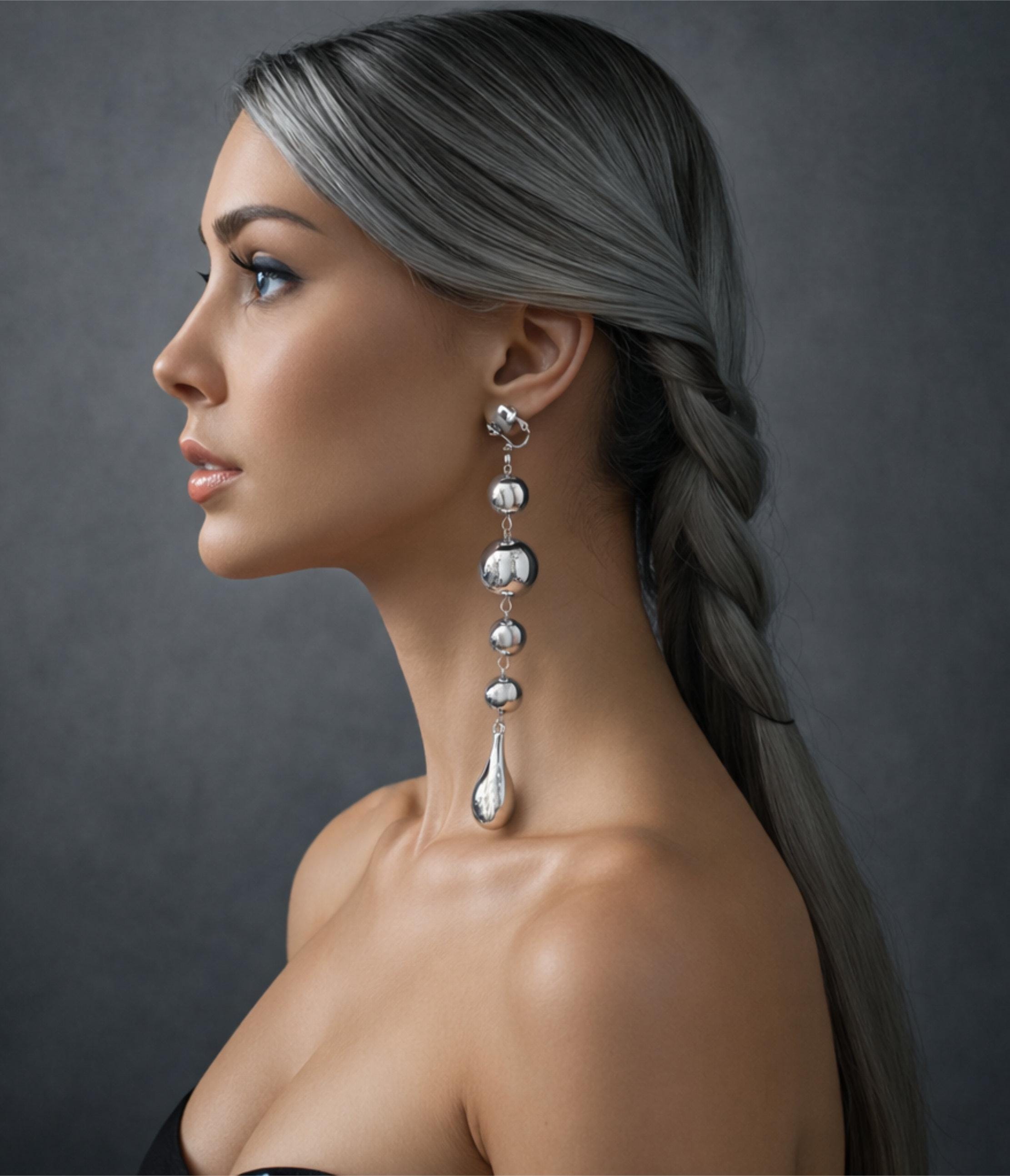 Add instant glamour without the need for pierced ears! These stunning Clip-On Silver Drop Earrings feature a bold, chunky design with graduated CCB beads that cascade elegantly into a sleek teardrop finish. Crafted with a shiny CCB silver tone beads, these earrings are lightweight yet eye-catching, making them perfect for all-day comfort and high-impact style