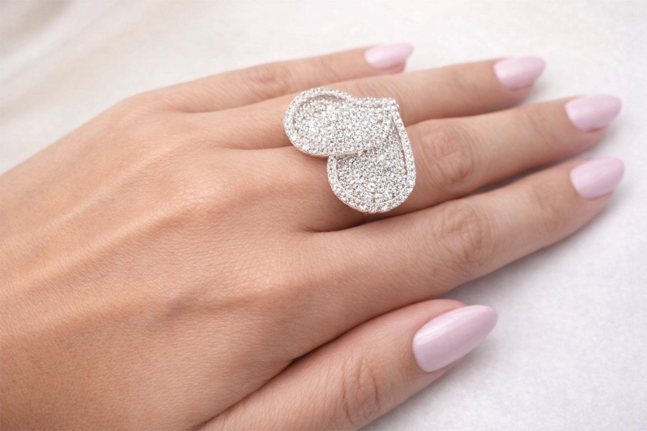 Shimmering Heart Rhinestone Adjustable Cocktail Ring
