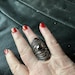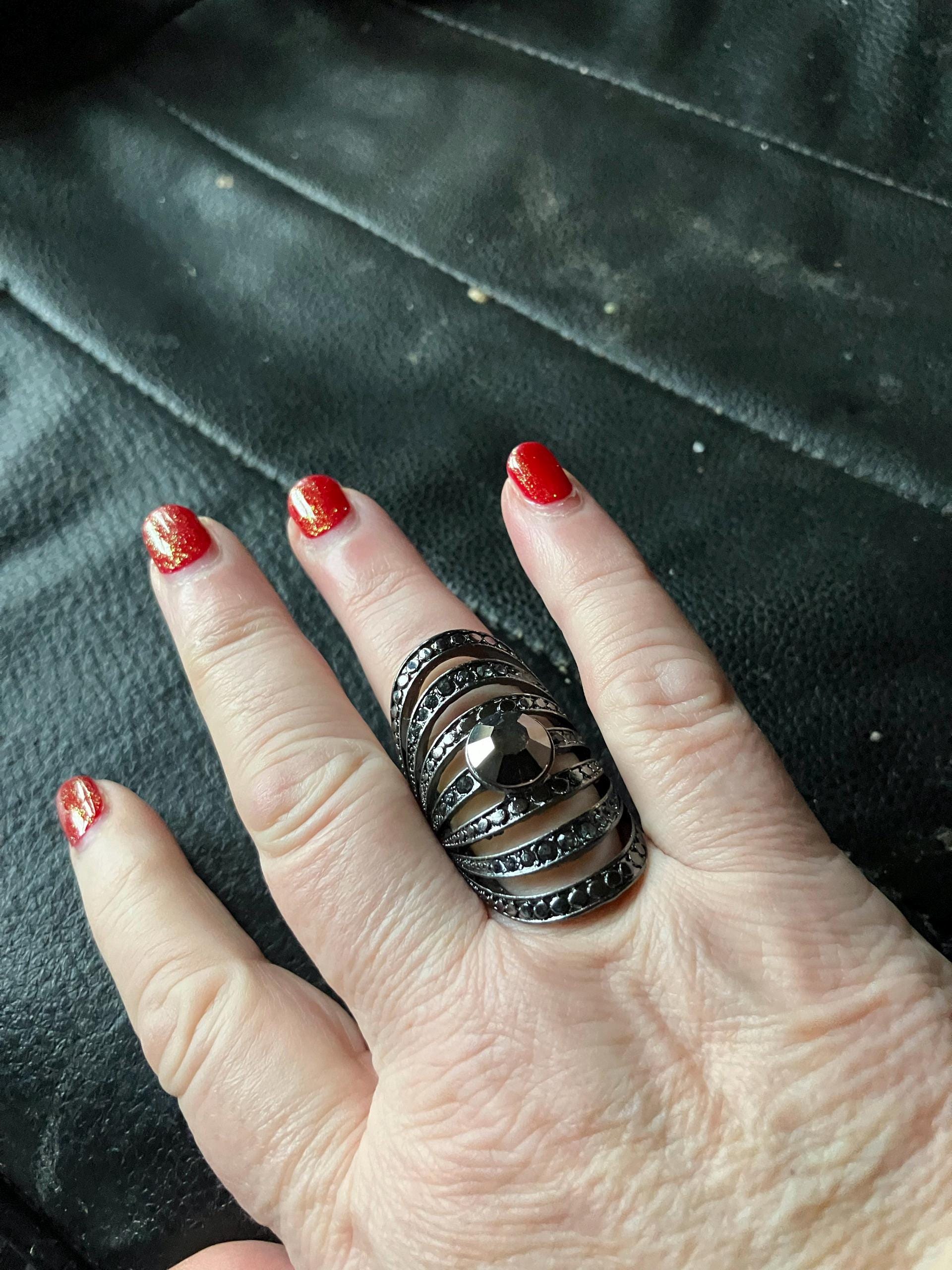 Make a statement with this elegant hematite-colored cocktail ring. Featuring a striking oval design gives it a sleek, modern look to any outfit. Its elastic band ensures a comfortable, adjustable fit for most finger sizes, making it both stylish and practical. Perfect for evening events, parties, or adding a chic accent to your everyday look, this ring is a must-have fashion accessory for those who love bold, contemporary jewelry.