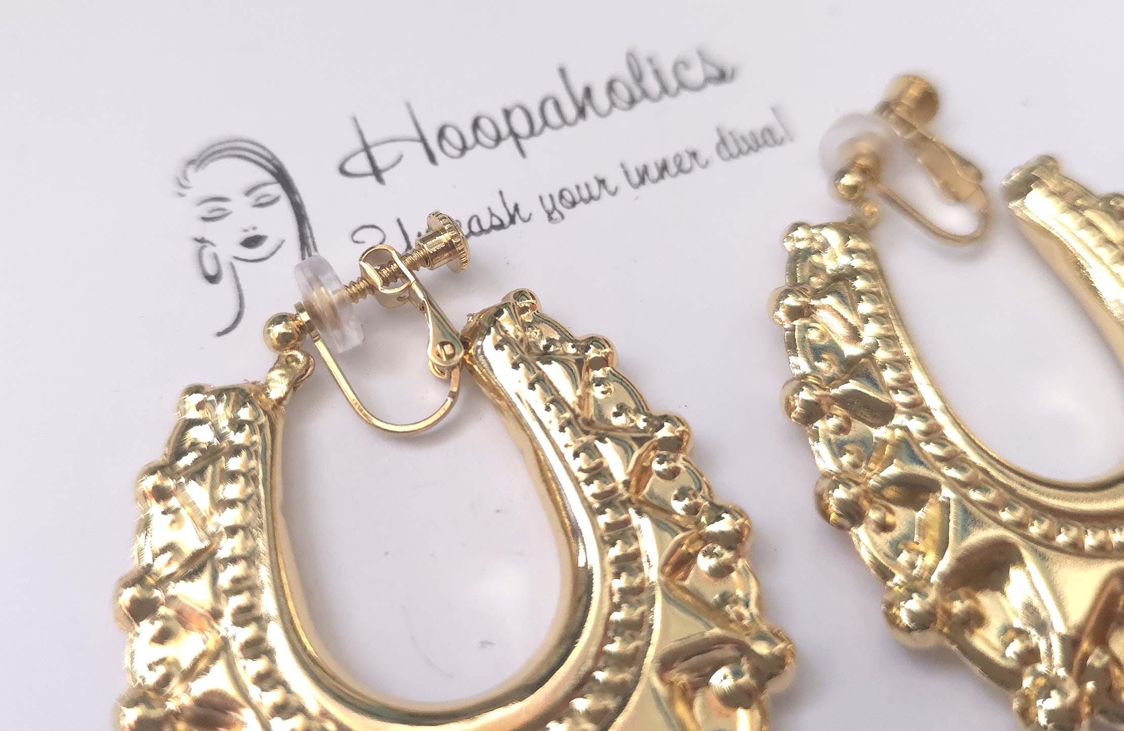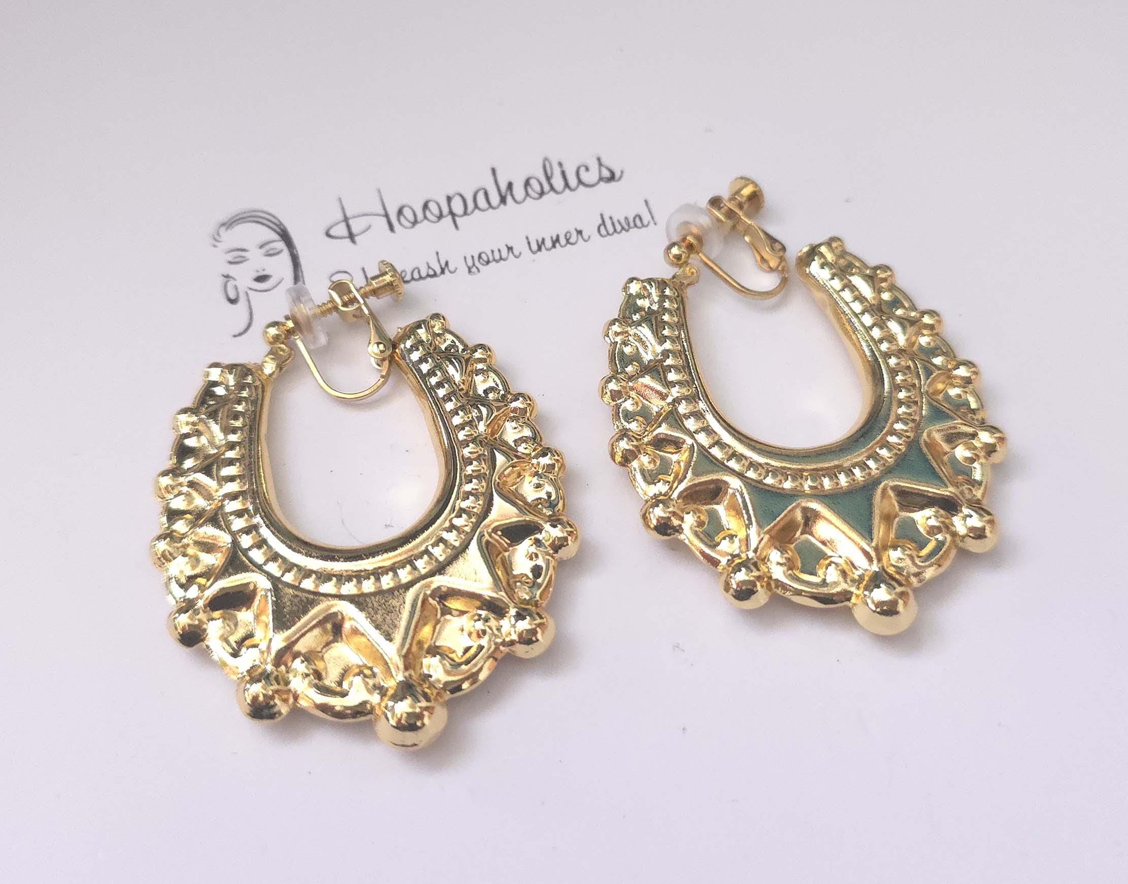 Shine with confidence in these bold creole hoops by Hoopaholics. Featuring intricate tribal-inspired detailing and a 18k Gold plated radiant finish, these lightweight earrings add a touch of elegance and boho charm to any outfit — perfect for festivals, parties, or everyday glam.