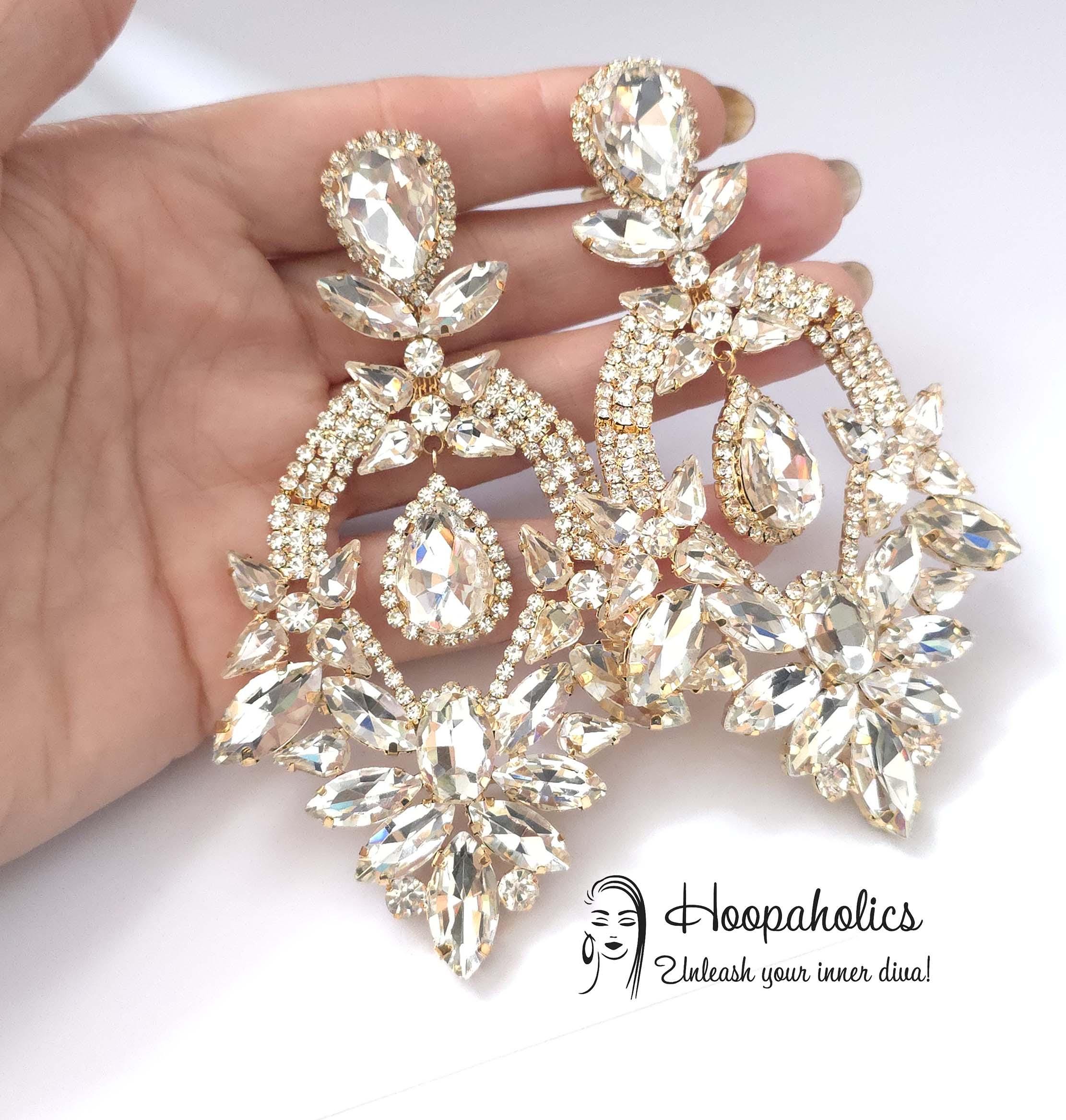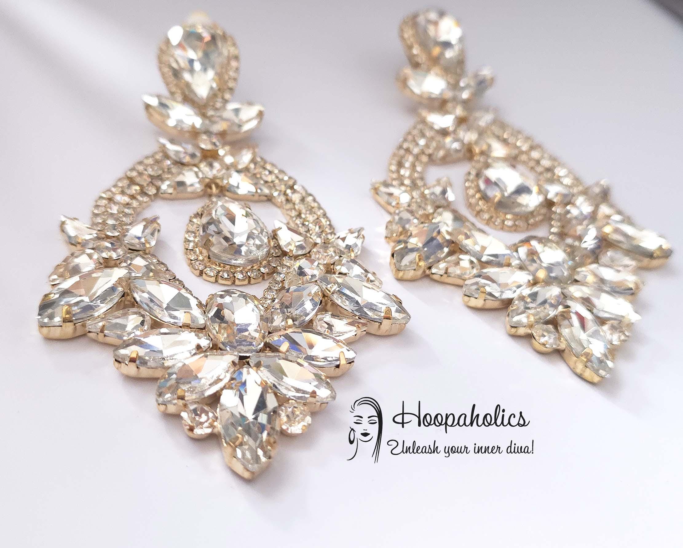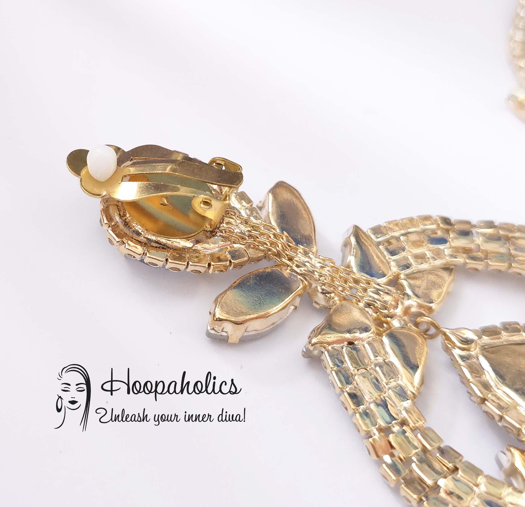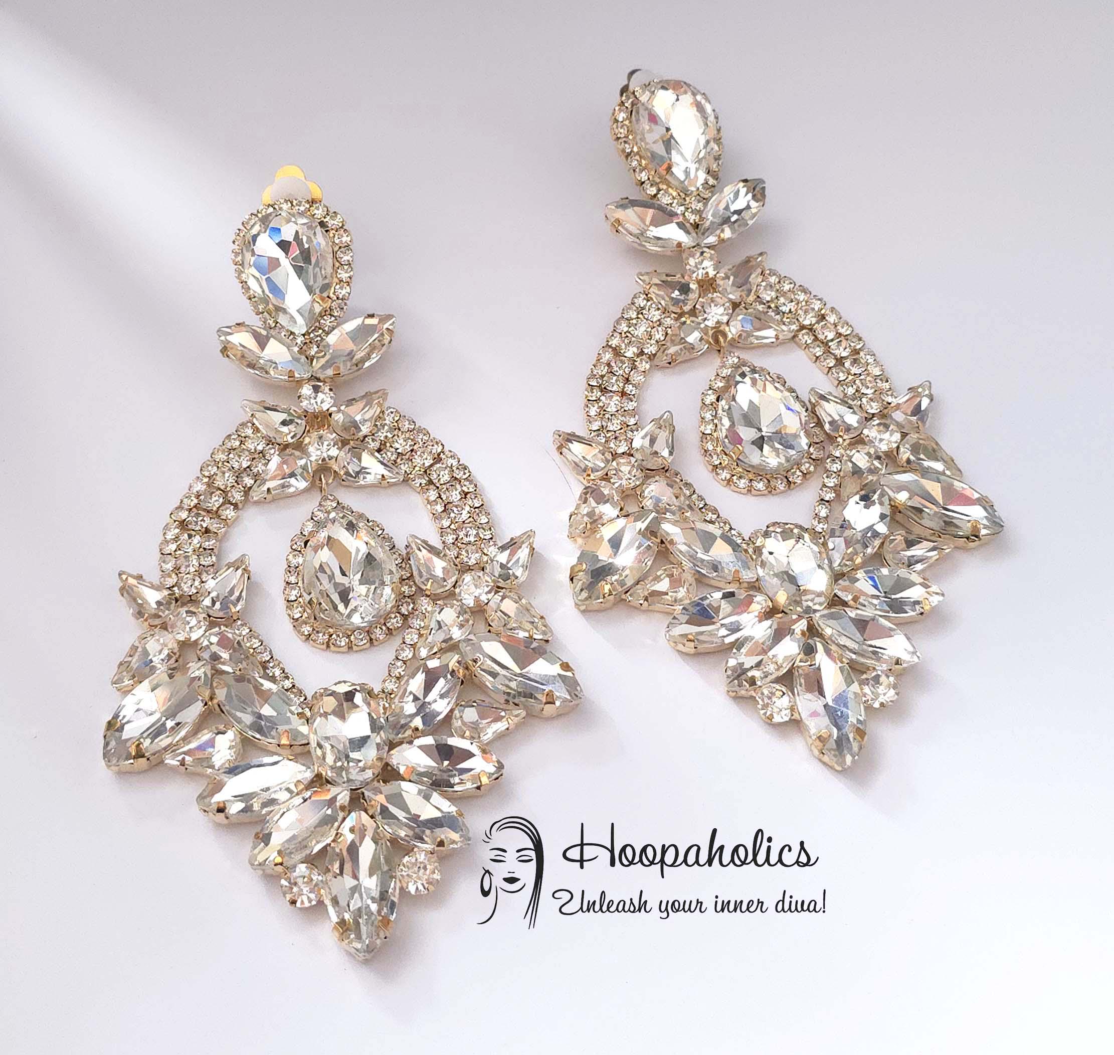 Turn heads with these stunning gold tone & crystal statement clip-on earrings! Designed for maximum sparkle and comfort, these earrings are perfect for anyone who wants bold, luxurious style