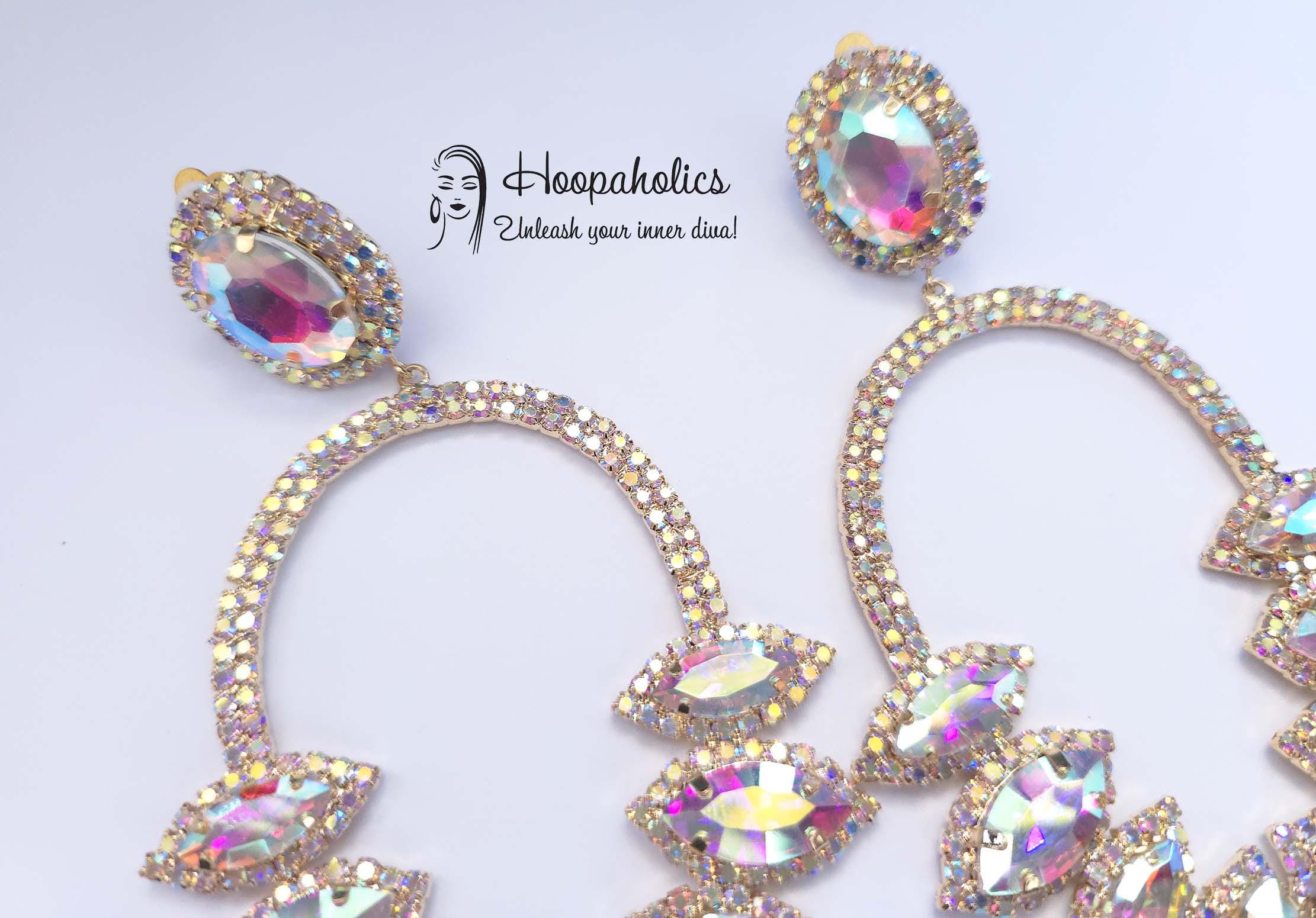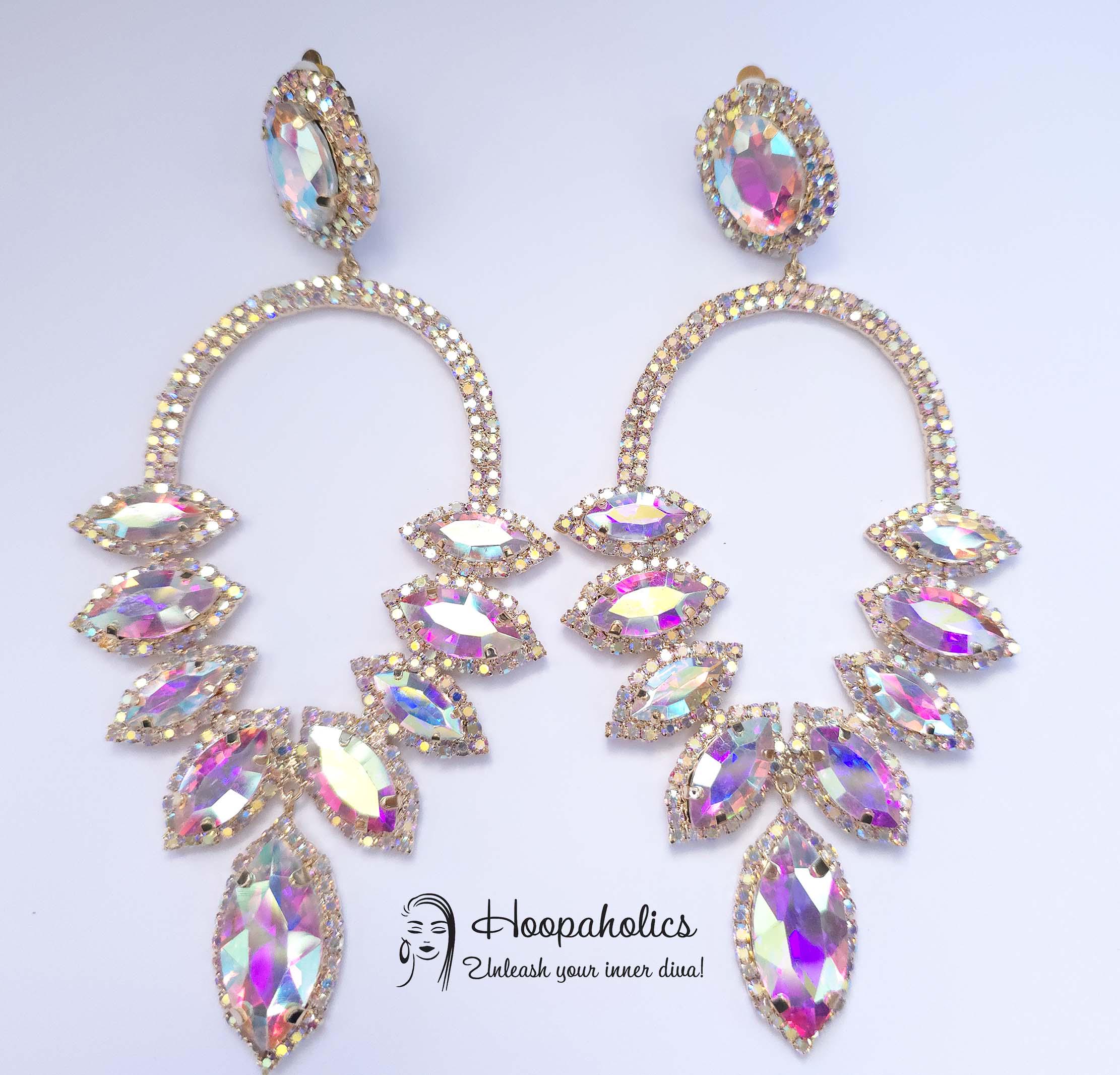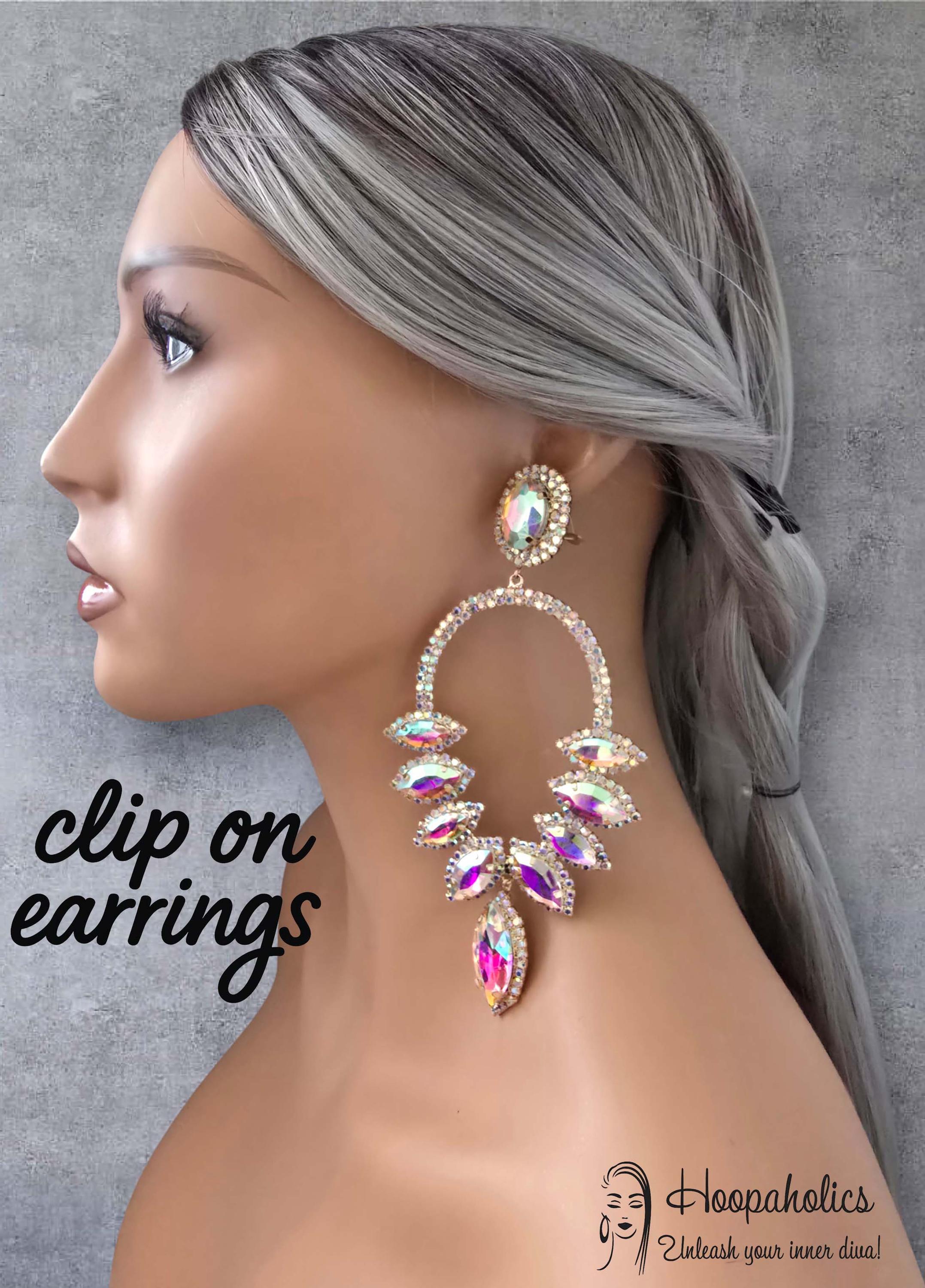 Turn heads with these dazzling AB crystal clip-on earrings — the perfect blend of glamour and comfort! Designed for non-pierced ears, these luxurious statement earrings feature shimmering aurora borealis rhinestones that catch the light from every angle.