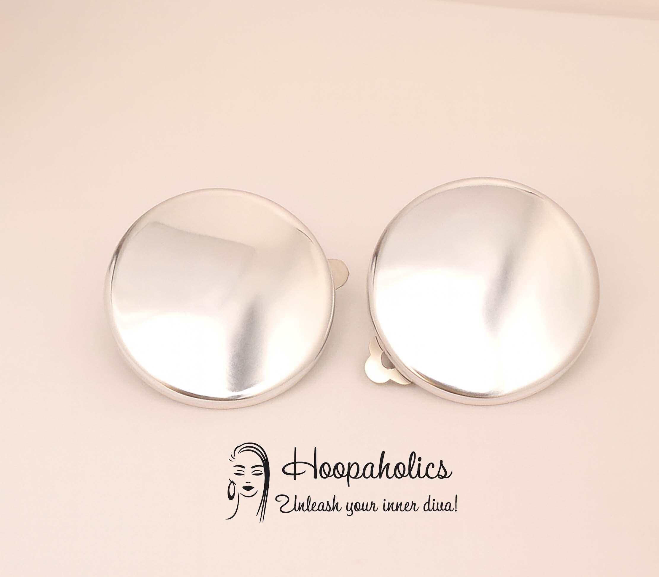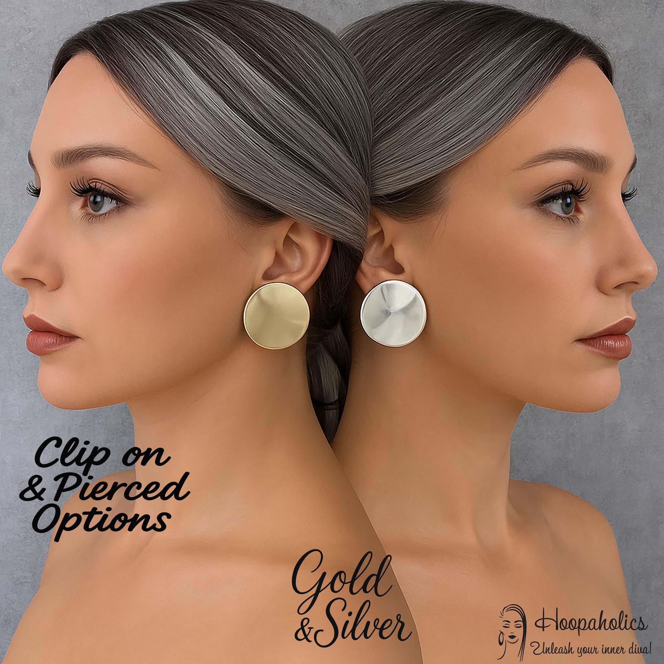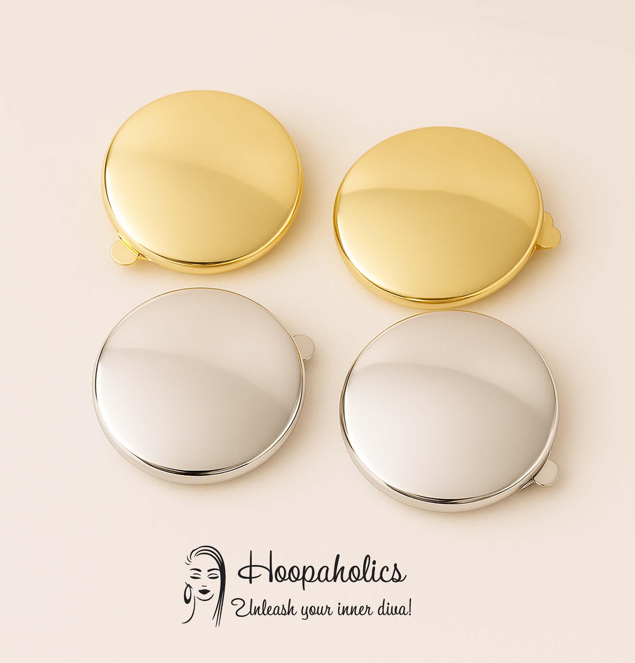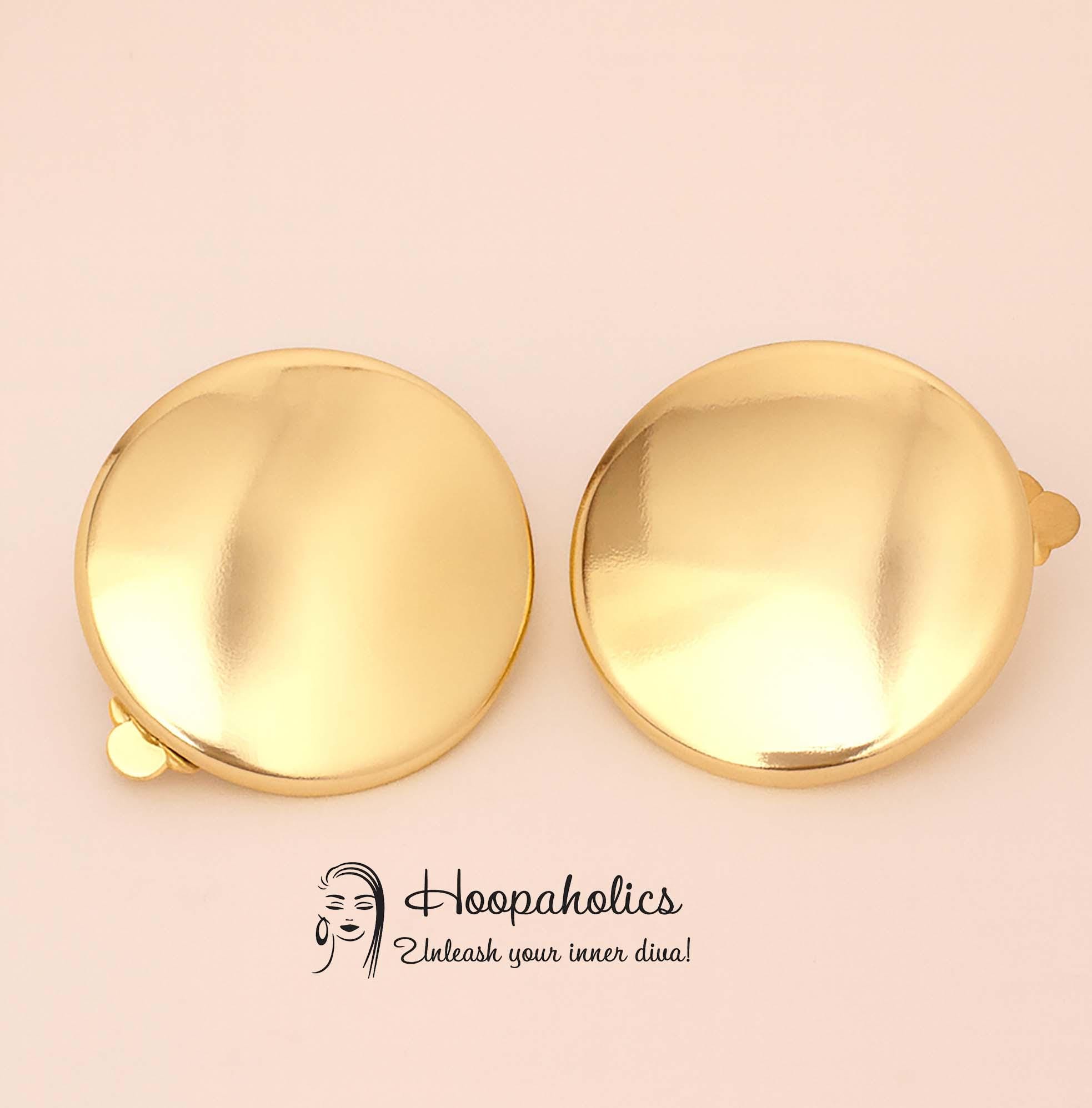 Add a touch of sleek, modern shine with these stunning mirror-finish clip-on earrings. Featuring smooth round ACRYLIC discs in polished gold and silver tones, they reflect light beautifully for a bold yet minimalist look. These statement clips are lightweight and comfortable to wear all day. Perfect for dressing up any outfit, from casual to elegant evening wear.