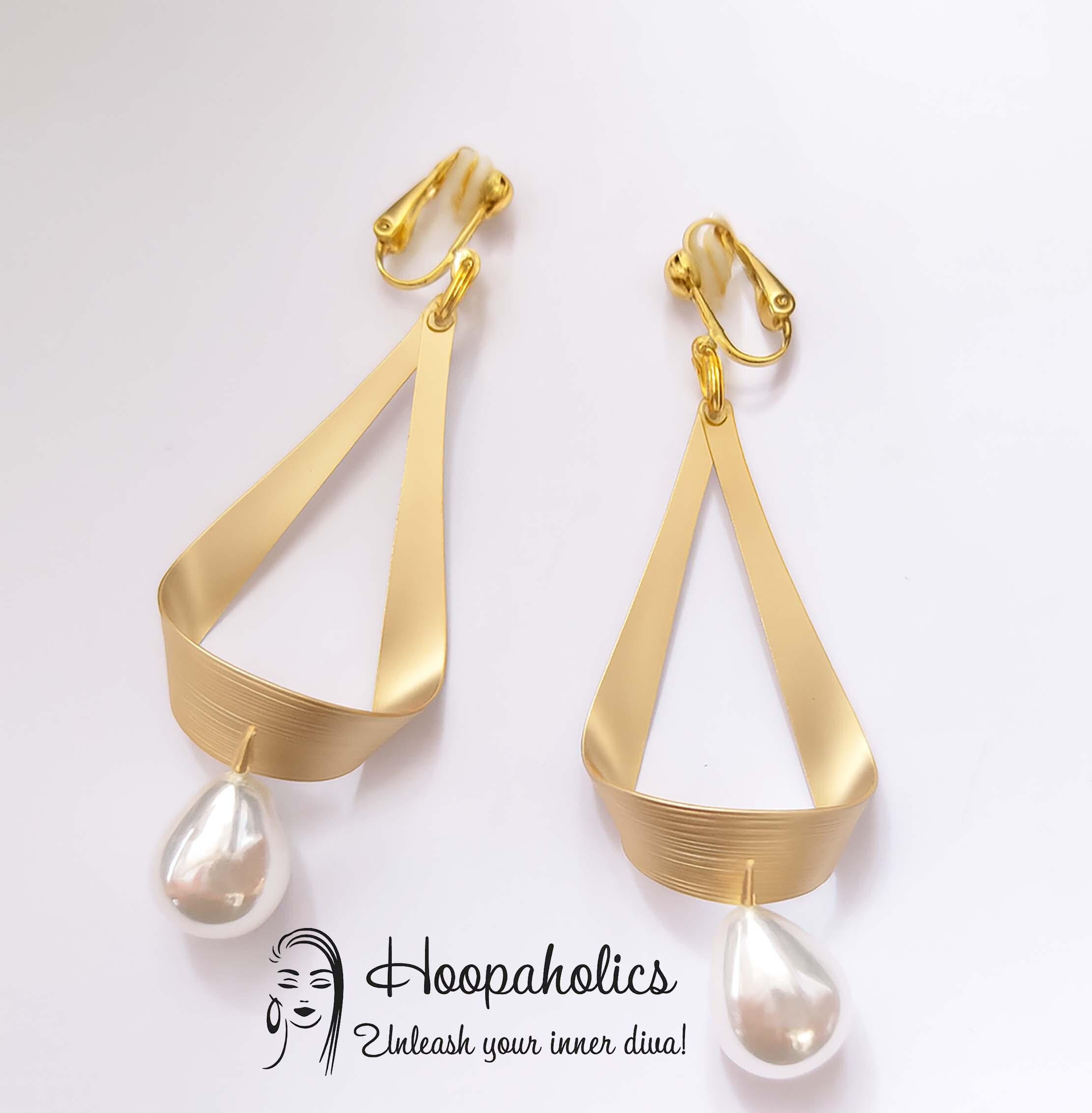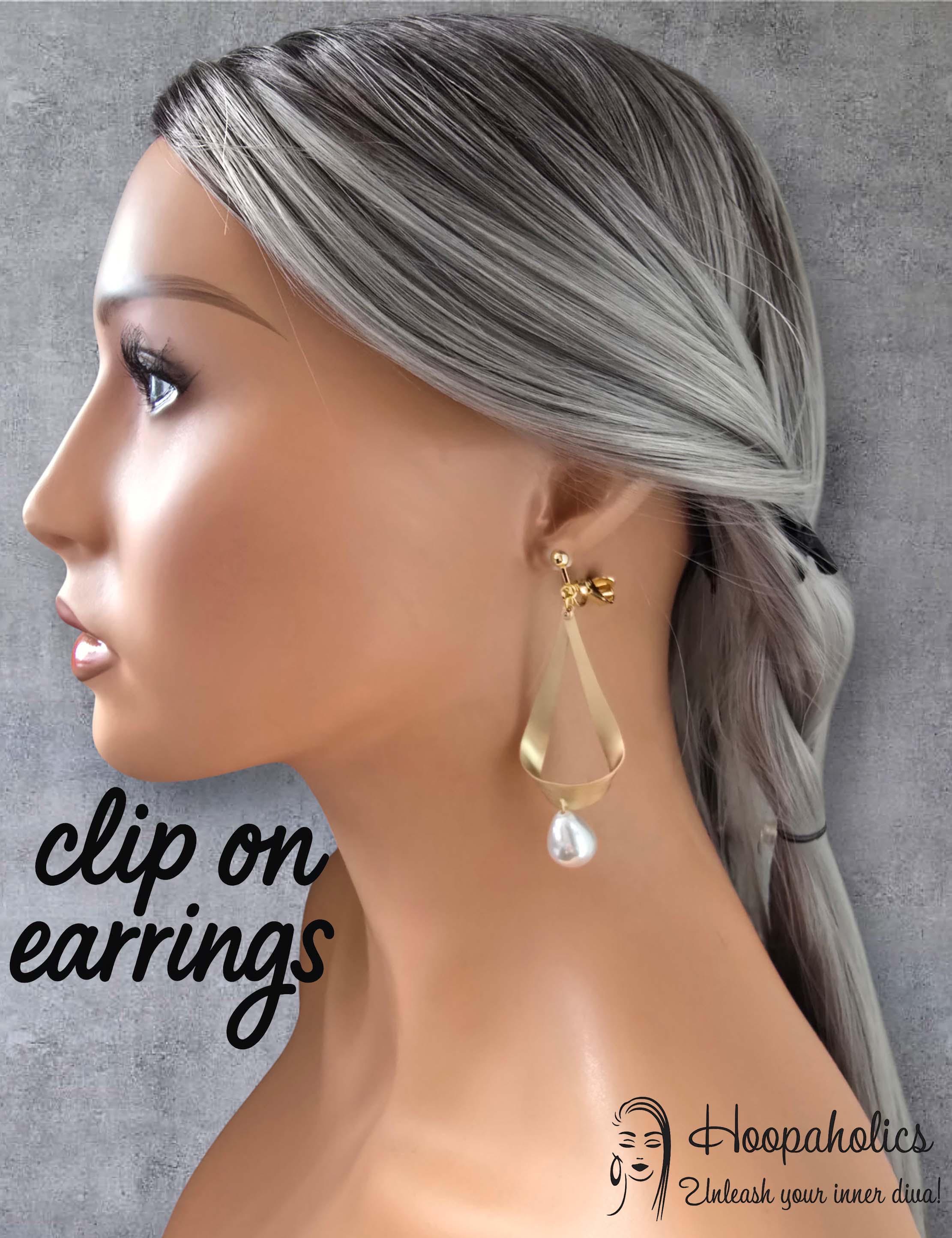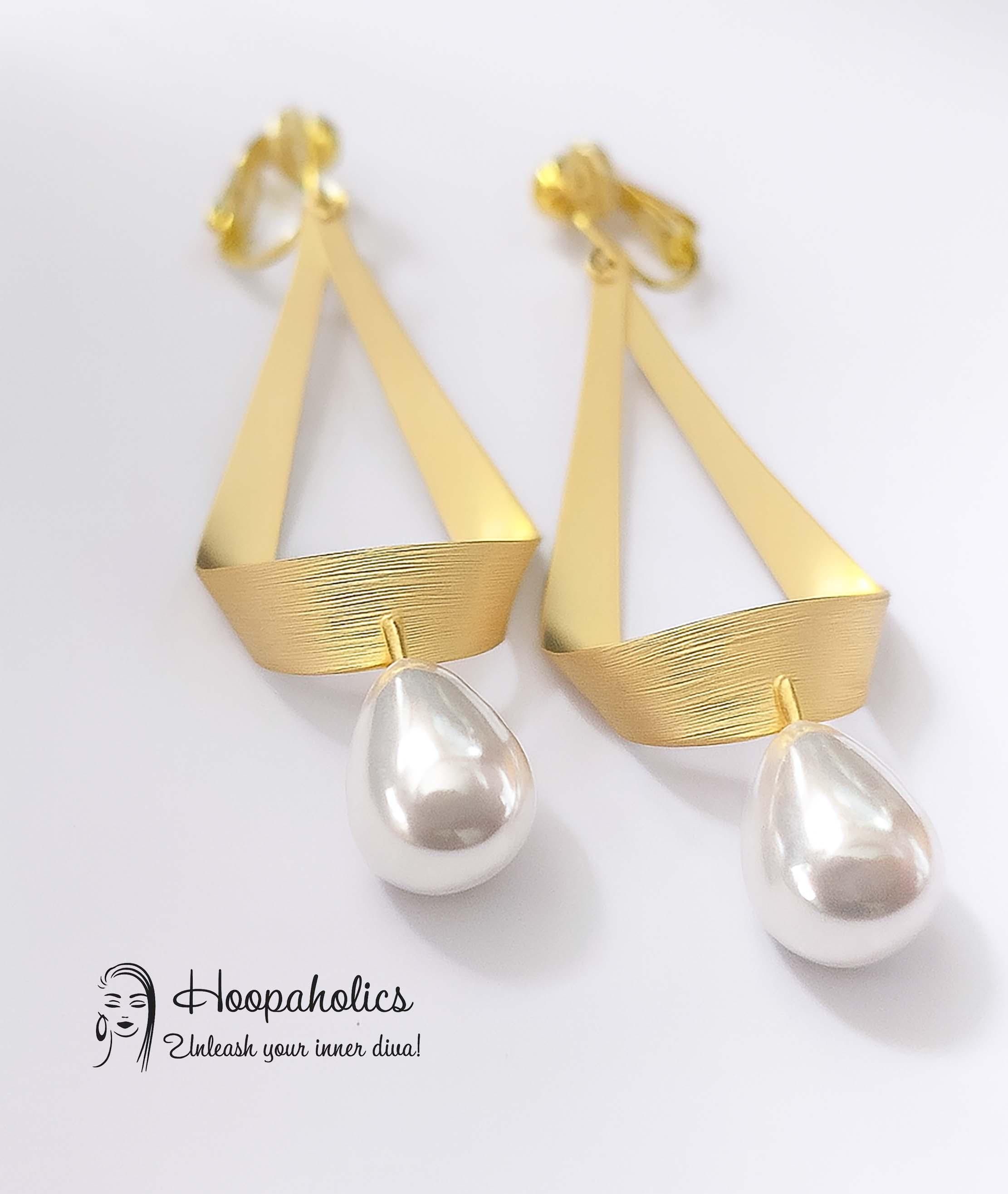 Add a touch of effortless elegance with these matte gold clip-on earrings, designed for those who love style without the need for piercings. The sleek geometric frame features a softly brushed matte gold finish, perfectly paired with a lustrous white teardrop faux pearl for a timeless, feminine look.