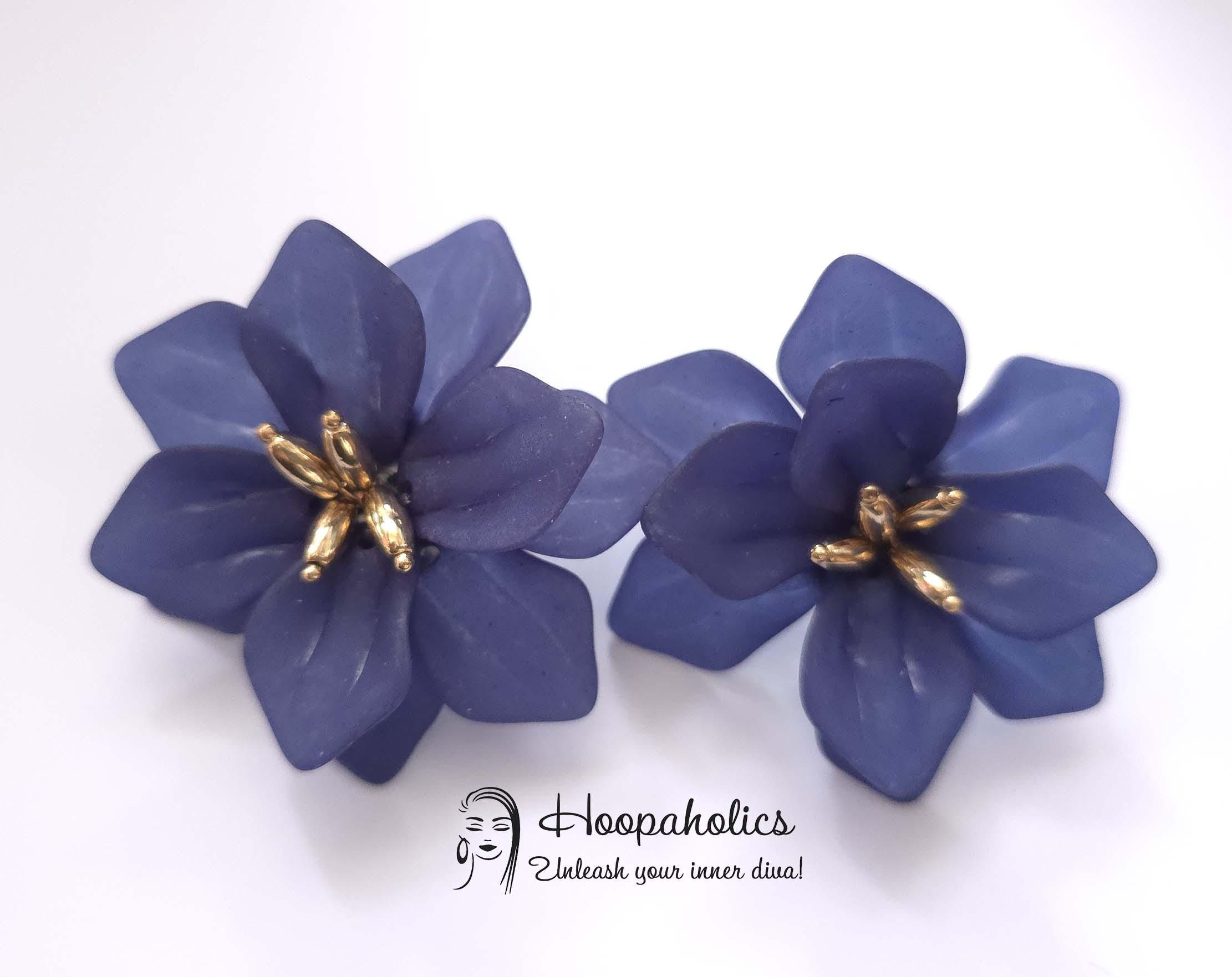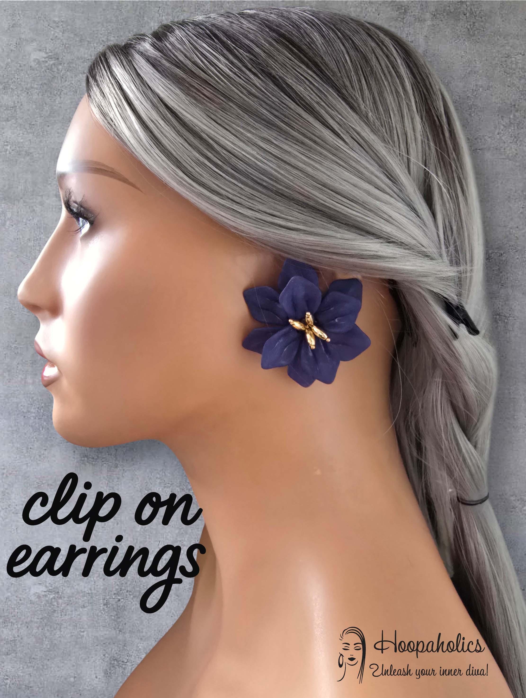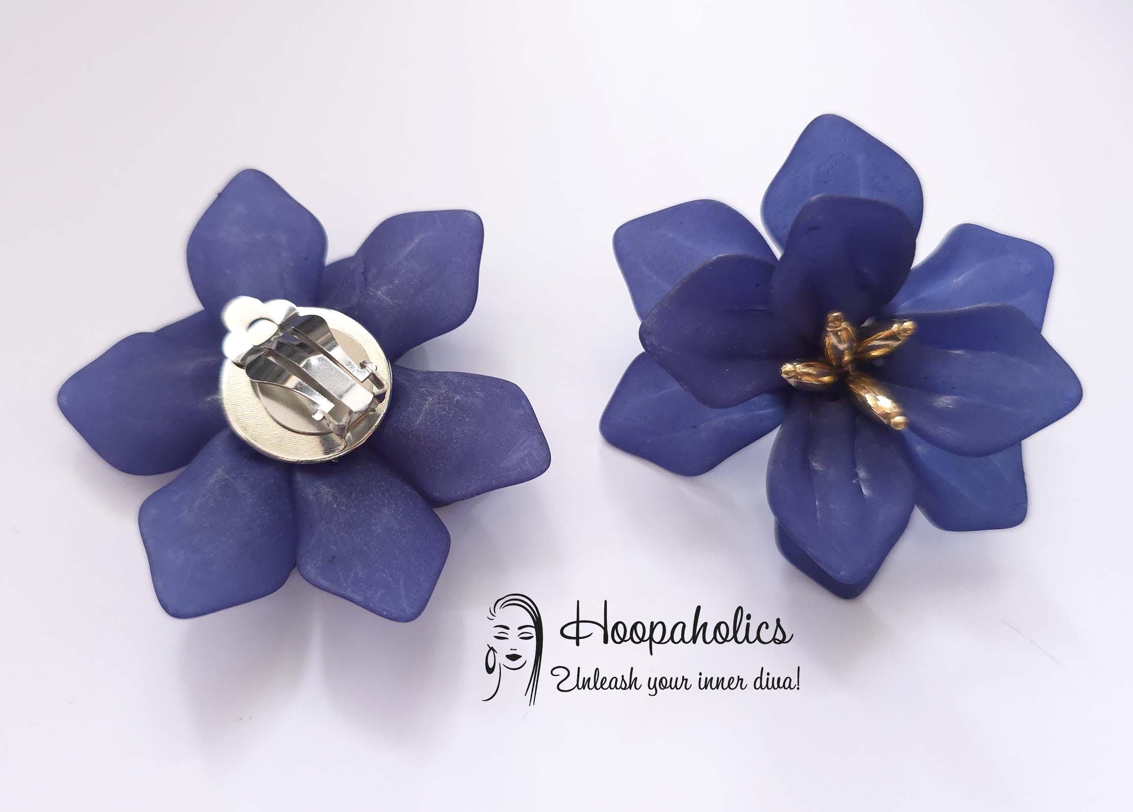 Add a vibrant pop of colour with these bold blue color flower clip-on earrings! Designed with soft acrylic petal layers and a touch of gold at the centre, these eye-catching earrings are perfect for making a statement without the need for pierced ears. Lightweight and comfortable, they bring a fresh, summery charm to any outfit.