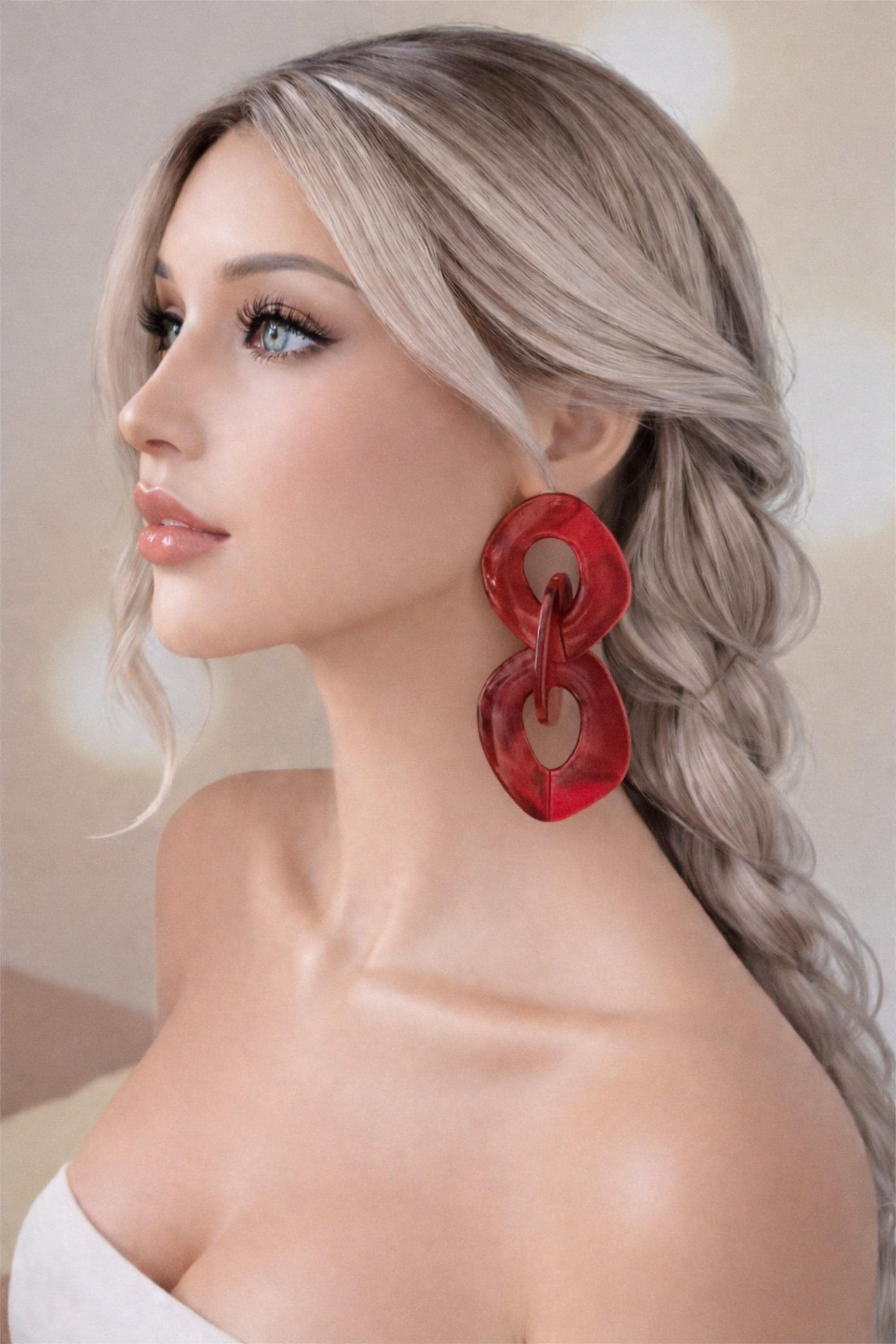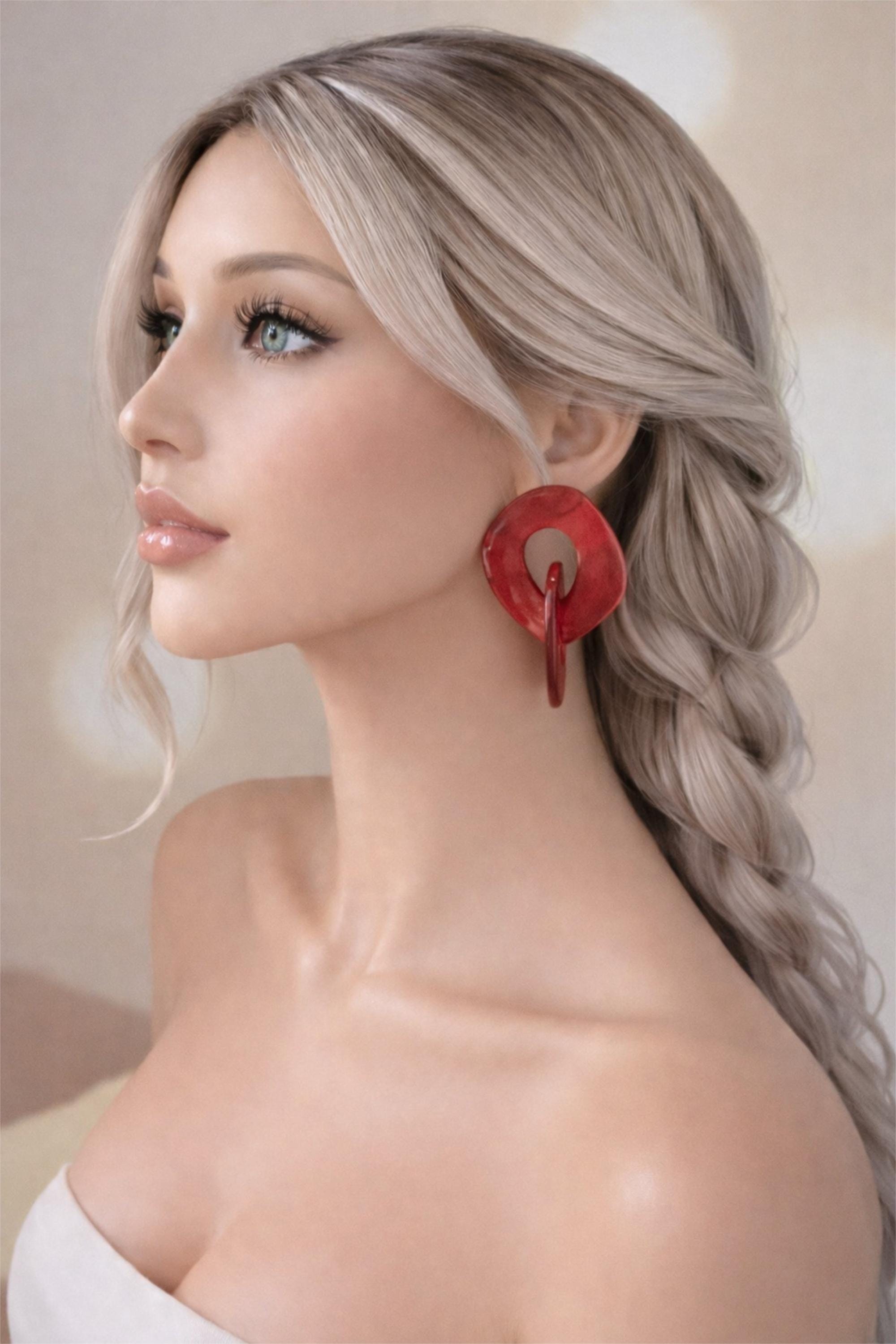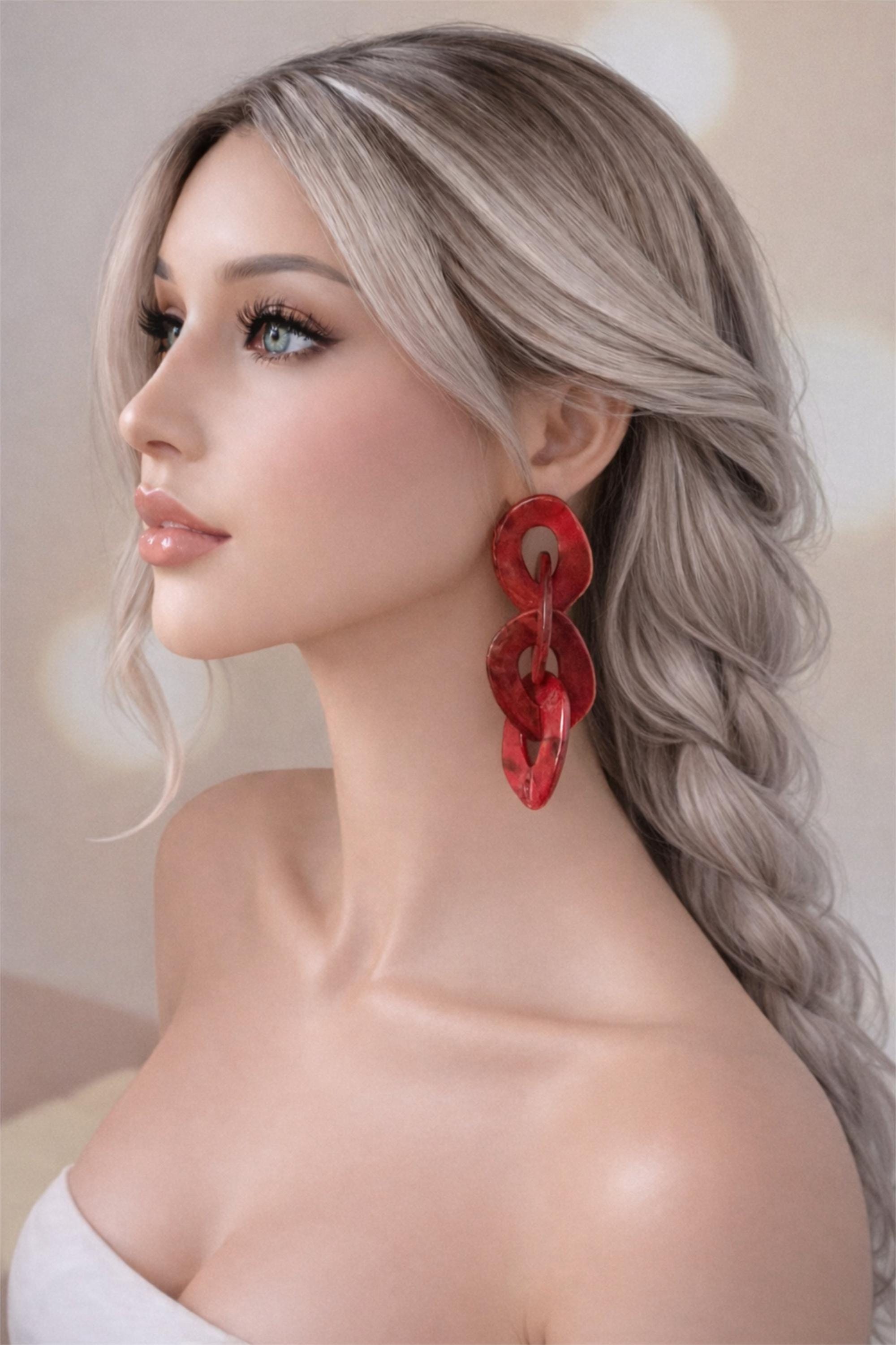 Make a bold statement with these striking red marbled acrylic chain link earrings đź’™