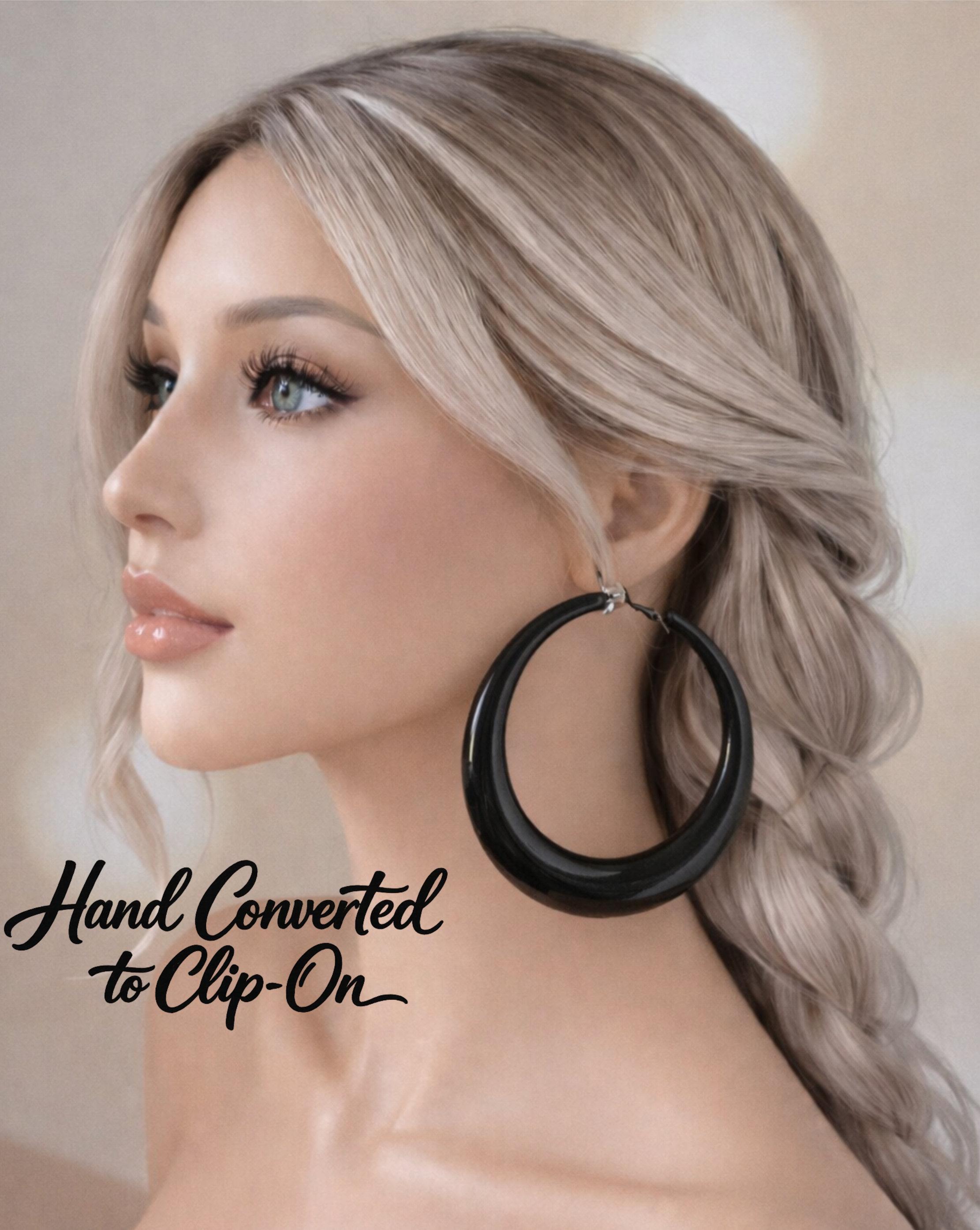 These oversized black hoops are the perfect statement piece if you love BIG, dramatic earrings. Smooth, glossy and lightweight, they instantly elevate any outfit and are ideal for everyday glam or a night out.