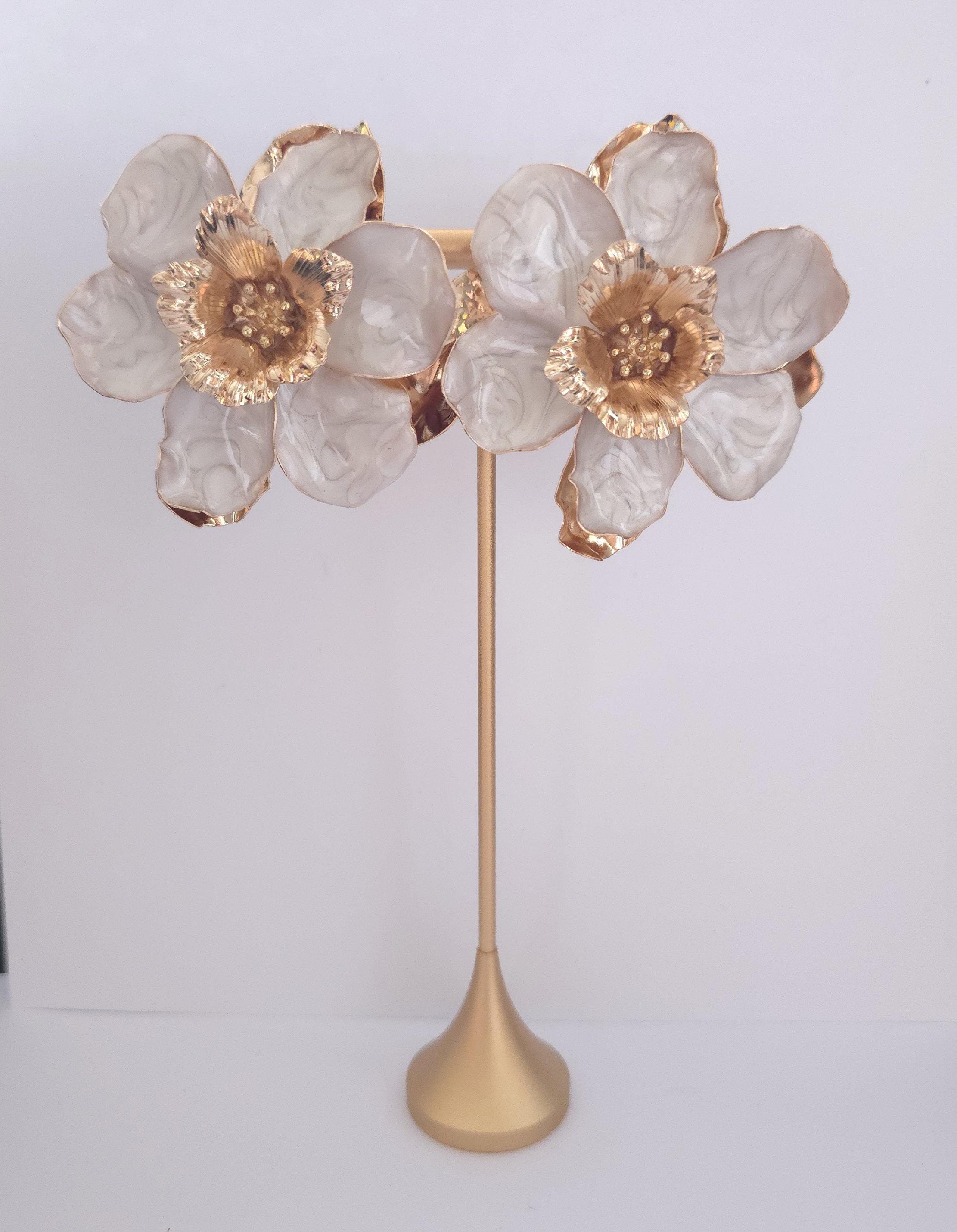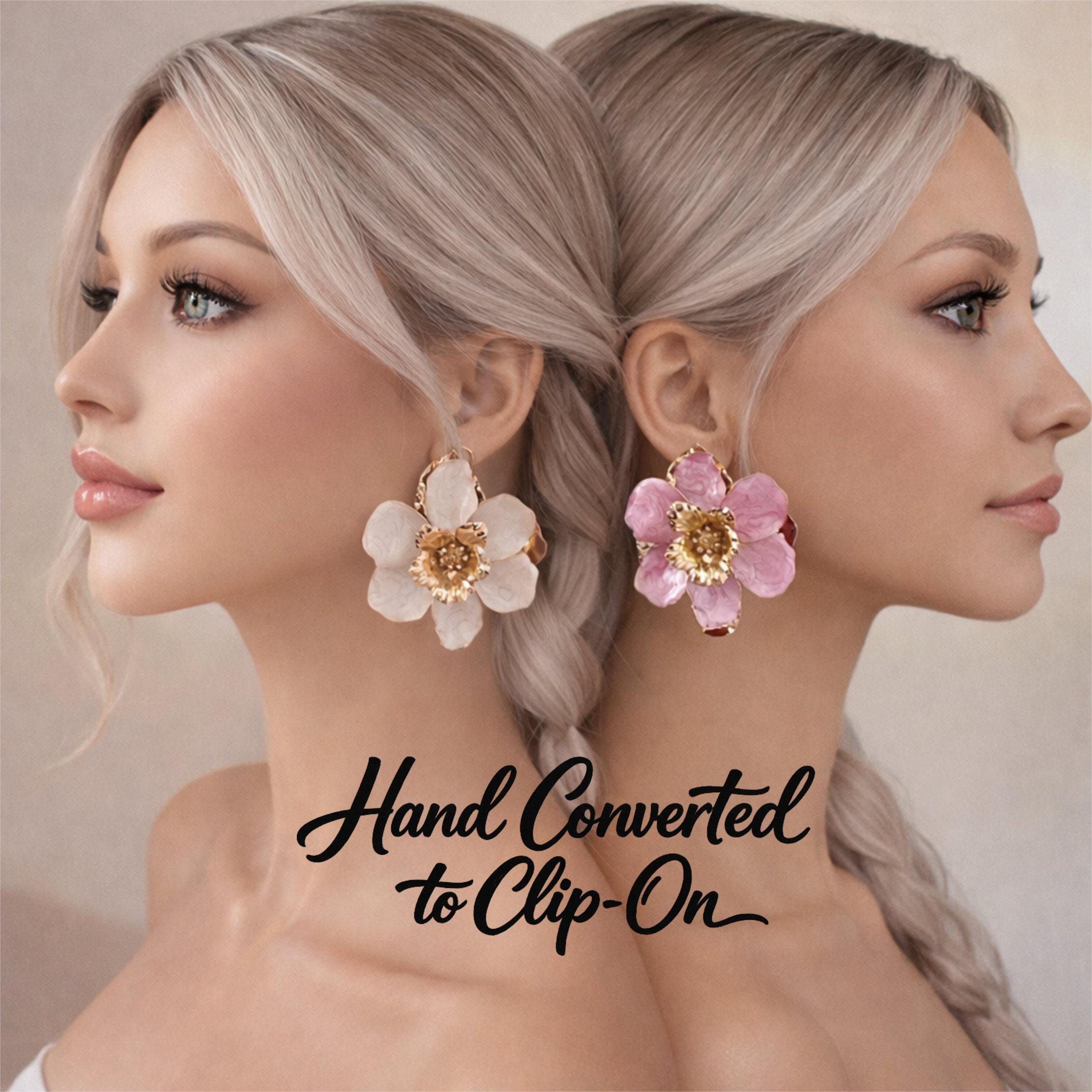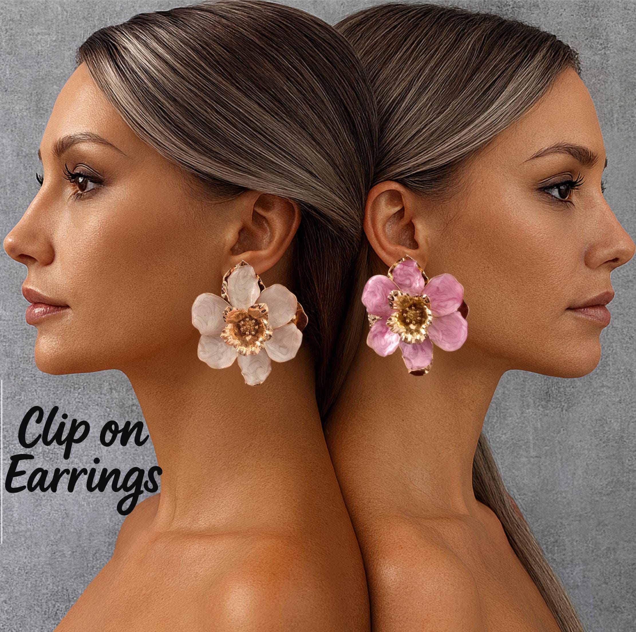 Beautiful oversized flower clip-on earrings designed for bold, elegant style.