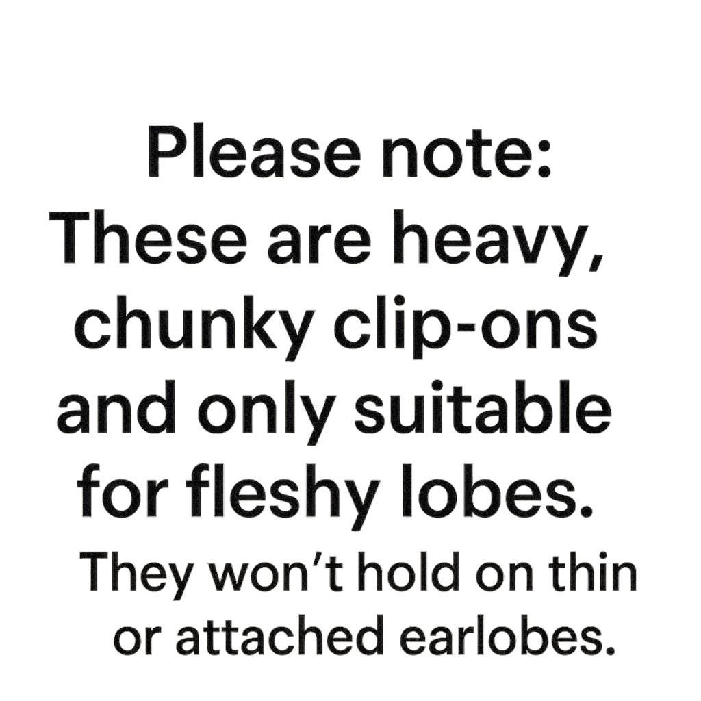 Please note: These are heavy, chunky clip-ons and only suitable for fleshy lobes. They won’t hold on thin or attached earlobes.