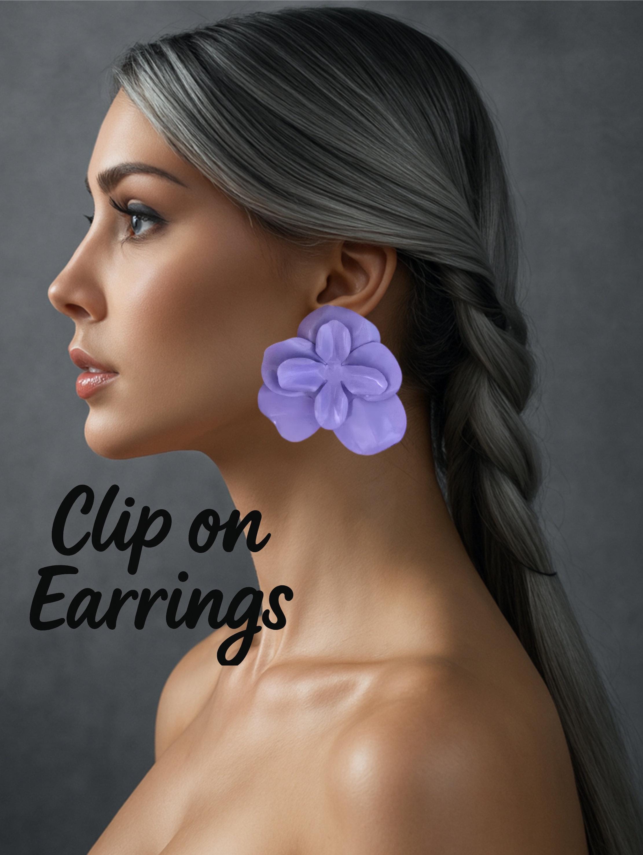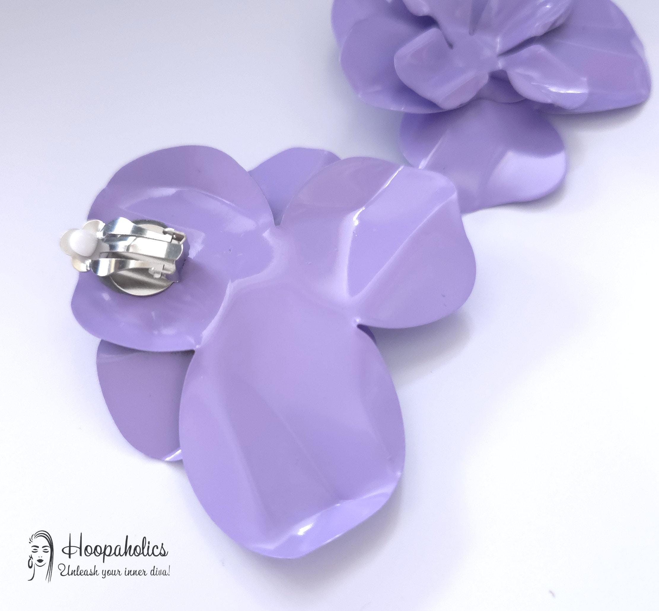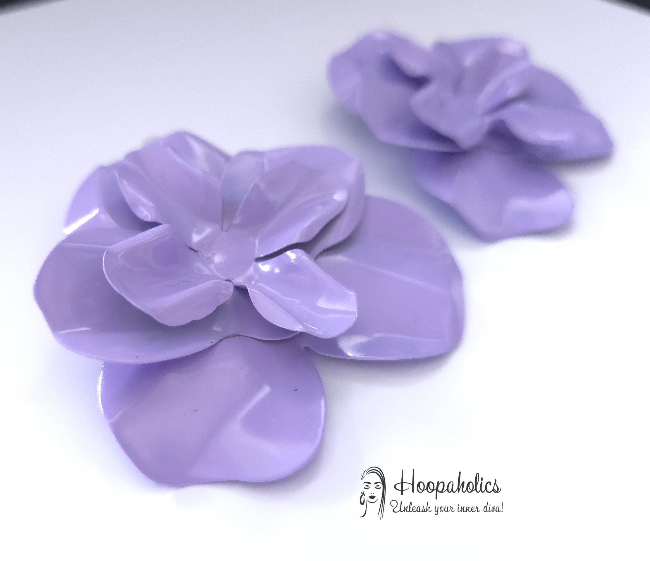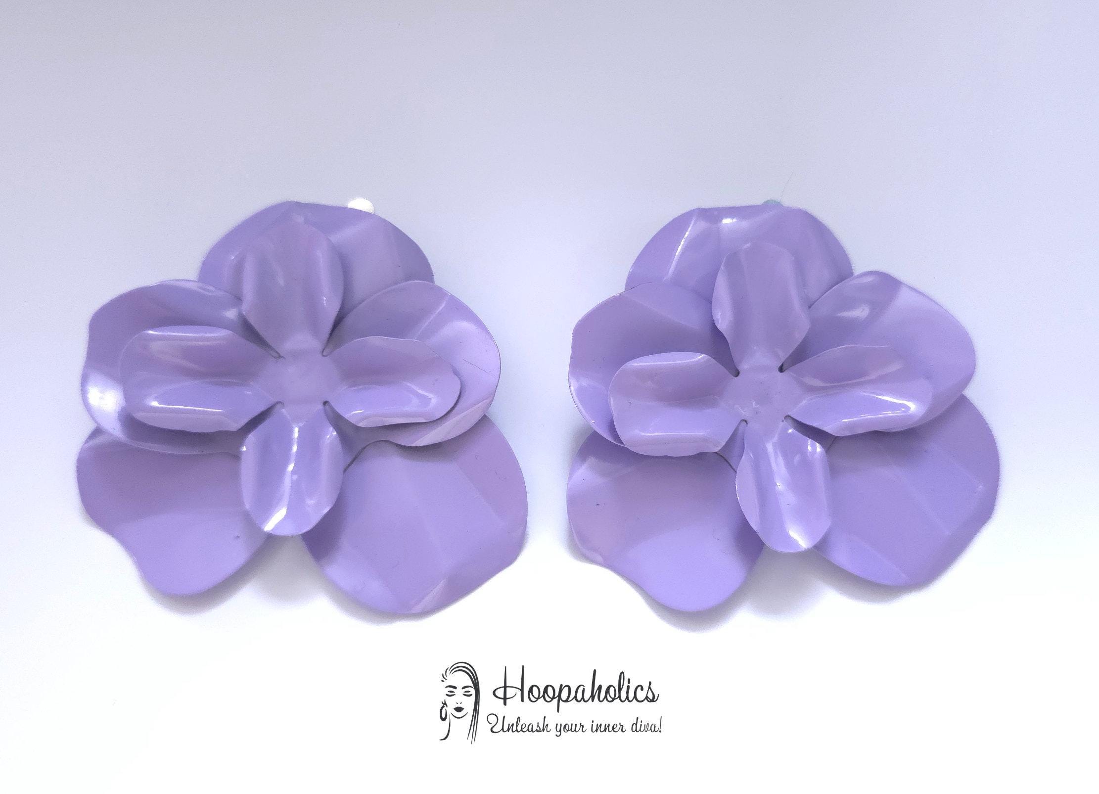 Turn heads with these bold and beautiful lilac flower statement earrings — the perfect pop of colour for any outfit! These oversized floral studs feature glossy, sculpted petals that catch the light beautifully, creating a striking, dimensional look.