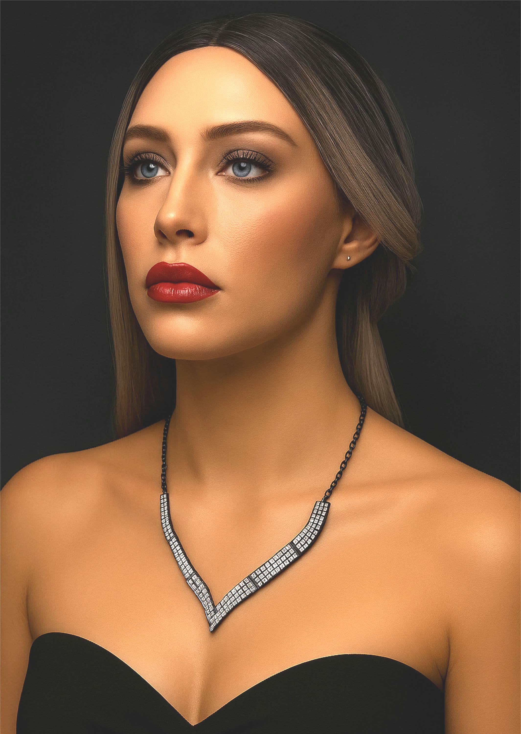 Add instant glamour to any outfit with this stunning V-shaped rhinestone necklace.