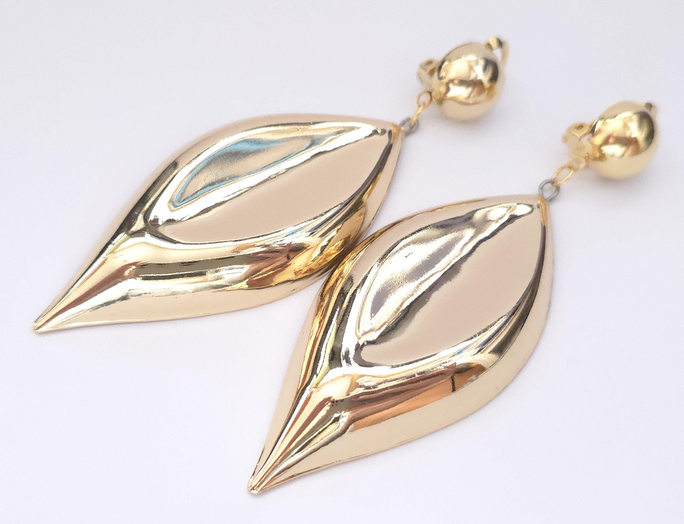 The sculptural teardrop shape catches the light beautifully, making them perfect for both daytime wear and evening occasions. Despite their bold look, they are comfortable to wear and sit gracefully on the ear, offering maximum impact without heaviness.