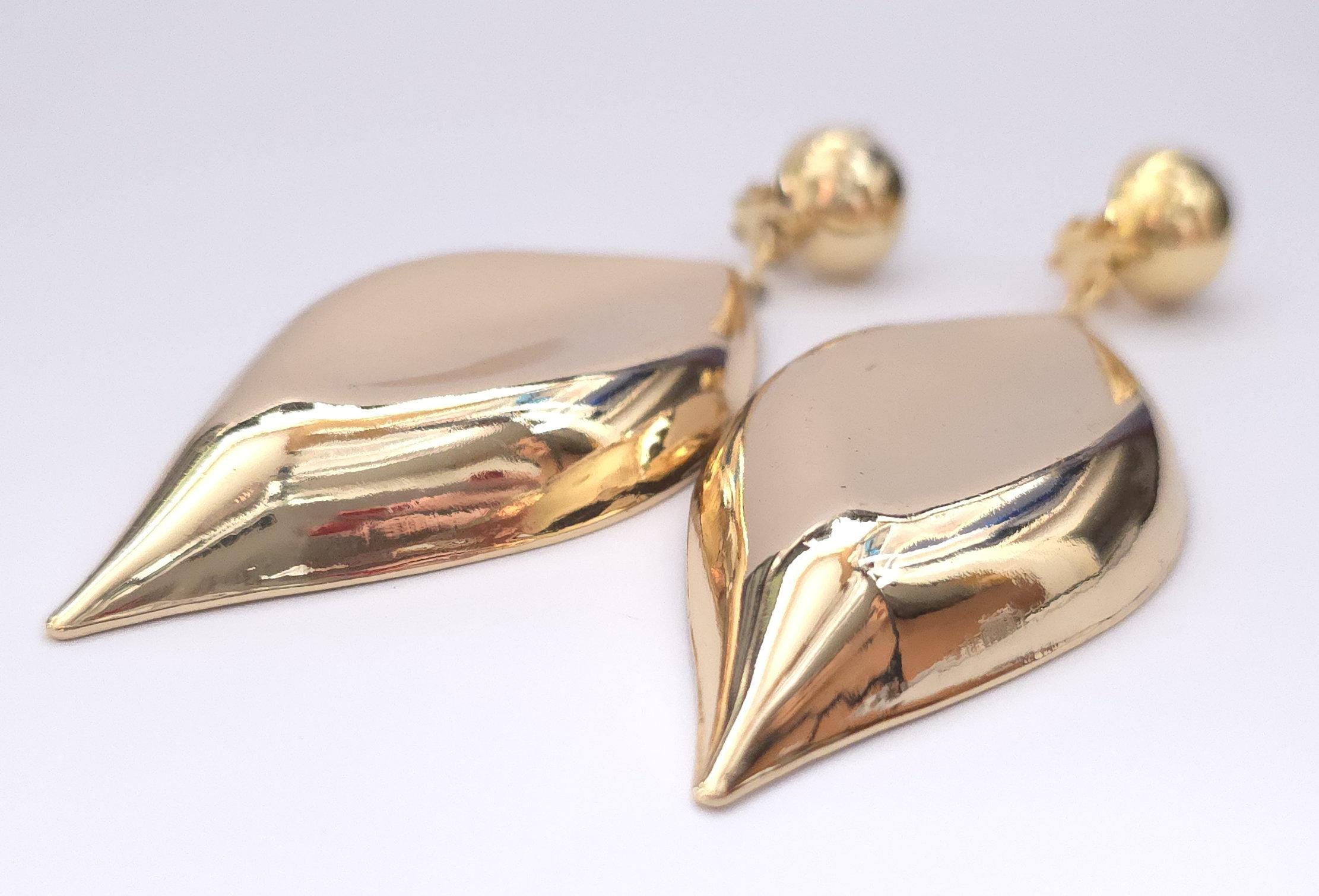 Make a statement with these beautifully bold gold teardrop drop earrings. Featuring a smooth, high-shine polished finish, these elegant yet eye-catching earrings are designed to add instant glamour to any outfit.