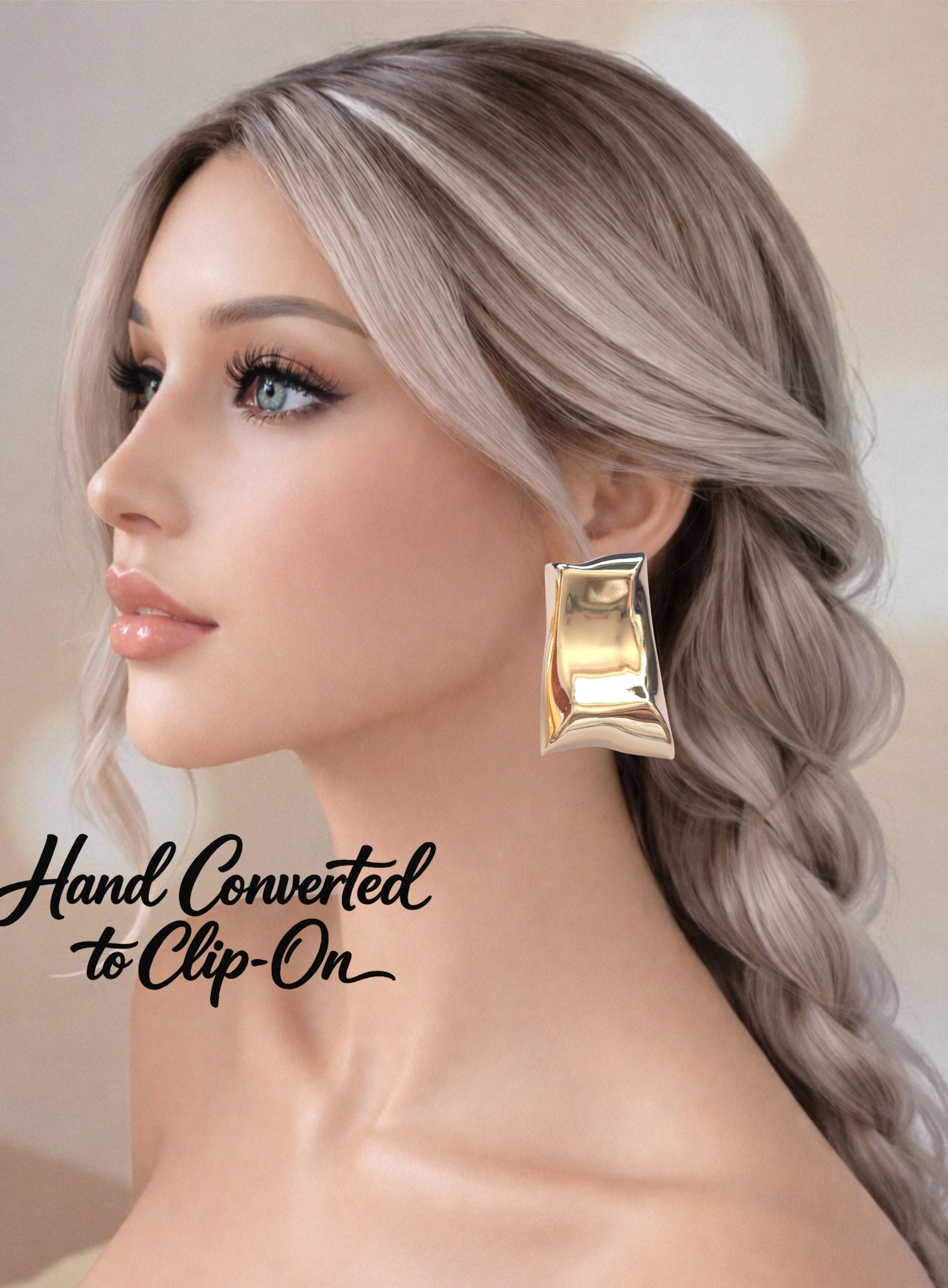 These earrings are converted and hand finished by me (HoopaholicsUK) using specialist stainless-steel clip-on findings and industrial-strength adhesive. Each pair is individually altered, assembled, and quality-checked for comfort and durability. As the conversion is done on curved or uneven surfaces, a built-up adhesive seam is required for strength which can look a little untidy but this sits behind the lobe and is not visible when worn, similar to an inside seam of a garment.