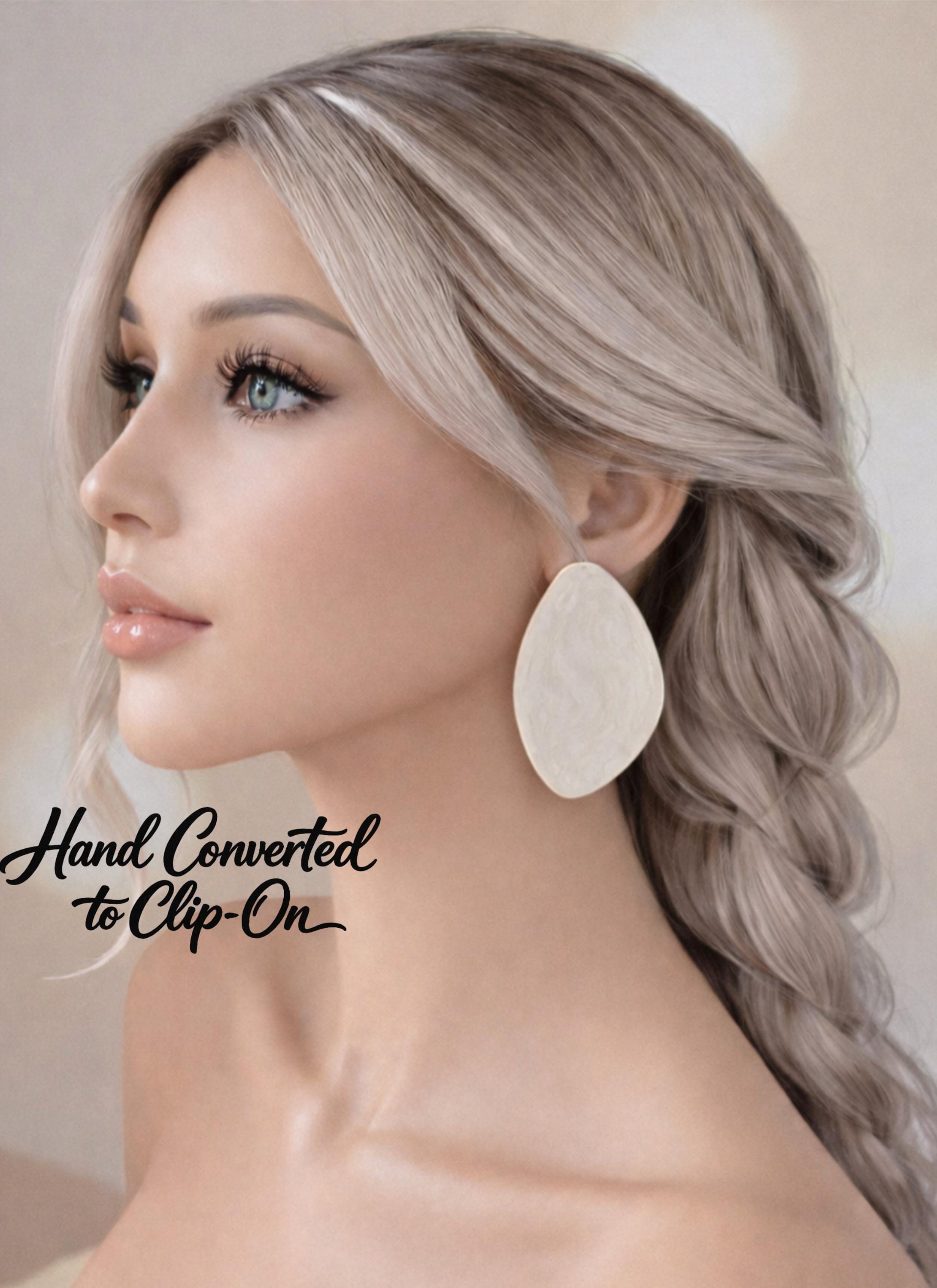 These earrings are converted and hand finished by me (HoopaholicsUK) using specialist stainless-steel clip-on findings and industrial-strength adhesive. Each pair is individually altered, assembled, and quality-checked for comfort and durability. As the conversion is done on curved or uneven surfaces, a built-up adhesive seam is required for strength which can look a little untidy but this sits behind the lobe and is not visible when worn, similar to an inside seam of a garment.
