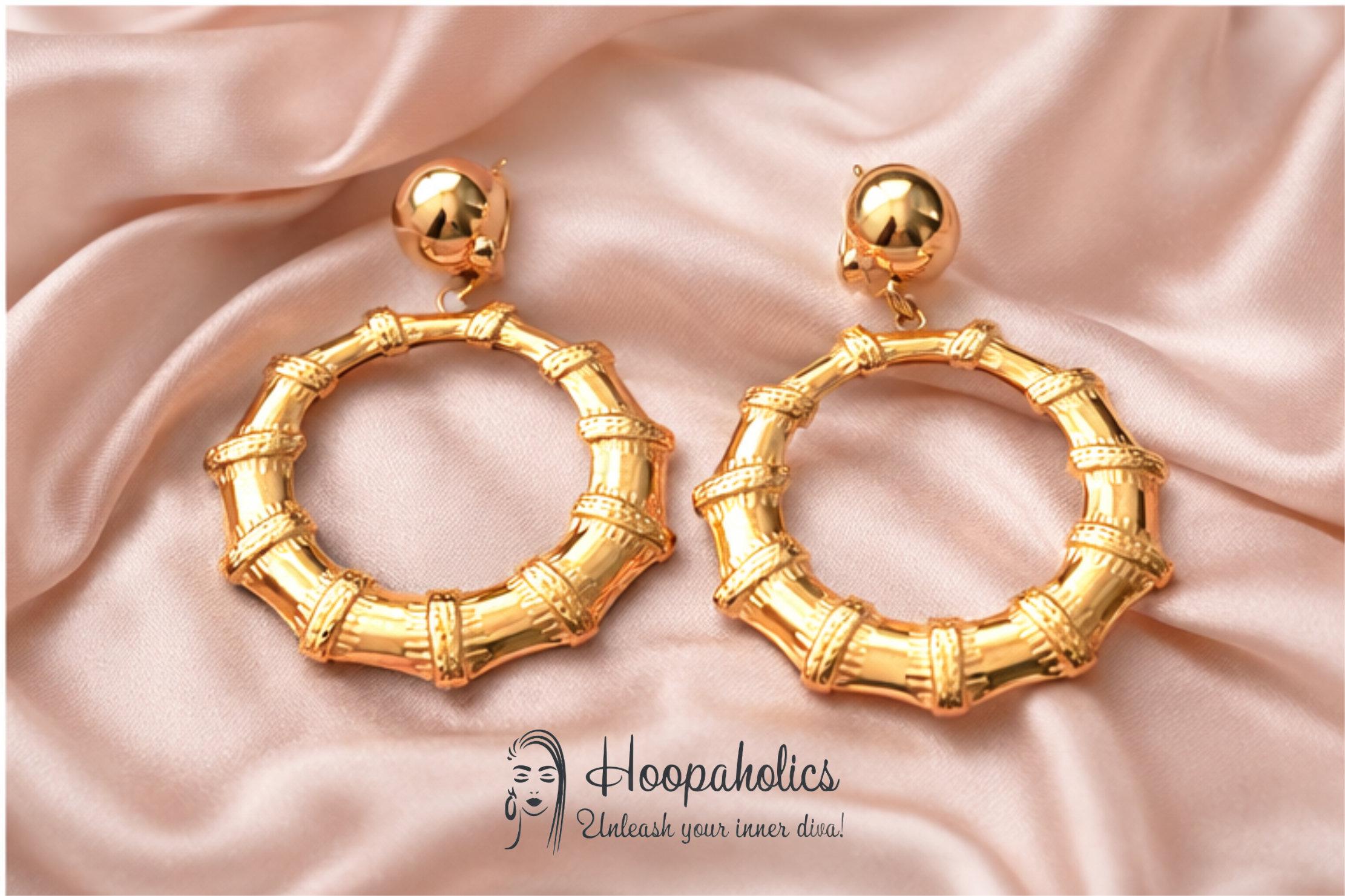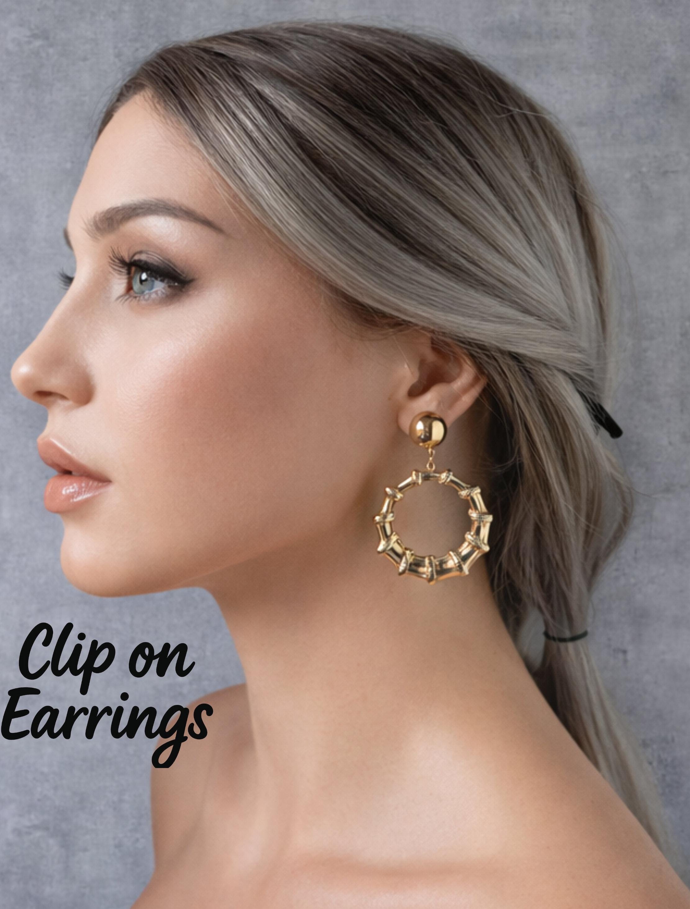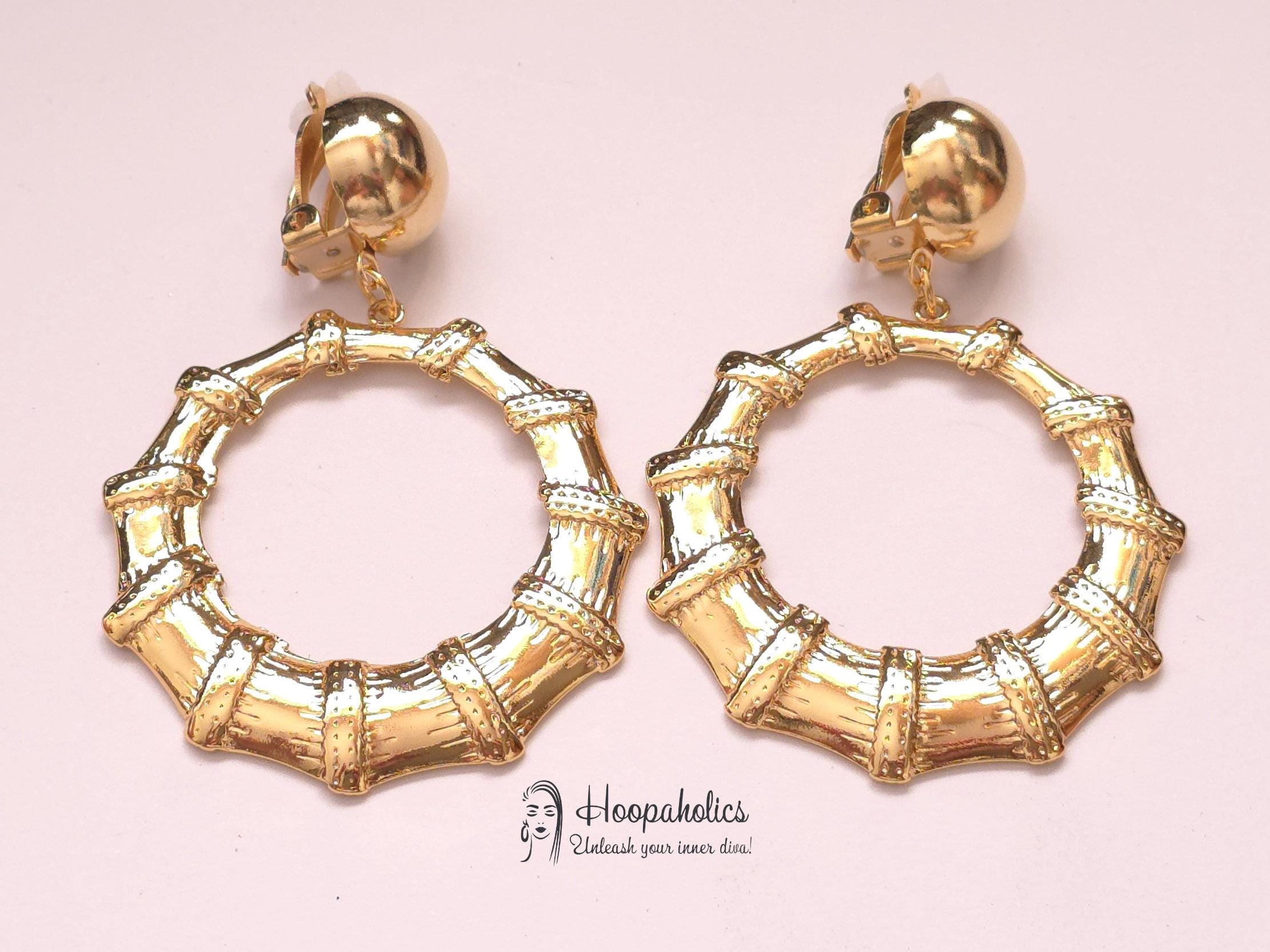 These gold bamboo-style hoop clip on earrings are bold, eye-catching, and perfect for anyone who loves standout jewellery with comfort in mind.