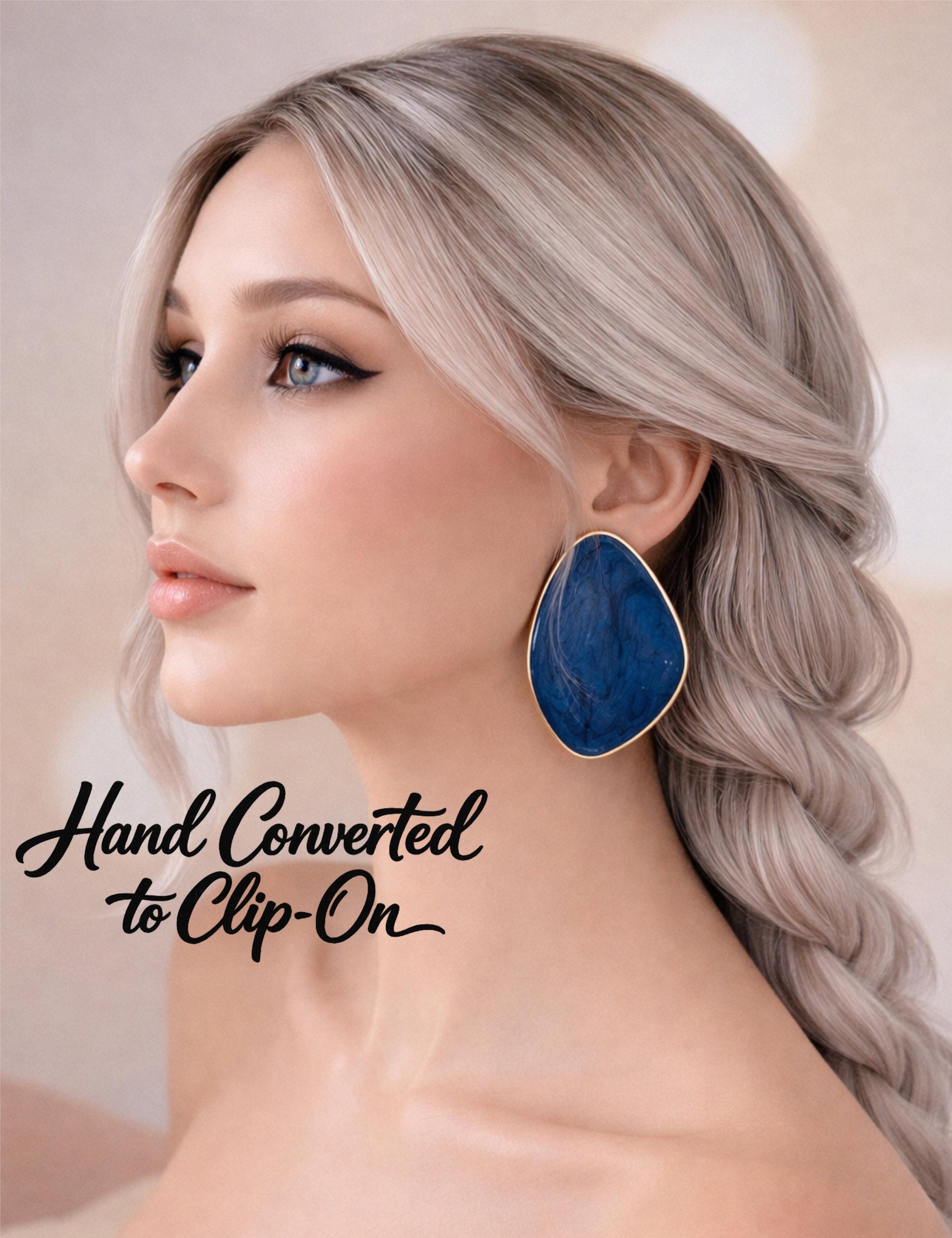These earrings are converted and hand finished by me (HoopaholicsUK) using specialist stainless-steel clip-on findings and industrial-strength adhesive. Each pair is individually altered, assembled, and quality-checked for comfort and durability. As the conversion is done on curved or uneven surfaces, a built-up adhesive seam is required for strength which can look a little untidy but this sits behind the lobe and is not visible when worn, similar to an inside seam of a garment.
