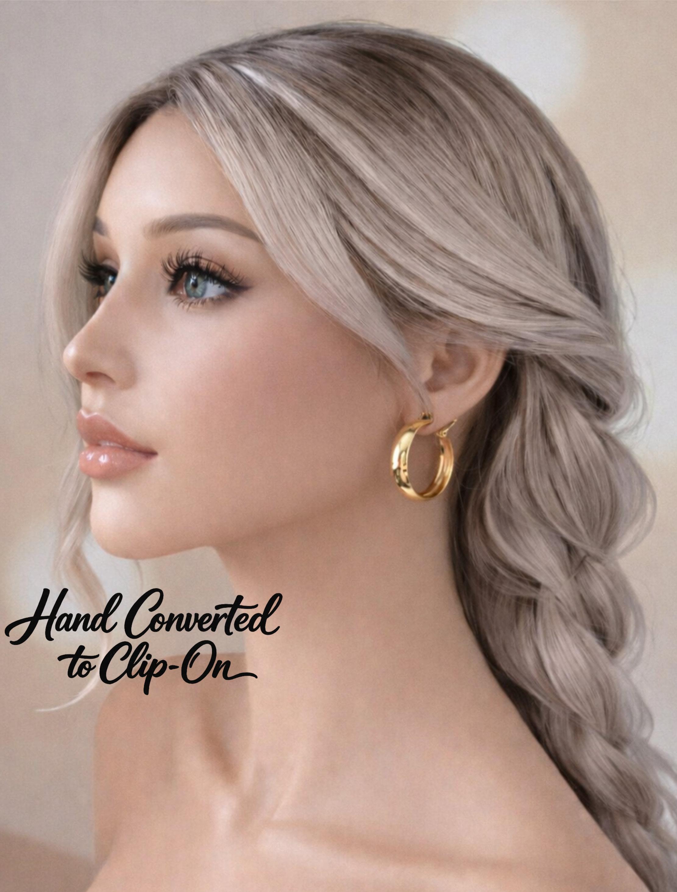 Each pair is individually hand-converted to clip-on from a pierced design by me.