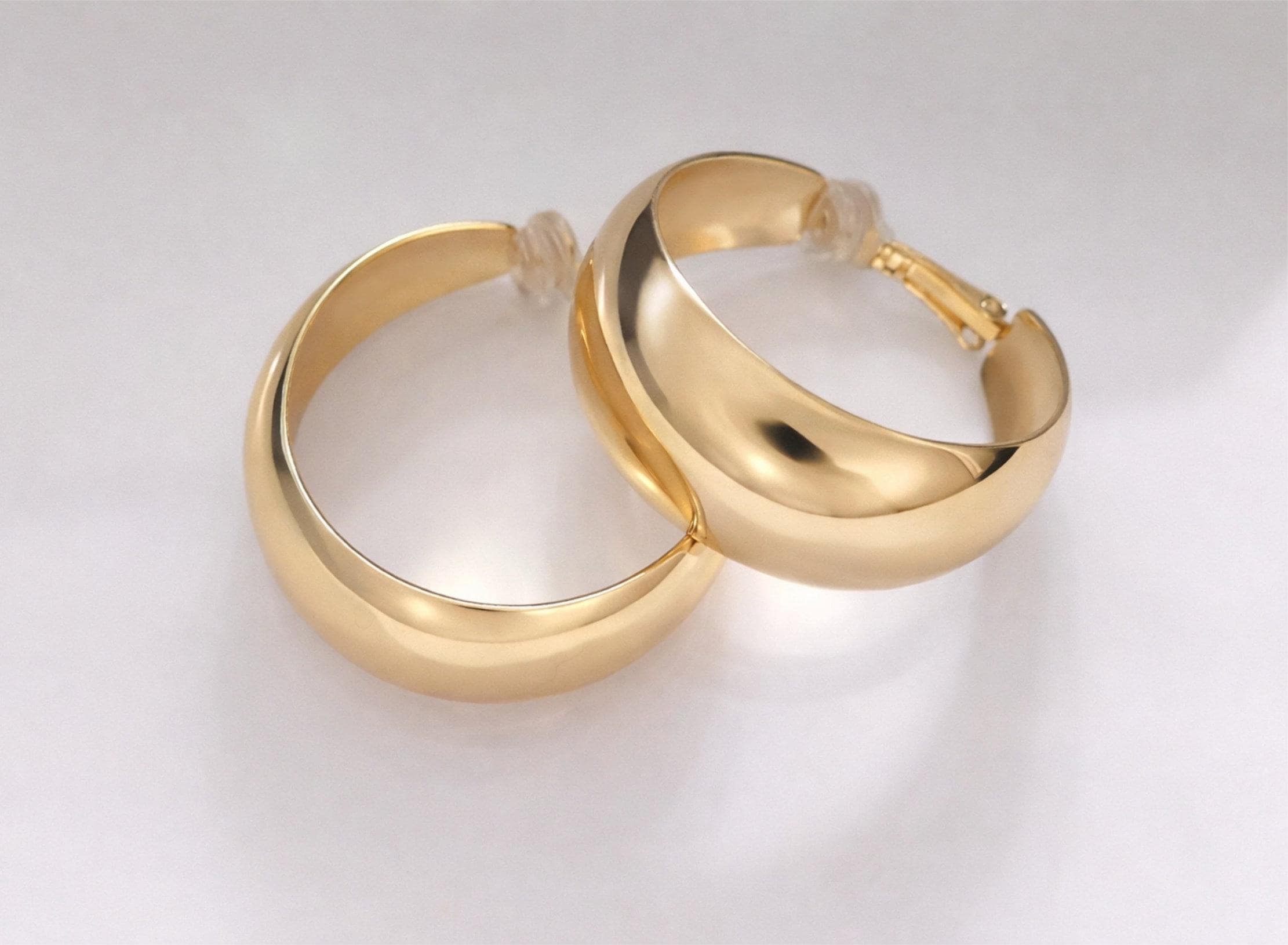 Make a statement with these classic wide gold tone hoop earrings – bold, timeless, and designed to elevate any look from everyday glam to evening wear ✨