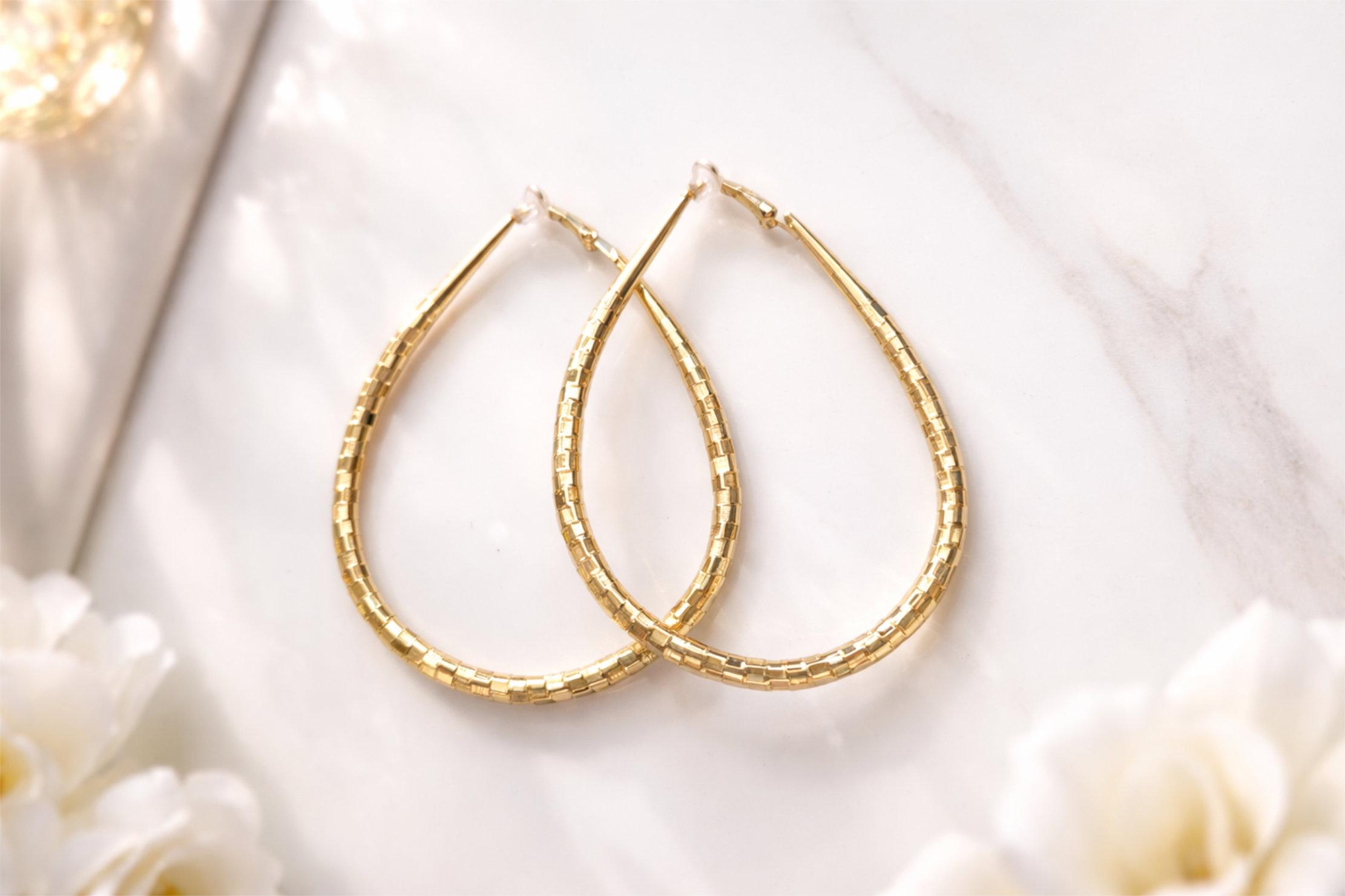 Their elegant teardrop shape offers a modern twist on classic hoops, making them perfect for both everyday glam and special occasions — no piercings required.