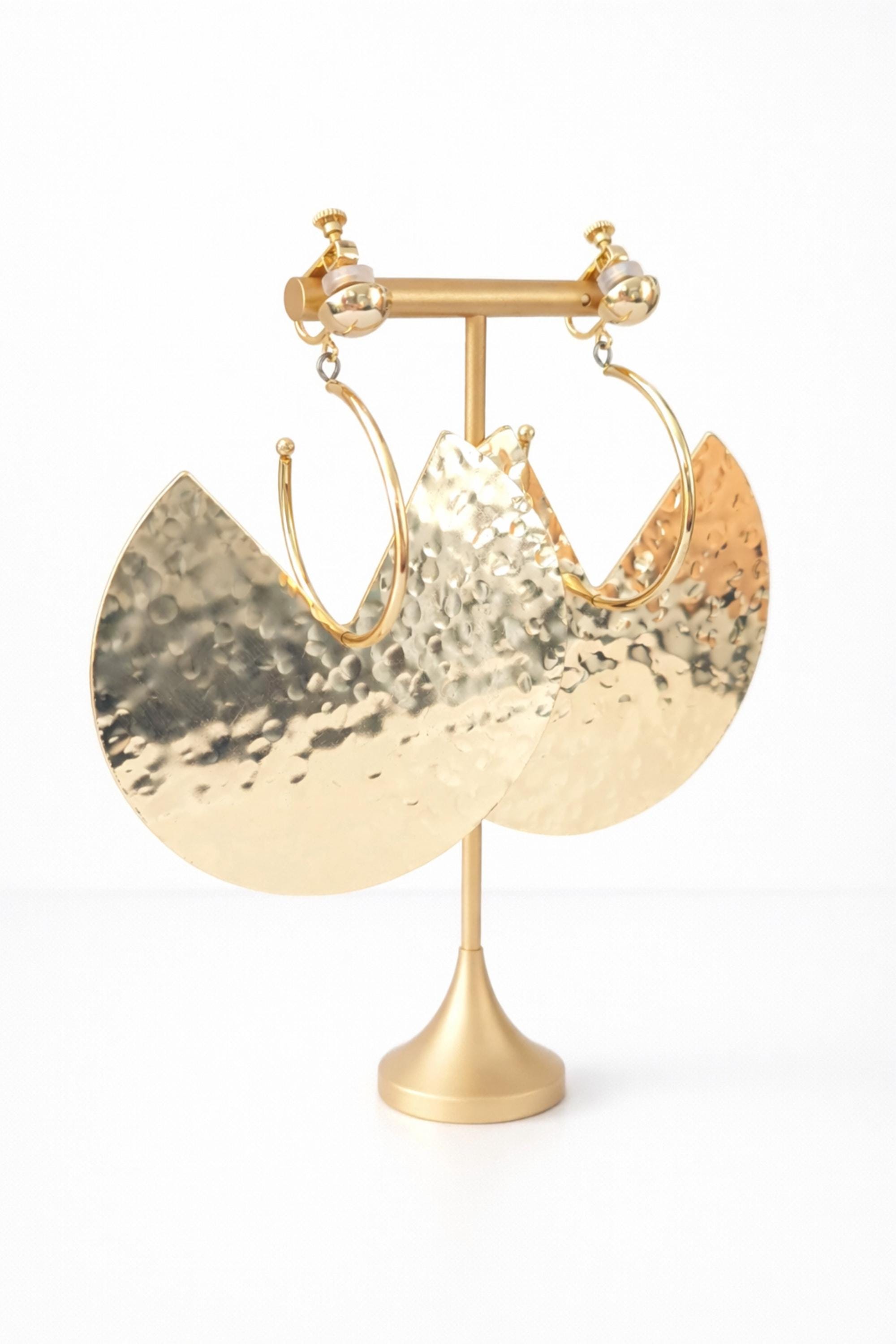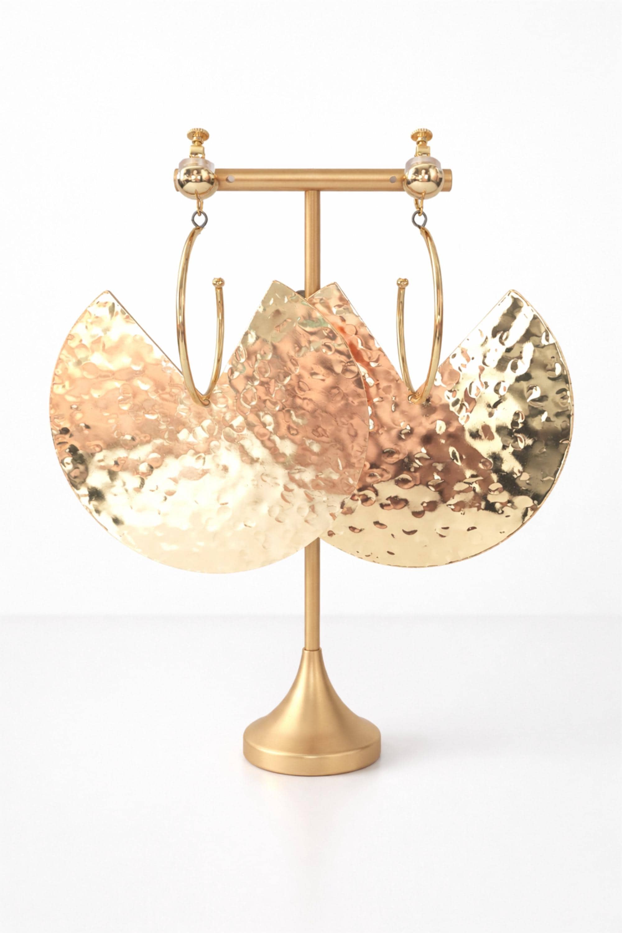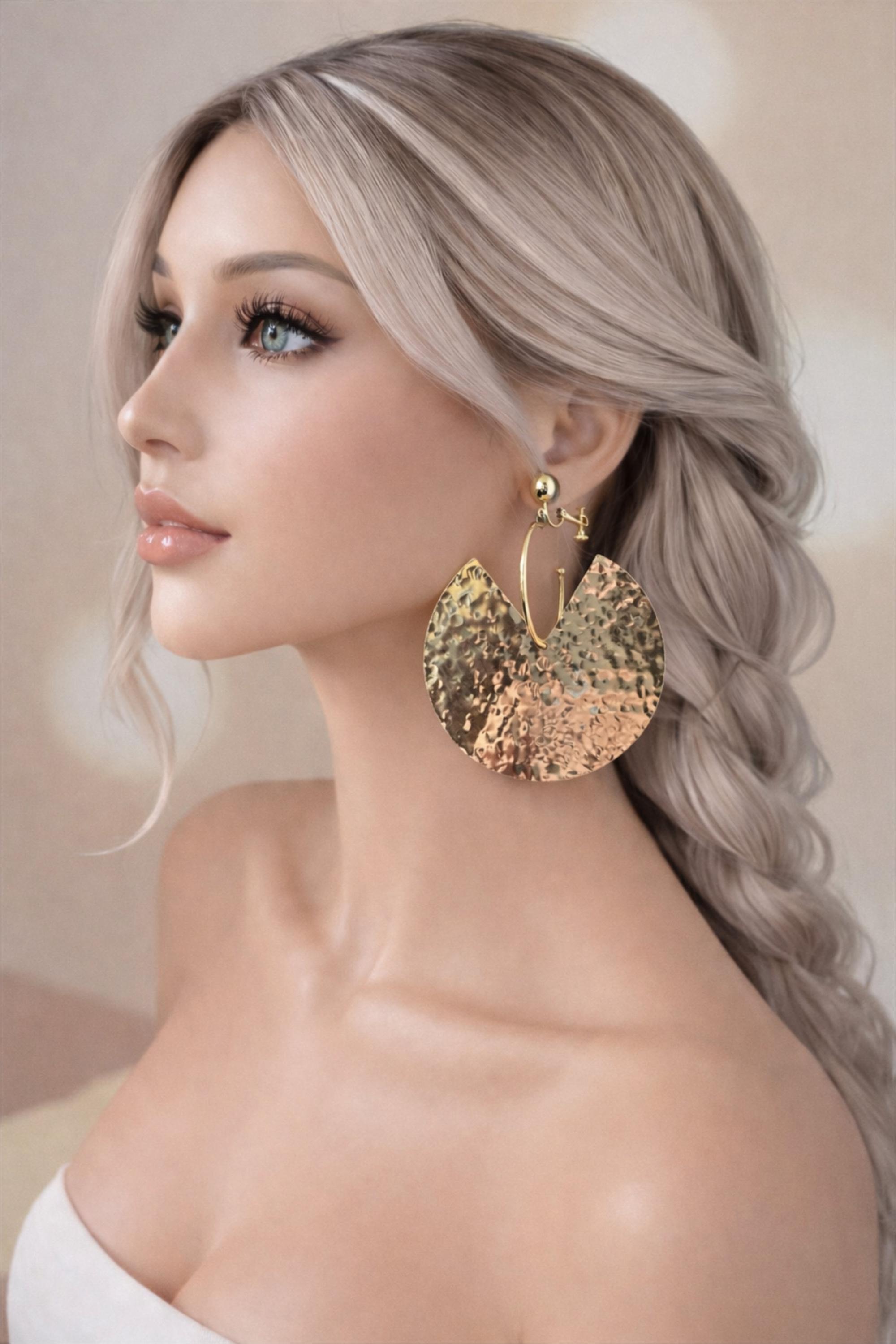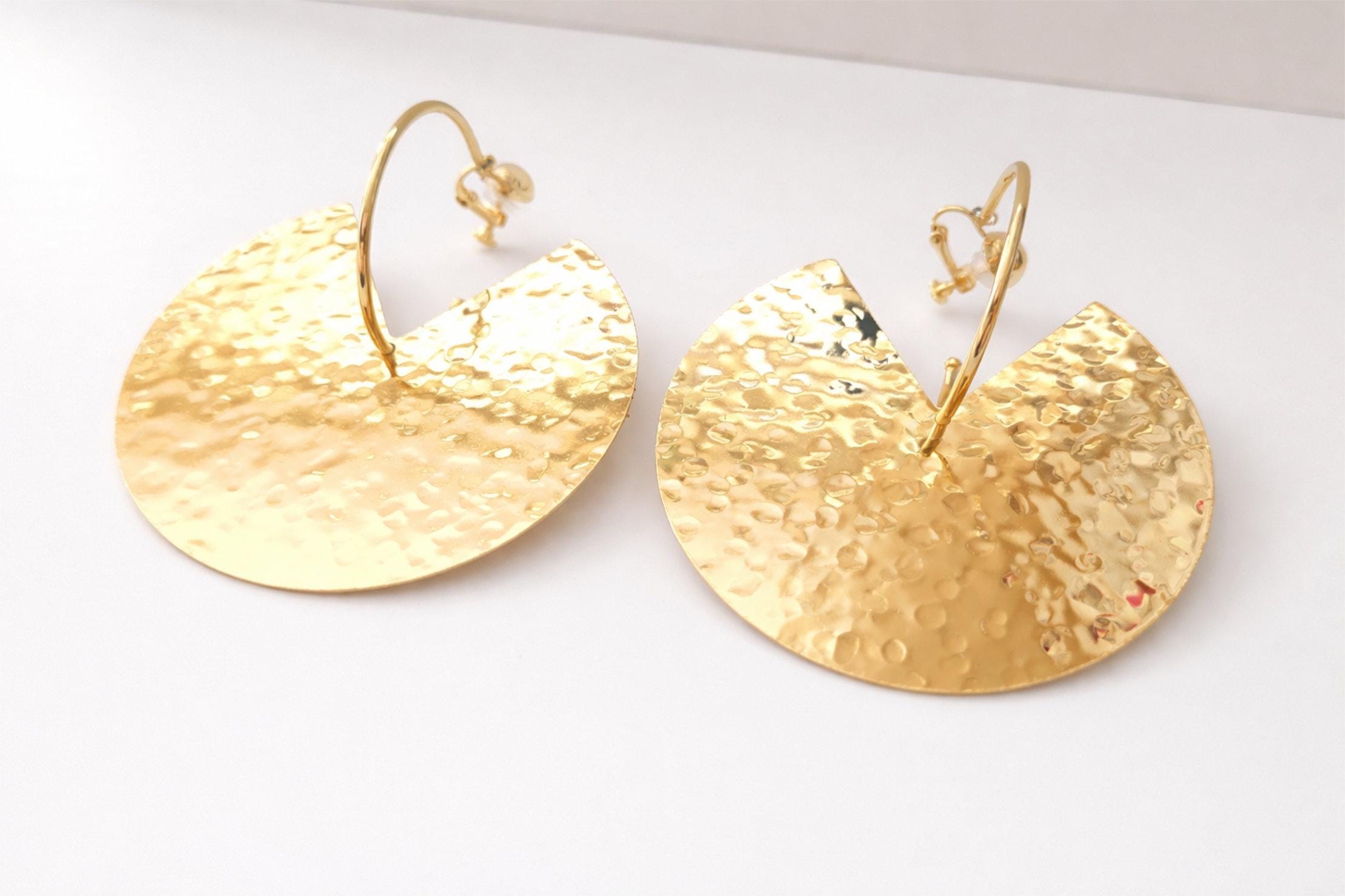 Make a bold statement with these large hammered gold crescent earrings, designed to catch the light beautifully with every movement. The textured, high-shine finish gives a luxe, modern look