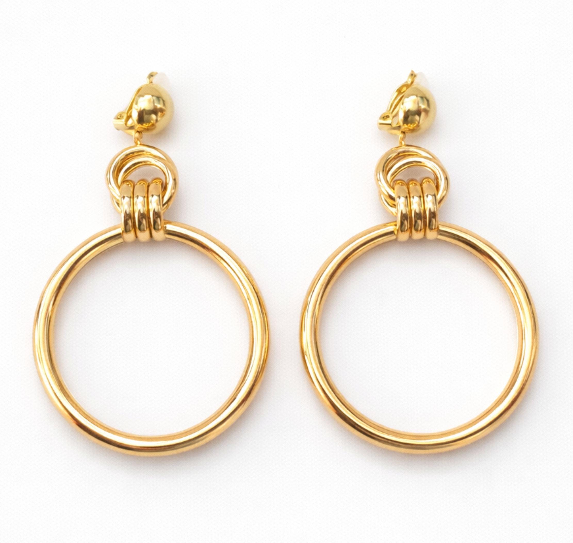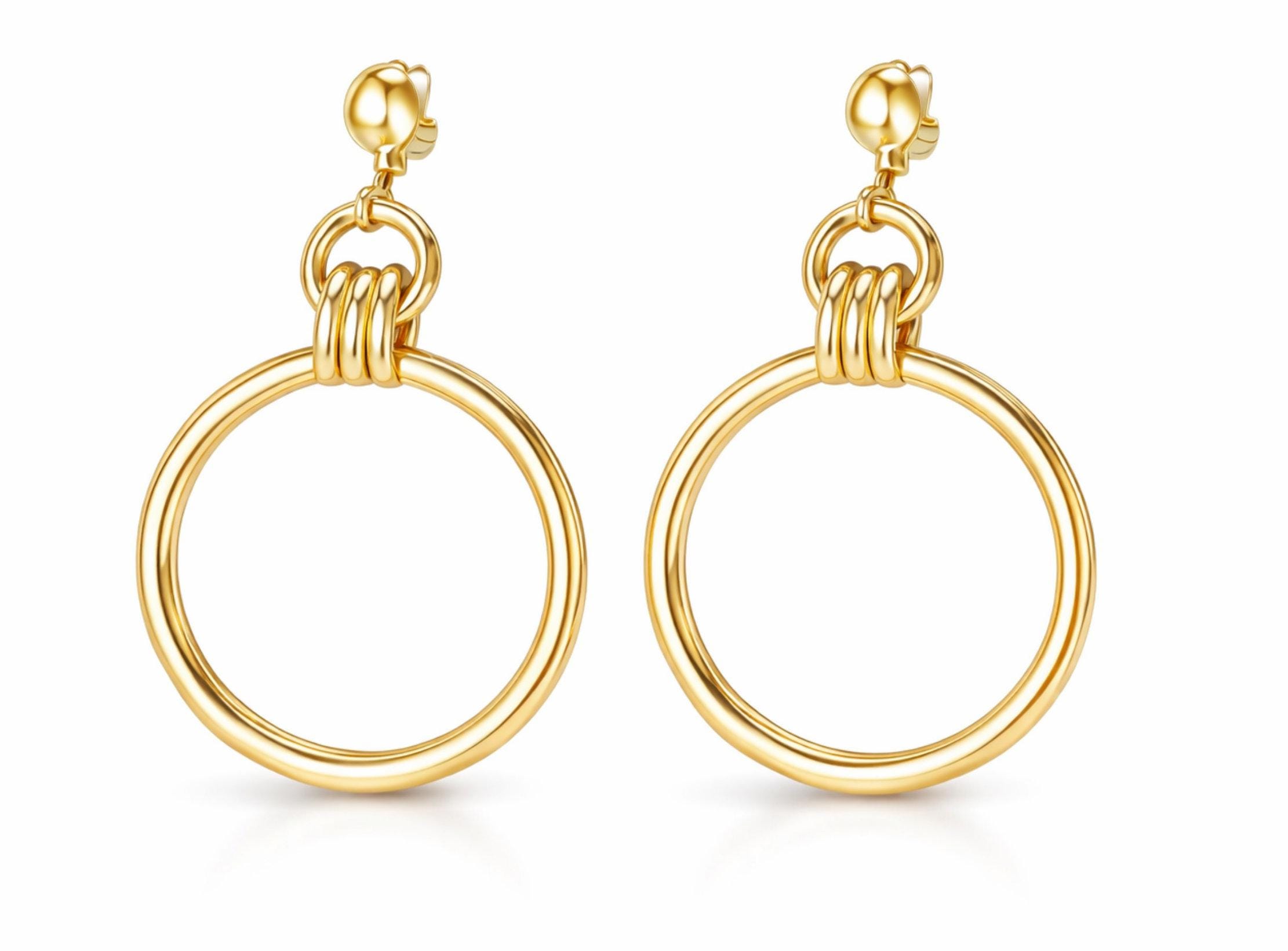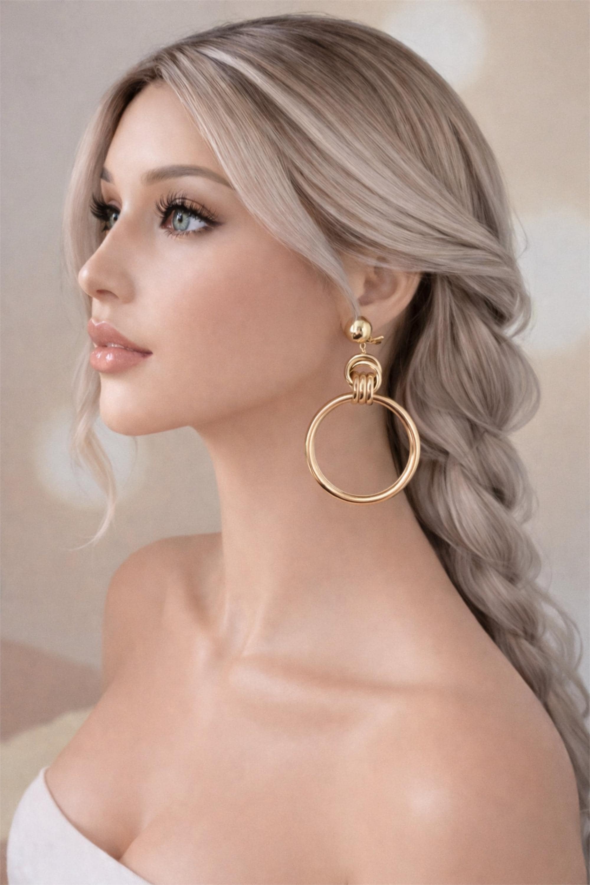 Featuring a smooth, high-shine circular hoop suspended from a detailed knot design, these earrings are perfect for adding effortless glam to any outfit. The sleek finish gives them a luxe, high-end look while remaining lightweight and comfortable for all-day wear.