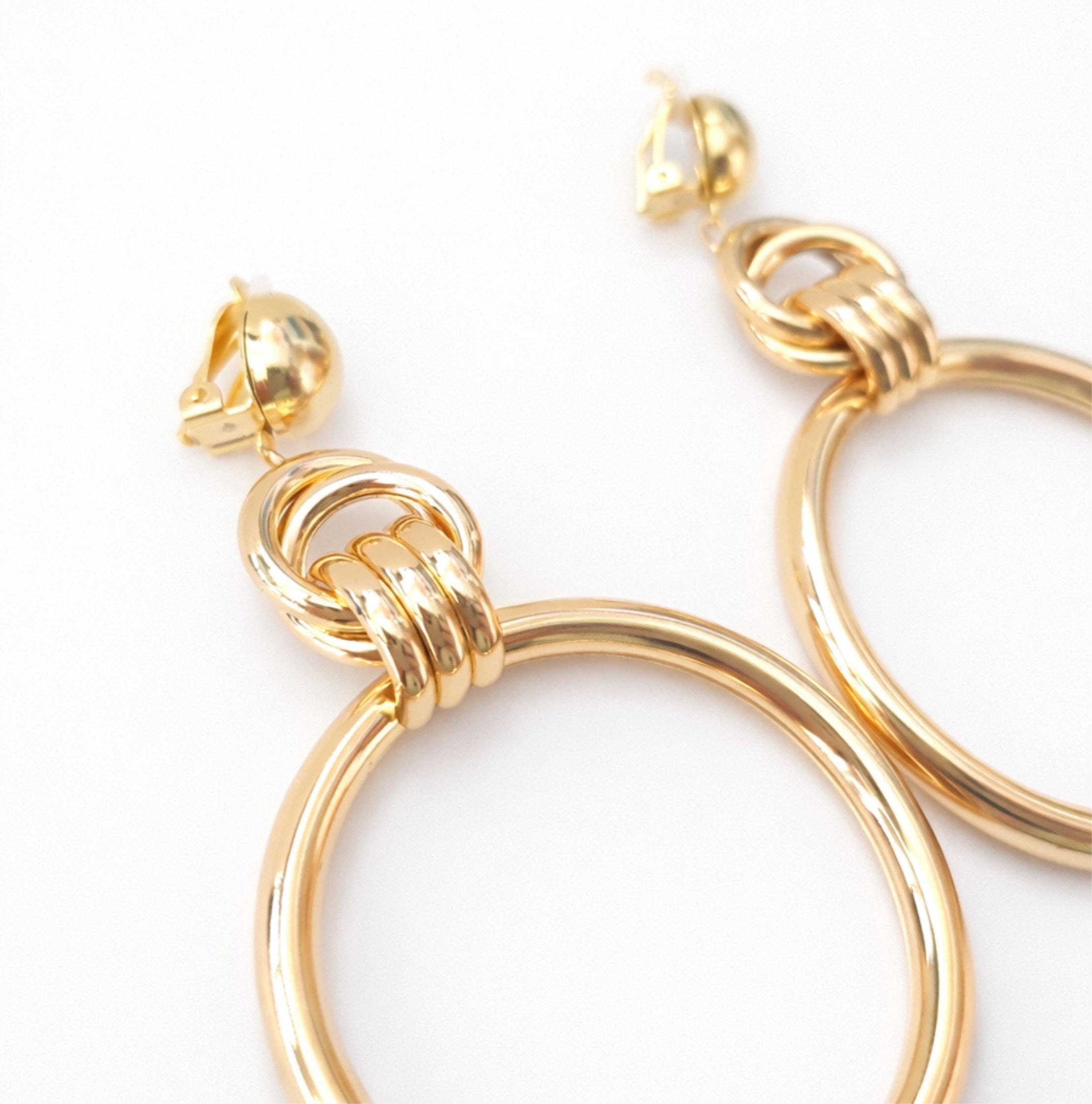 Make a statement with these bold polished gold tone knot hoop earrings.