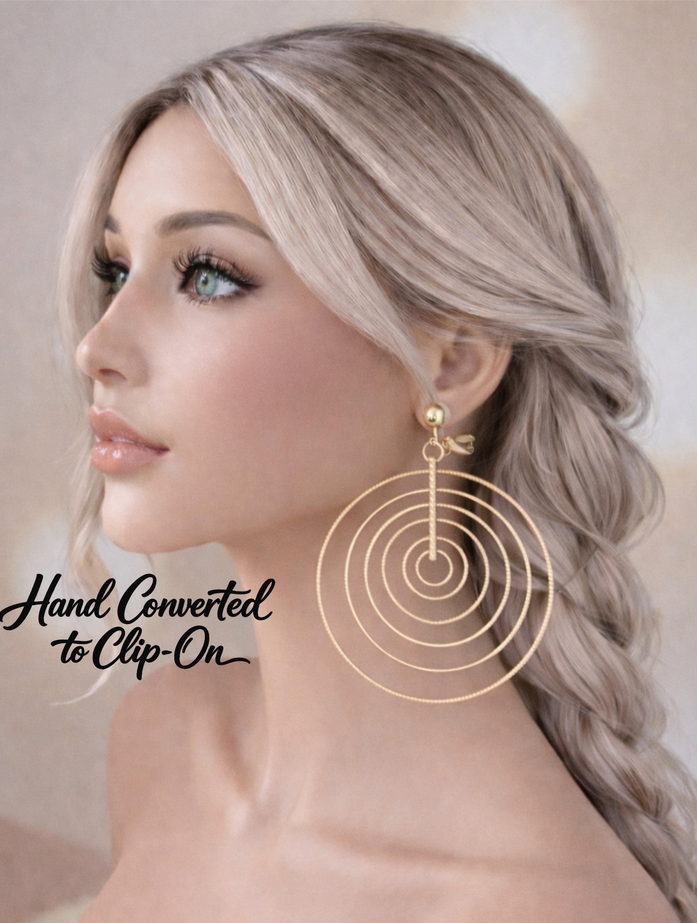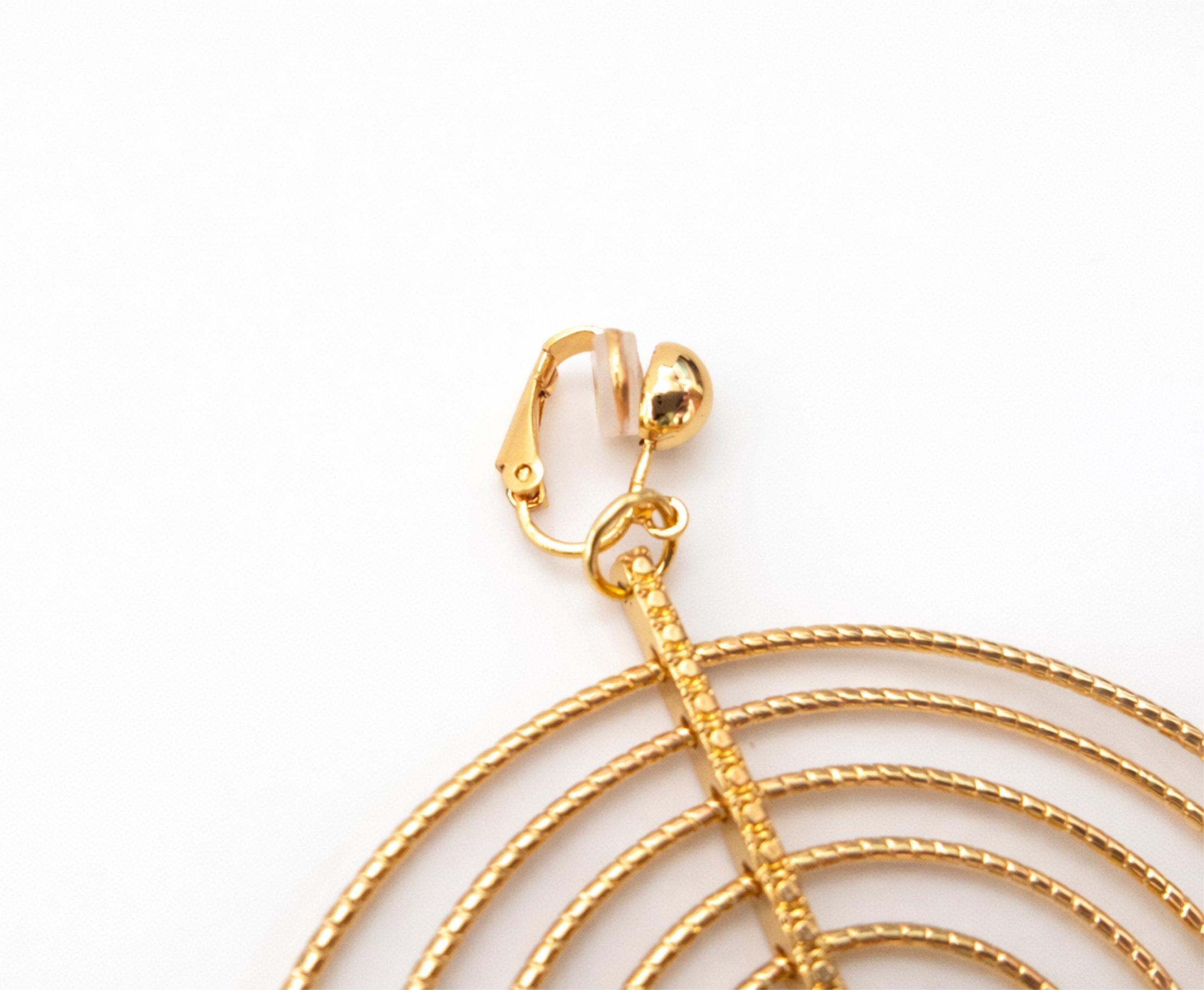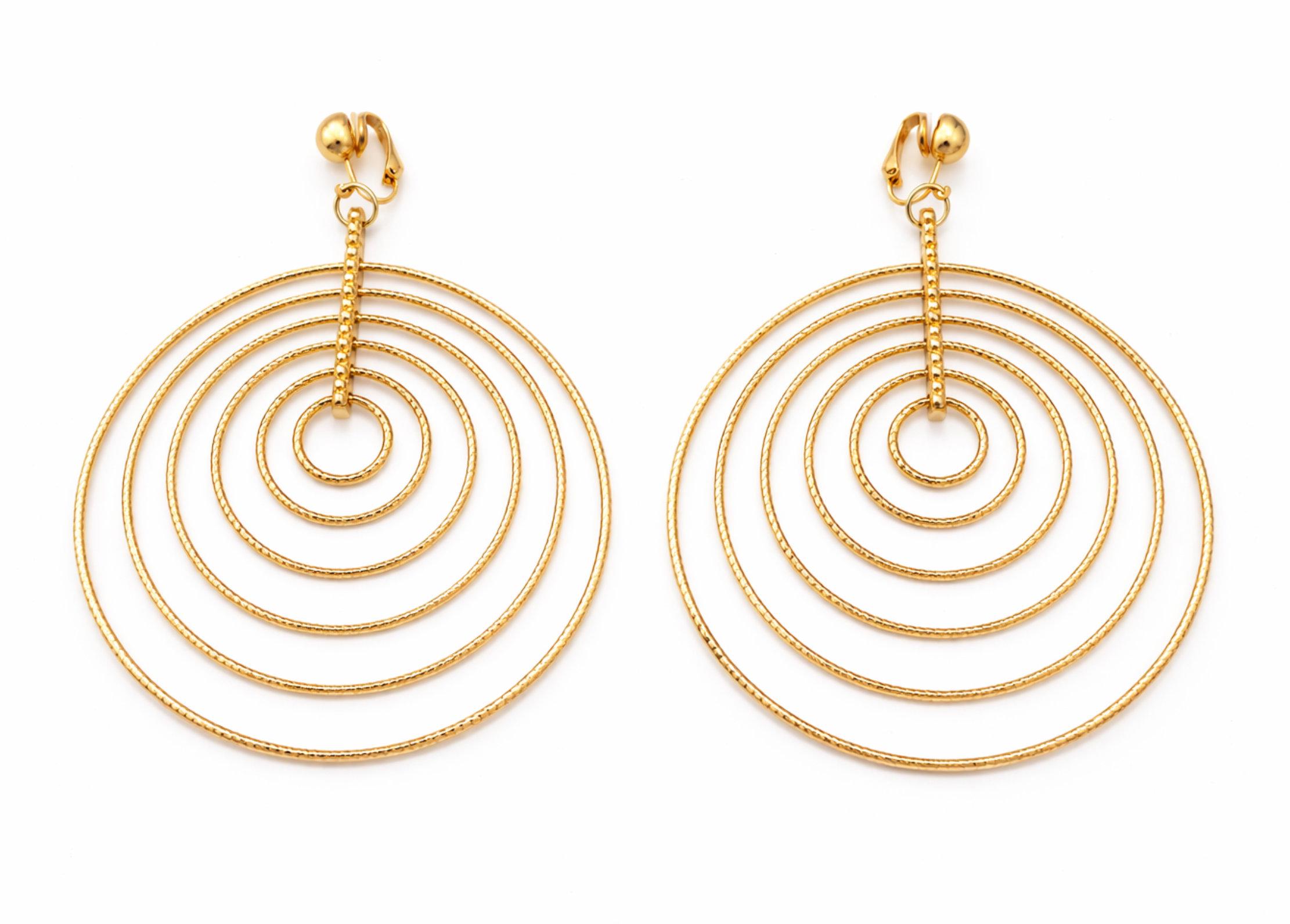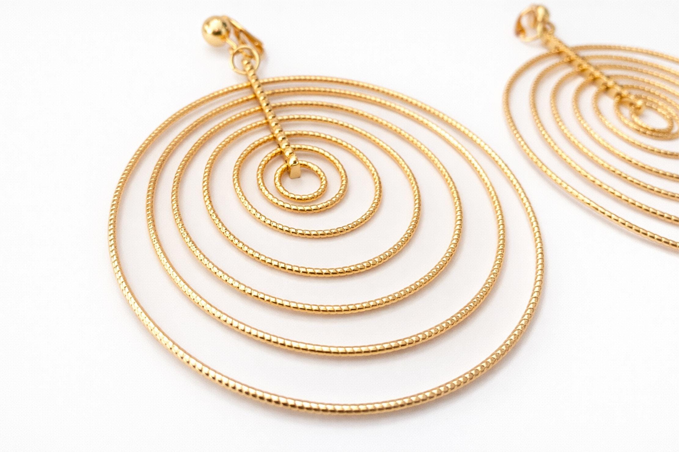 Designed with layered spiral rings that create beautiful movement and light reflection, these oversized statement earrings are eye-catching yet surprisingly comfortable to wear considering the size