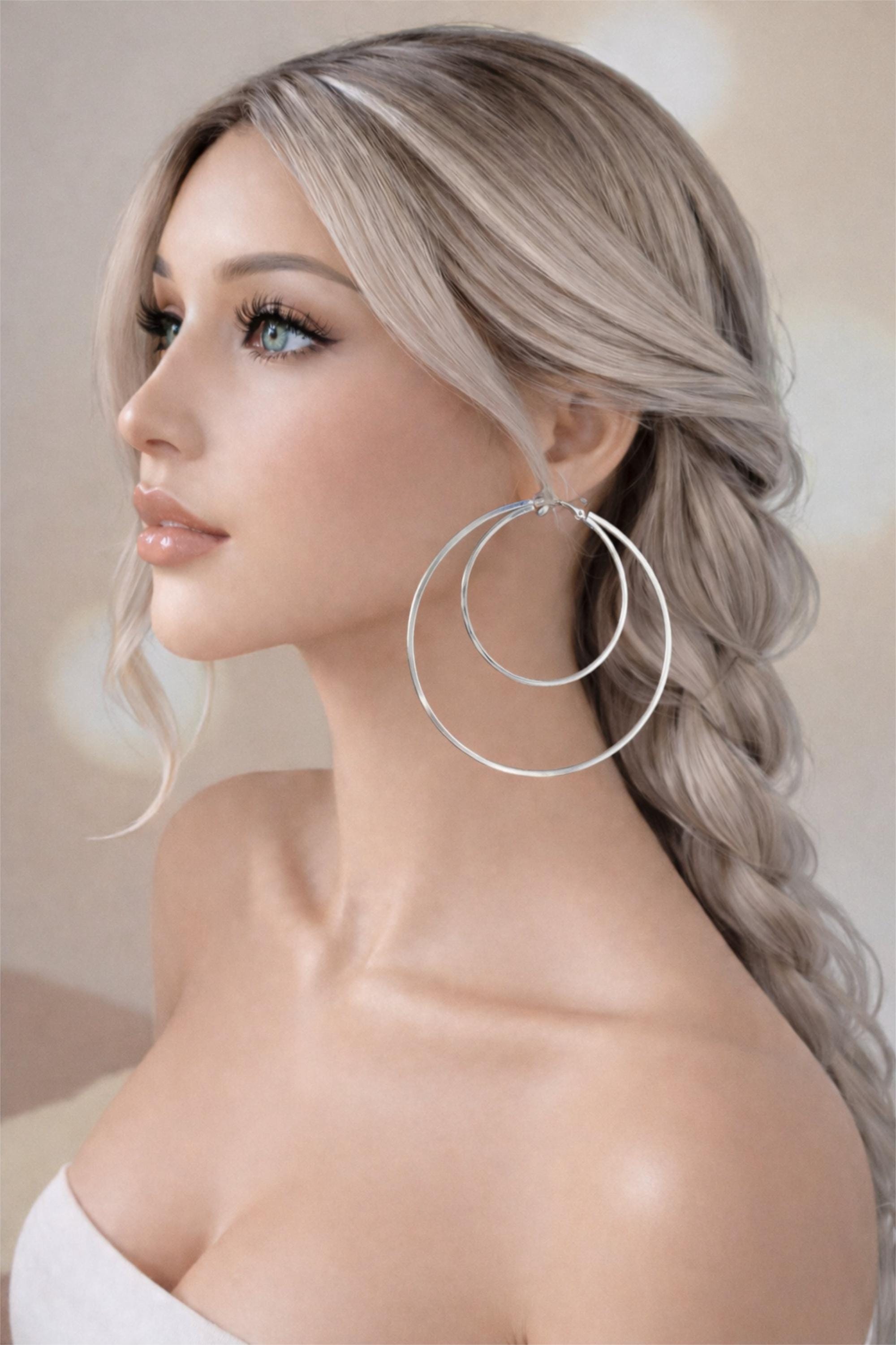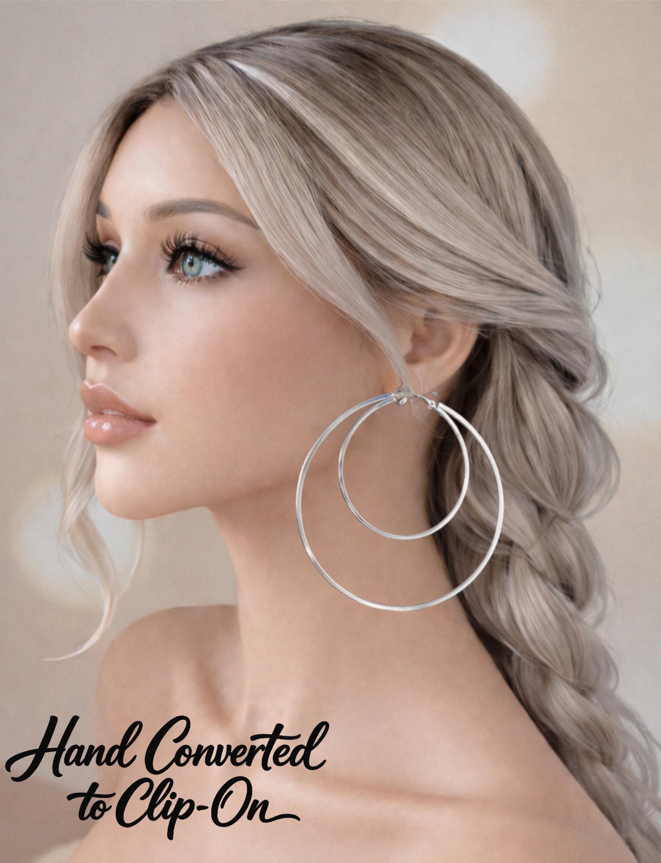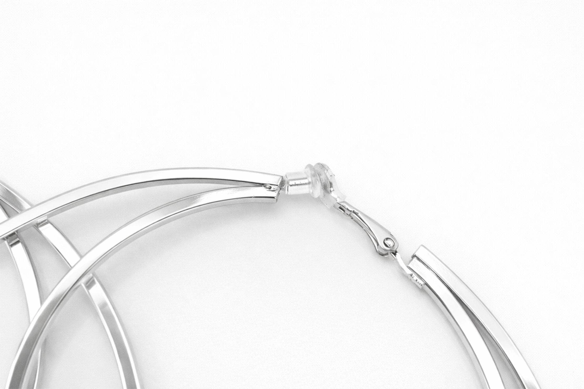 These silver double hoop clip on earrings are designed to give you that classic oversized hoop look. Featuring a sleek double hoop design with square tubes for added dimension, they make the perfect statement piece for both everyday wear and special occasions.