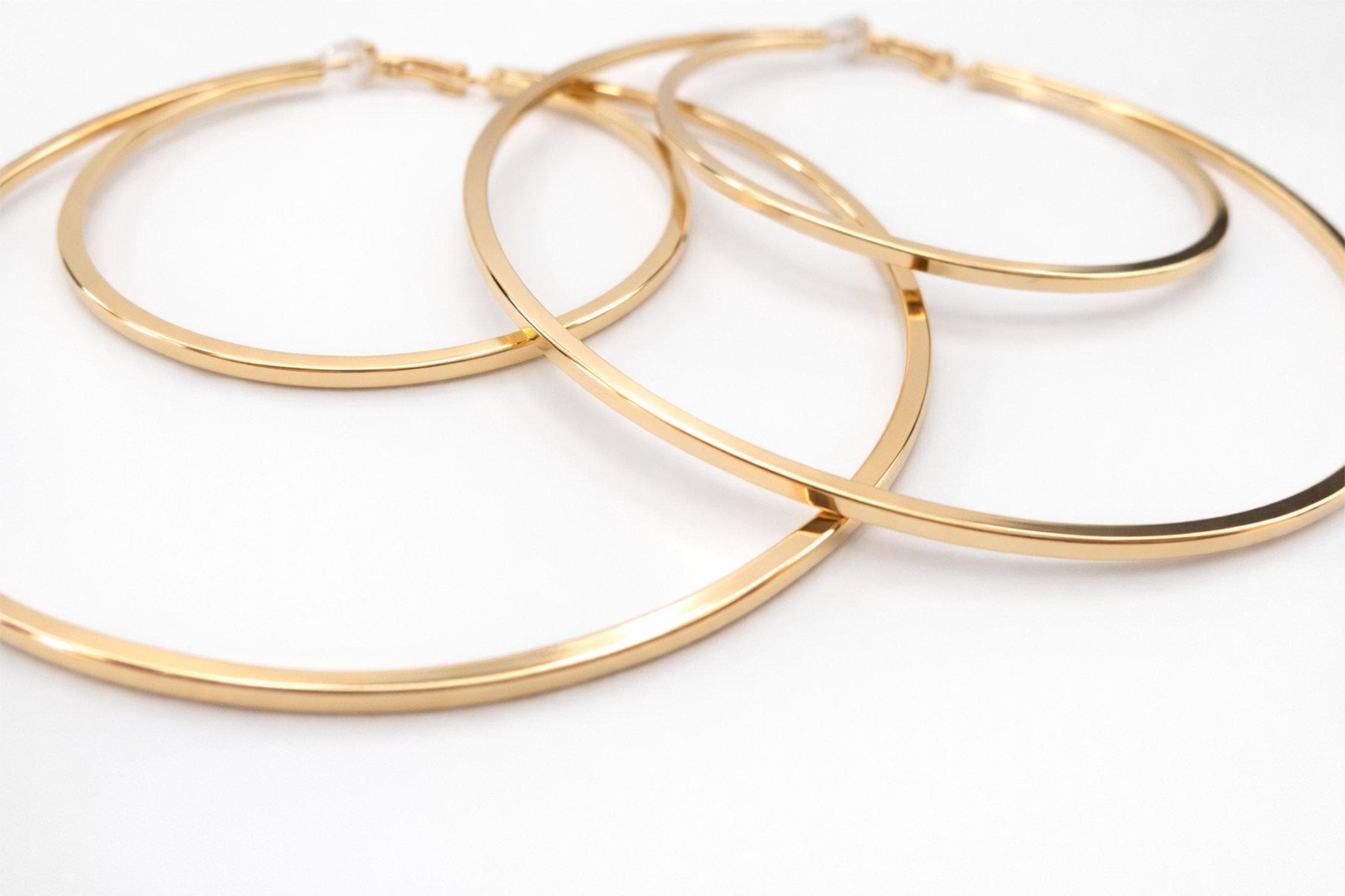 These gold double hoop clip on earrings are designed to give you that classic oversized hoop look. Featuring a sleek double hoop design with square tubes for added dimension, they make the perfect statement piece for both everyday wear and special occasions.